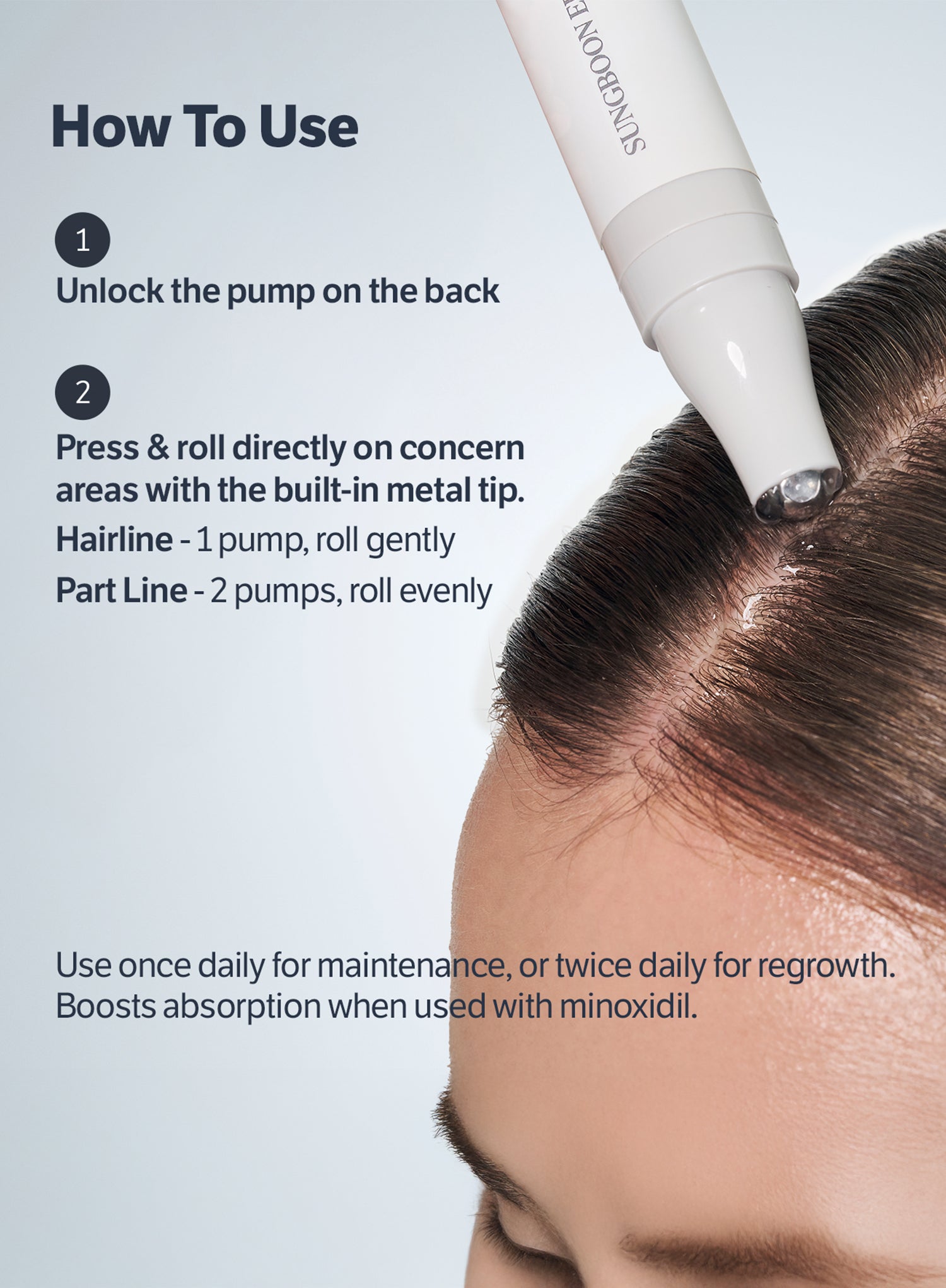 Apply directly to concern areas such as the hairline or parting using the built-in massage ball.