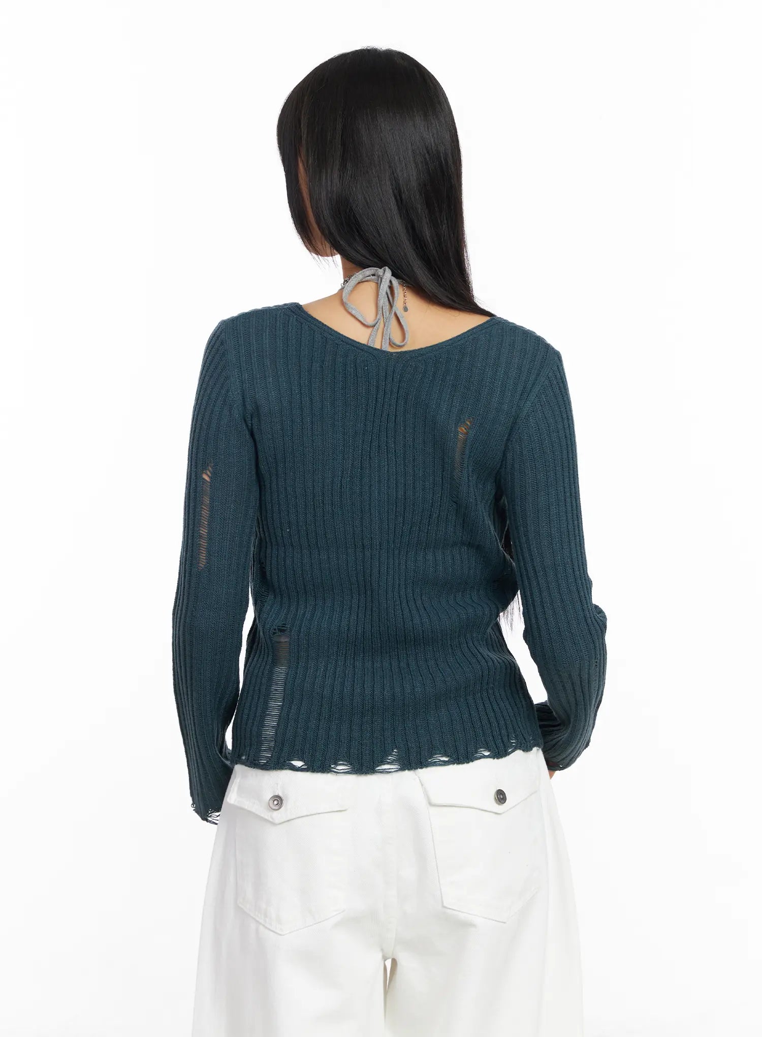 Distressed V-Neck Knit Sweater CF504