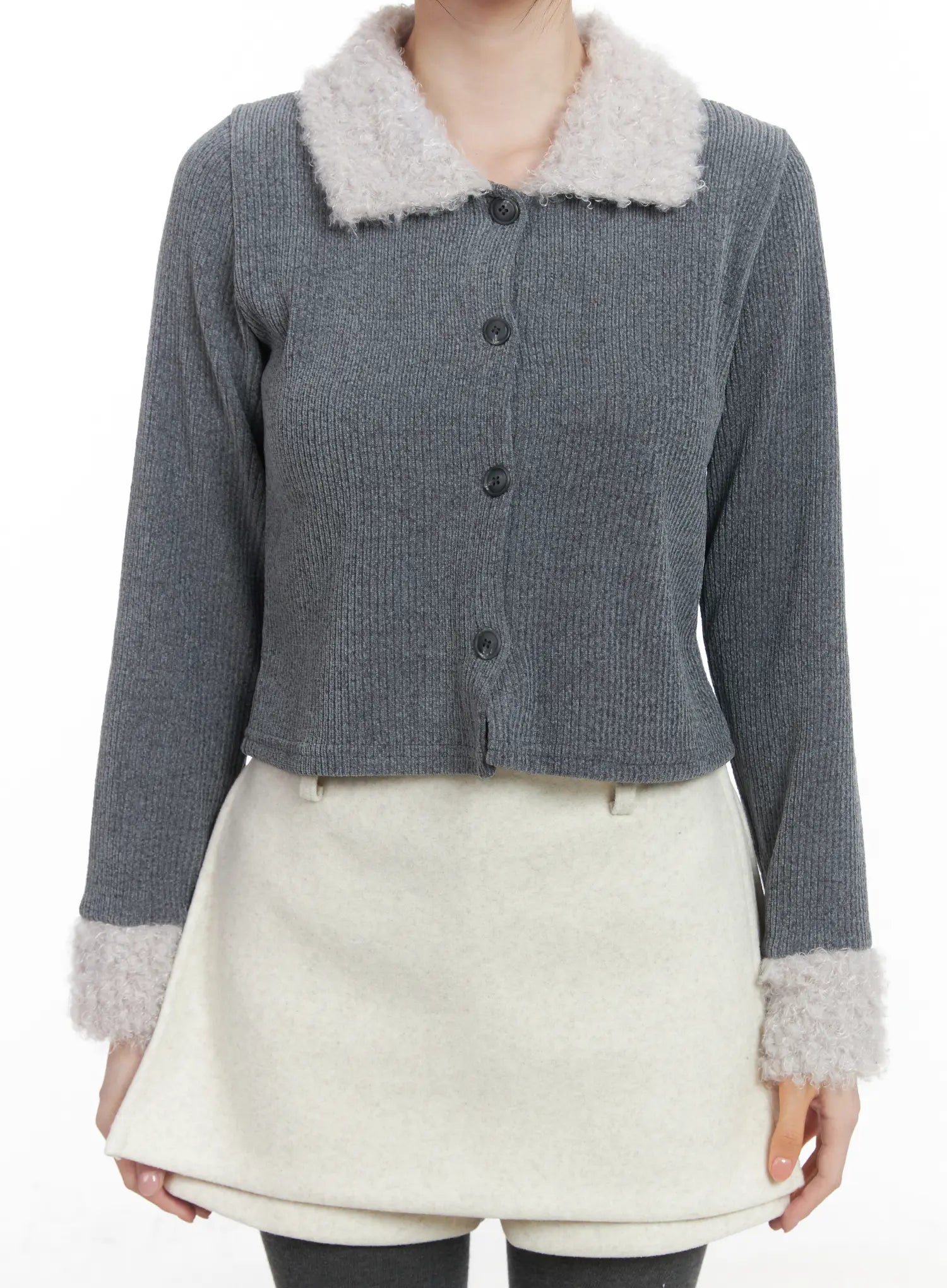Faux Fur Trim Knit Cardigan CJ506