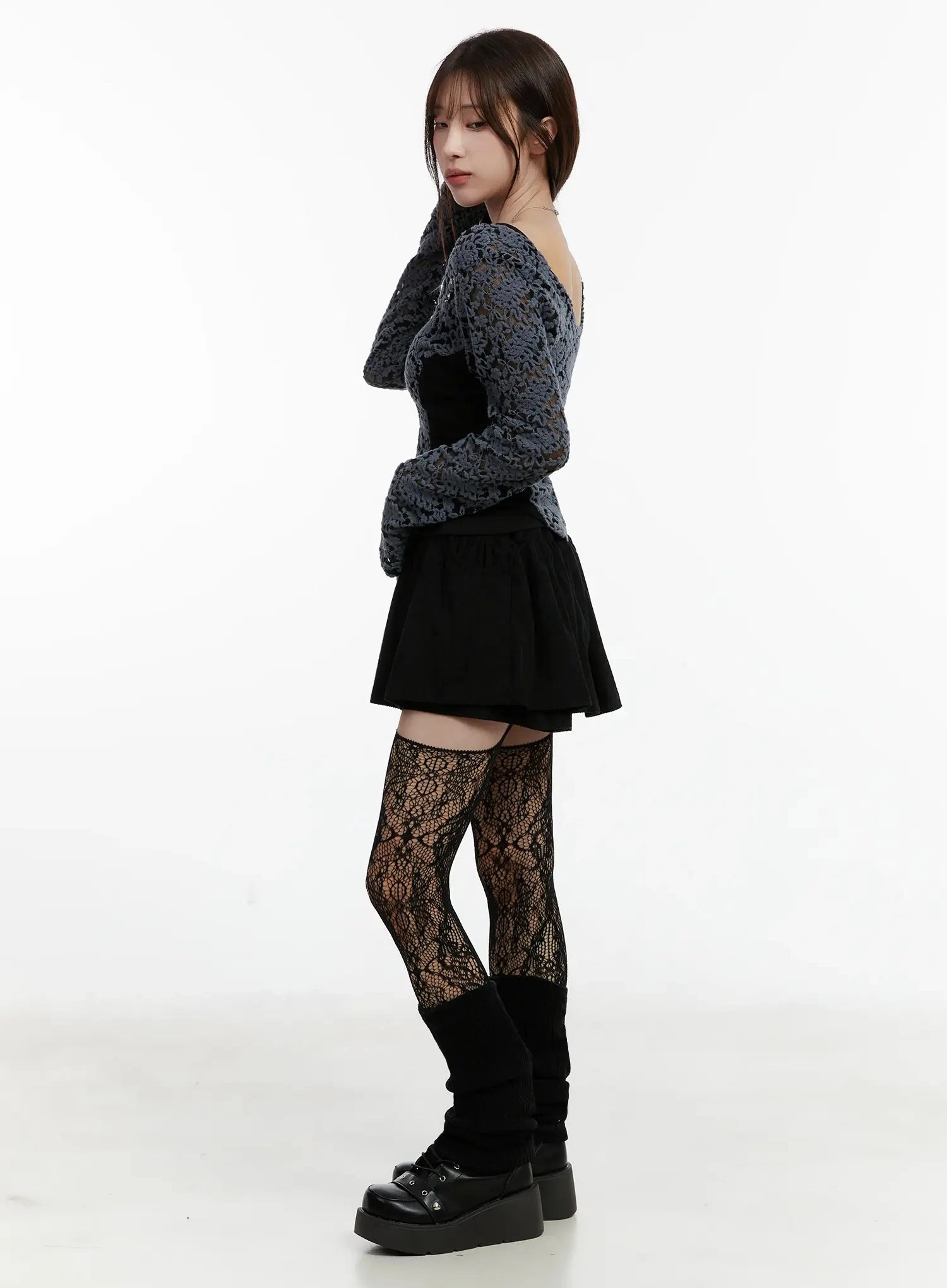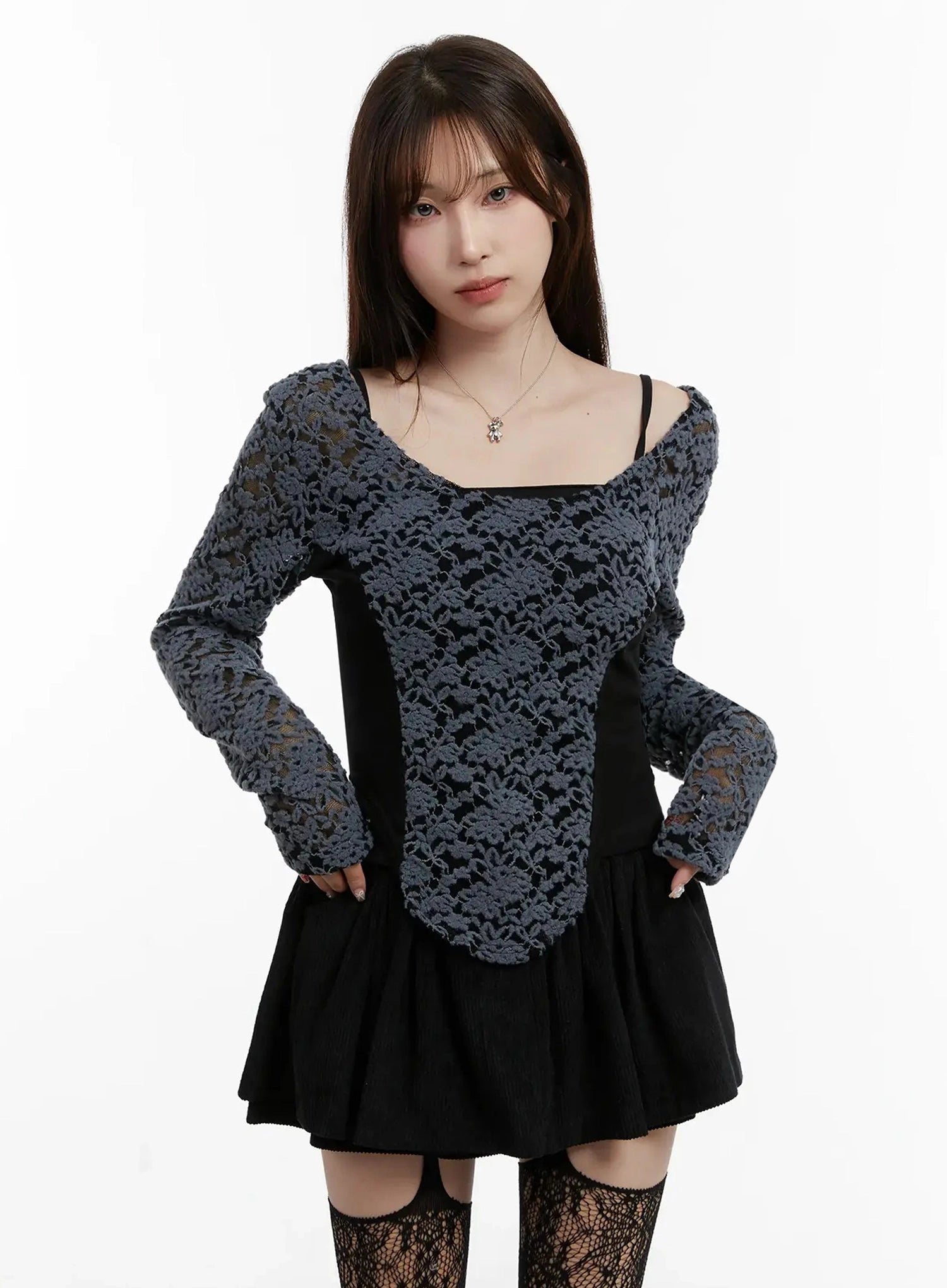 Fleece Lace Long Sleeve Top IJ521