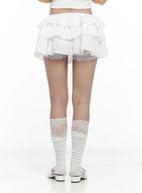 Floral Embroidered Ruffle Mini Skirt CL509