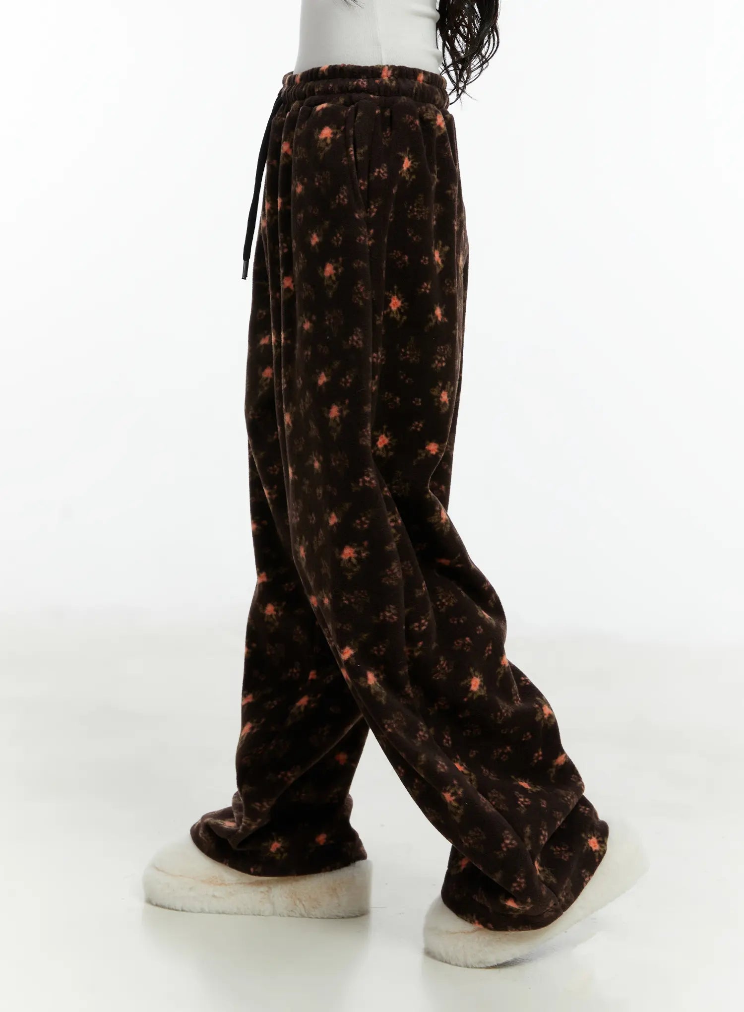 Floral Fleece Wide-Leg Pants CD514