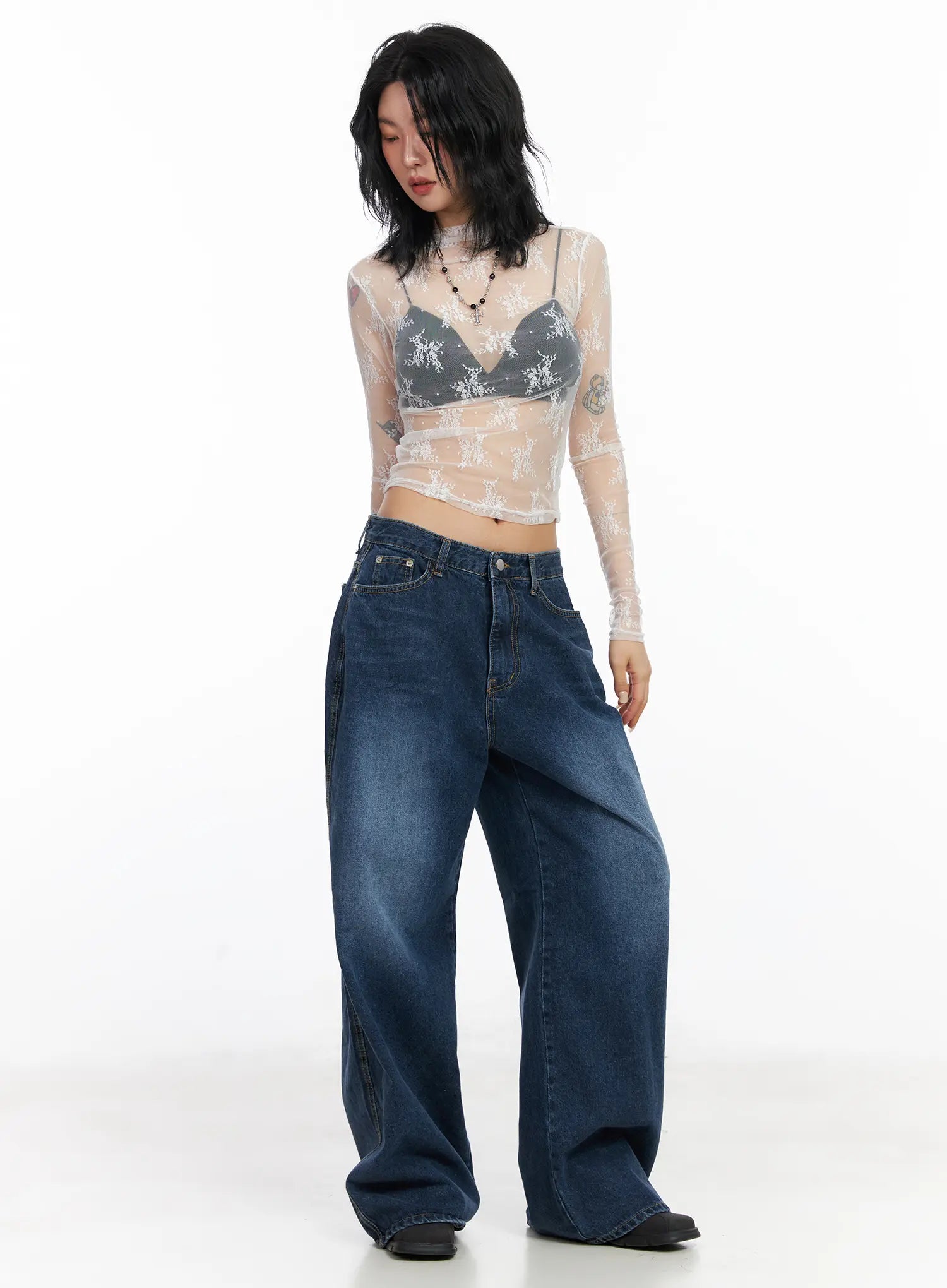 Floral Mesh See-Through Long Sleeve Top CJ522