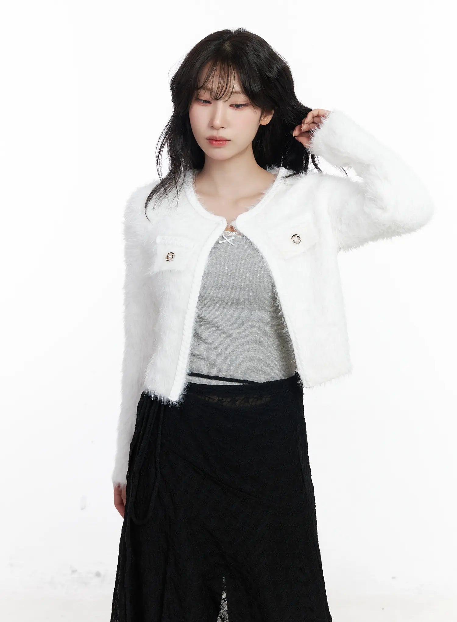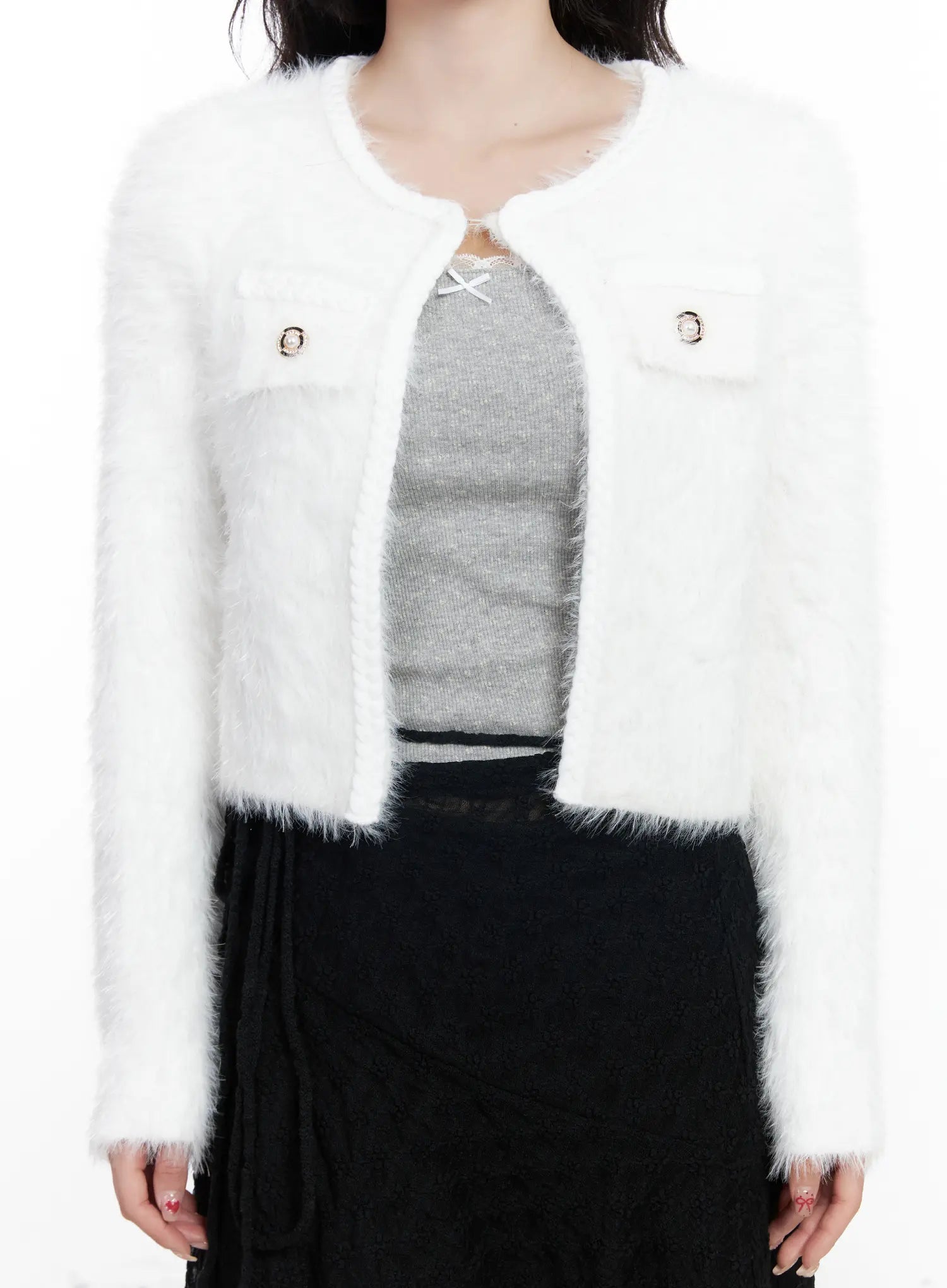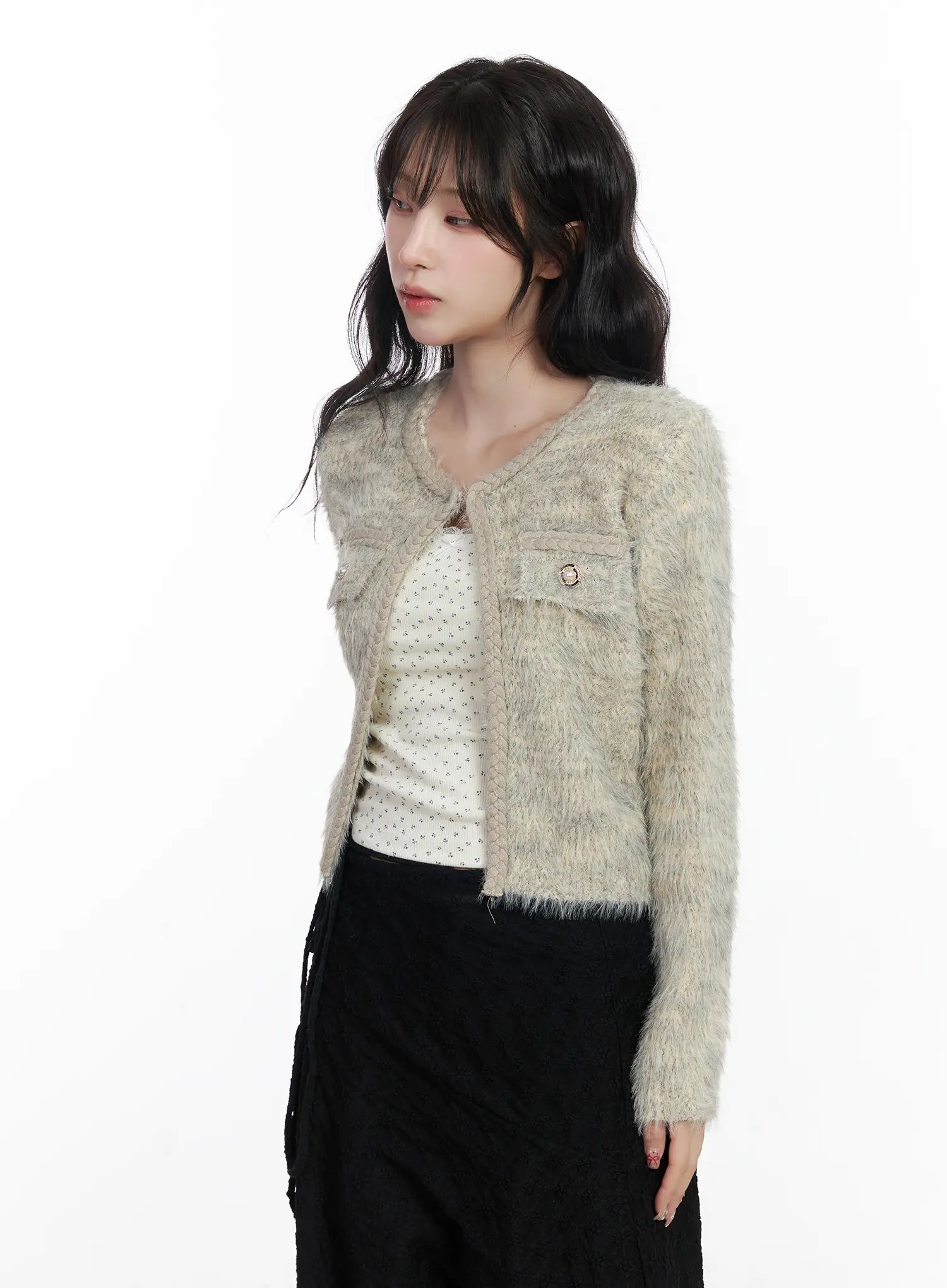 Fuzzy Angora Tweed Cardigan CJ526