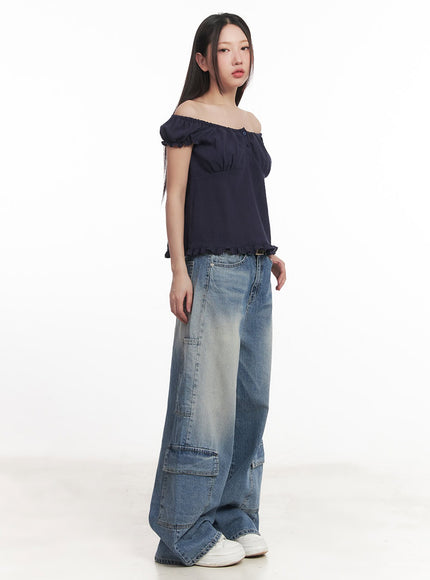 Heather Cargo Washed Wide-Leg Jeans IM528