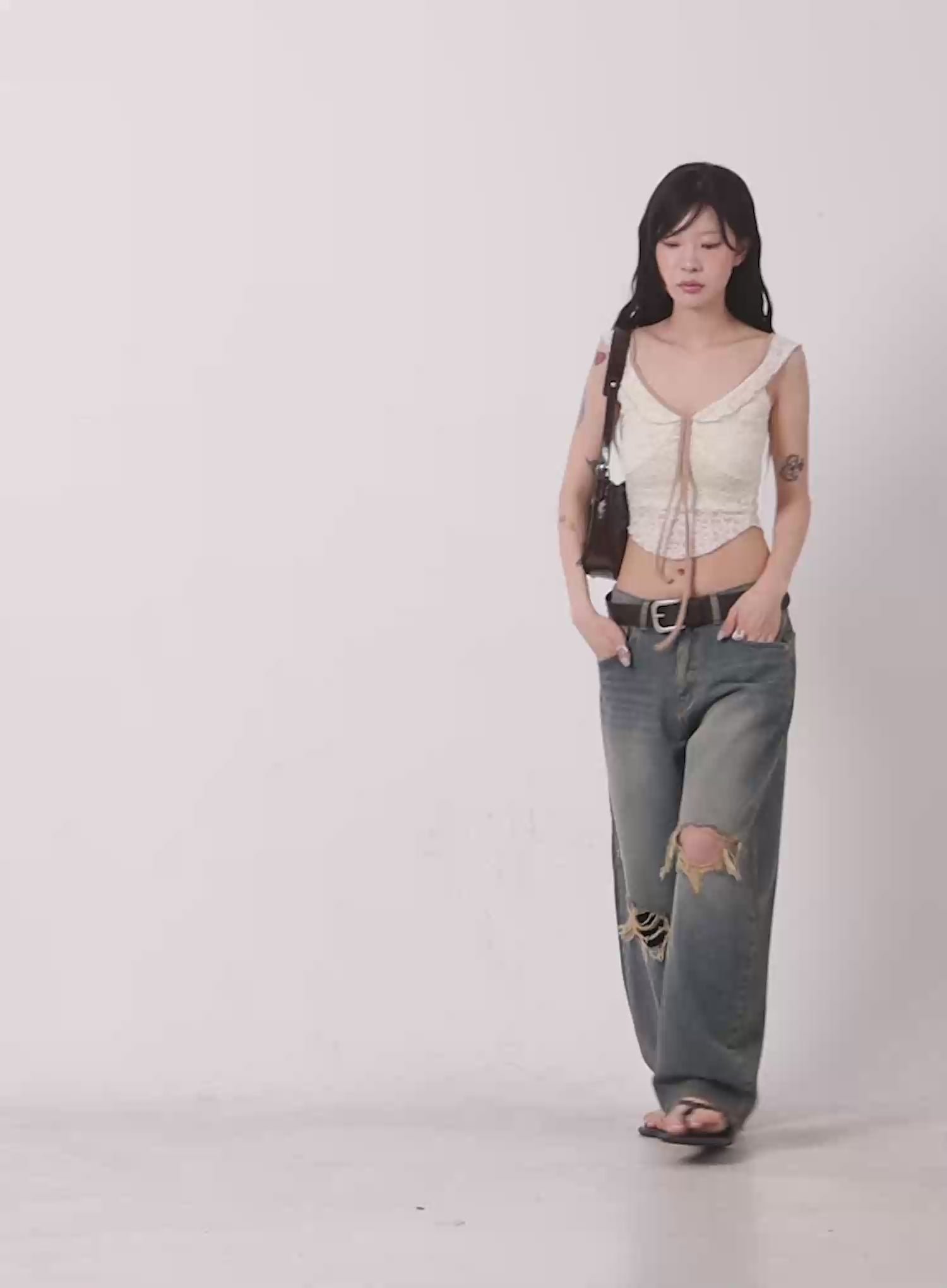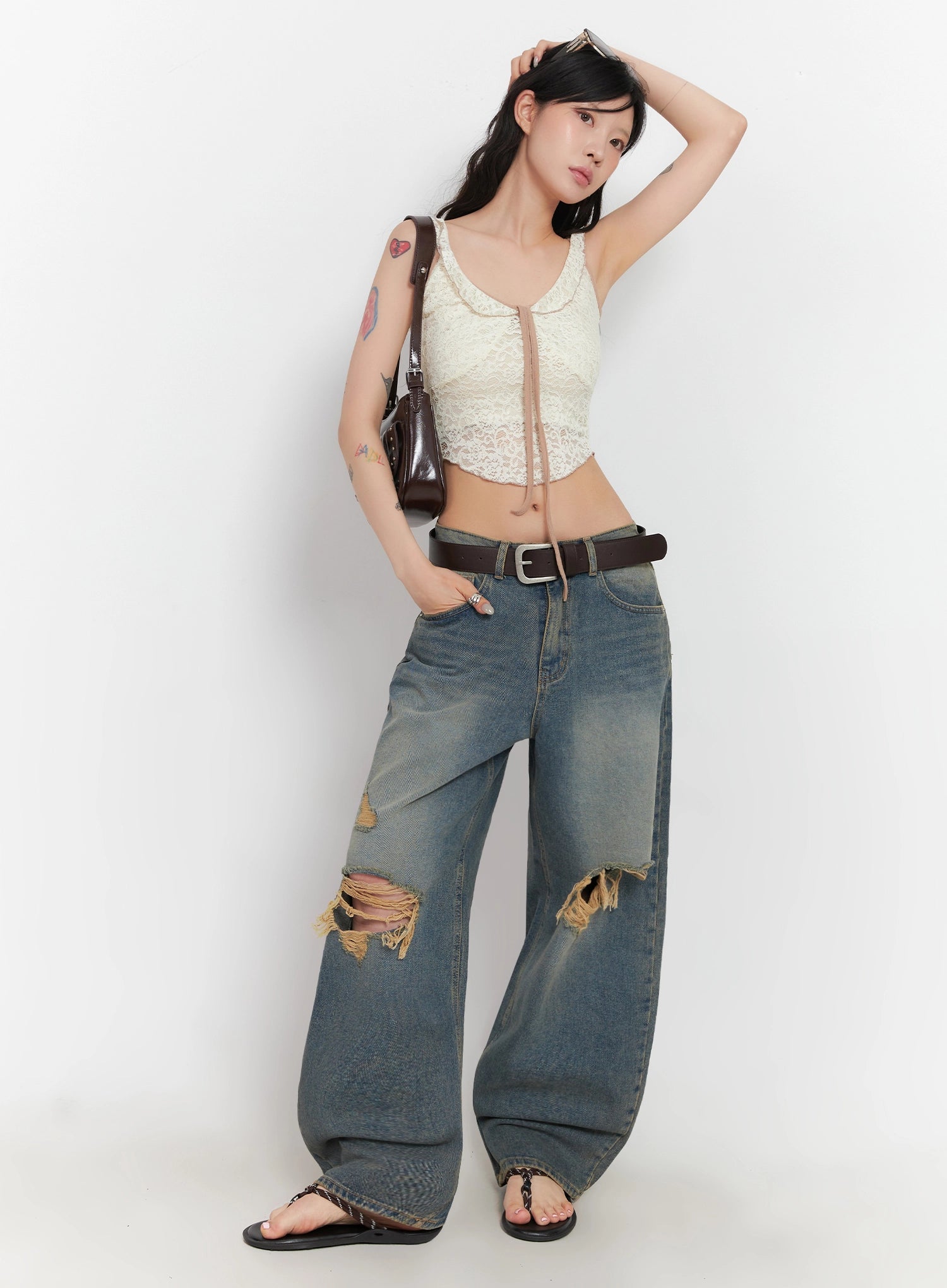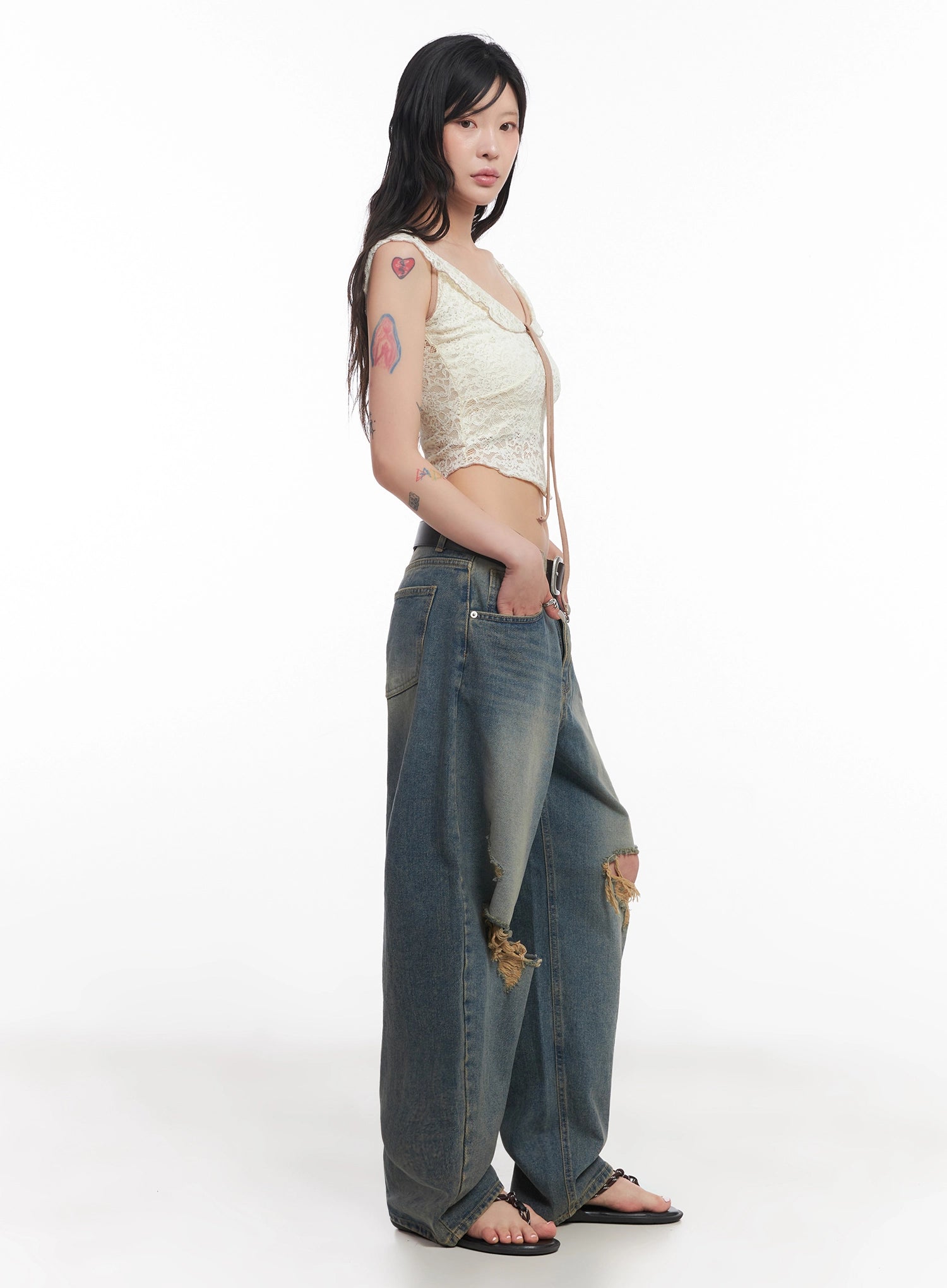 Jeemin Vintage Distressed Wide-Leg Denim Jeans IC503