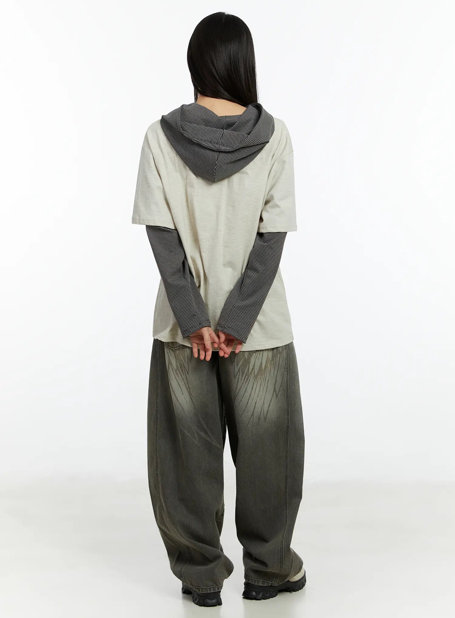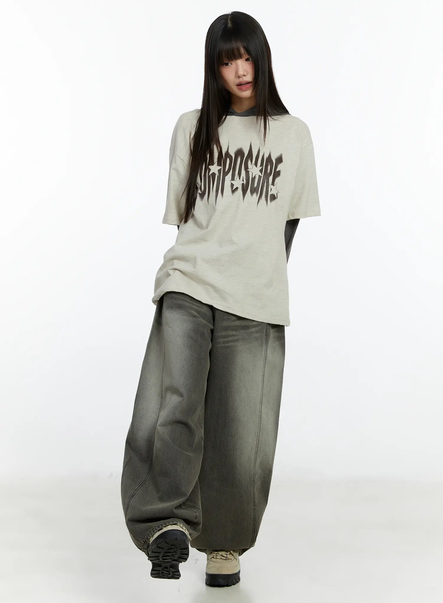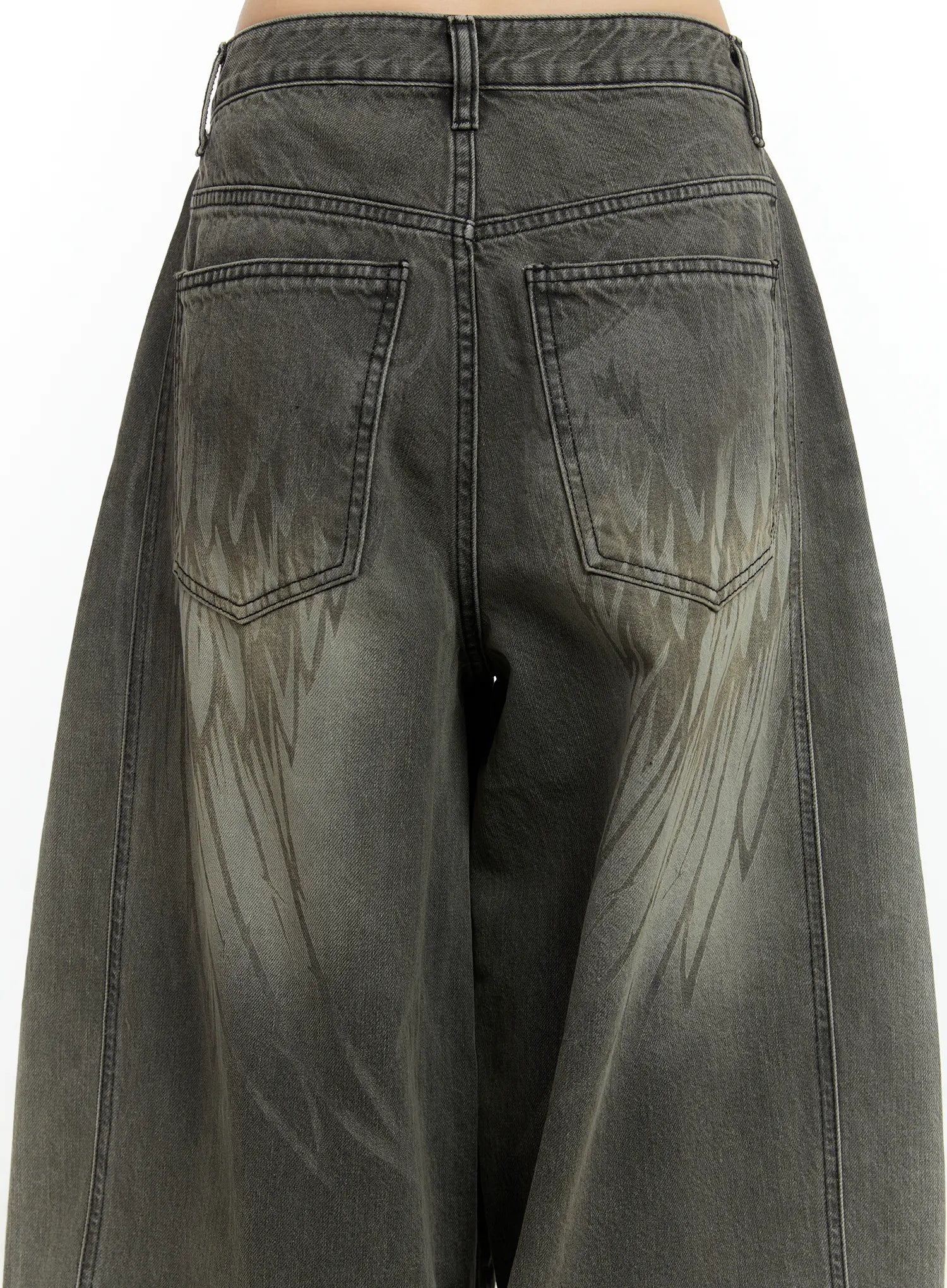 Karter Angel Wing Washed Wide Leg Jeans CF509
