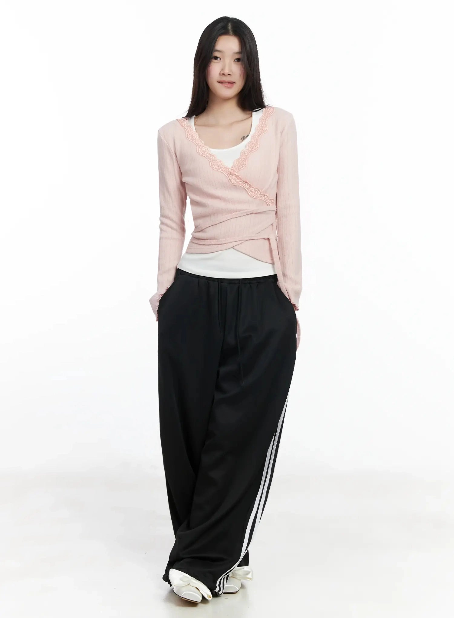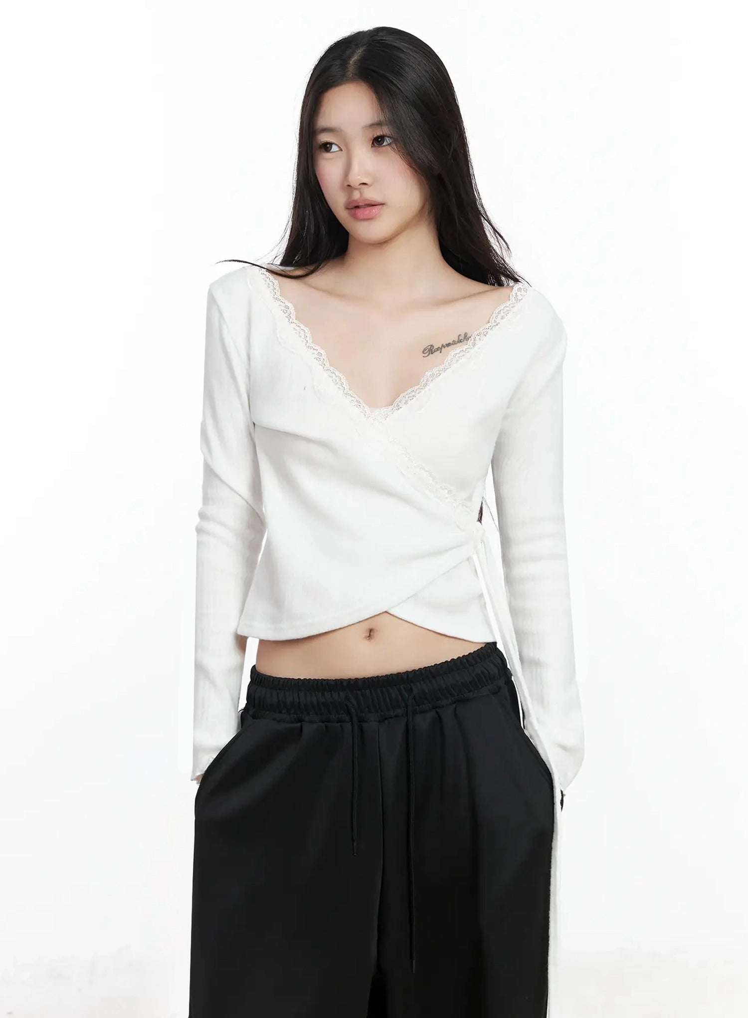 Lace Trim V-Neck Wrap Top IM506