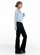 Light Blue Ribbed Cropped Cardigan CL511