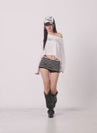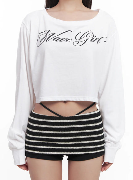 Long Sleeve Graphic Off-Shoulder Top CU516