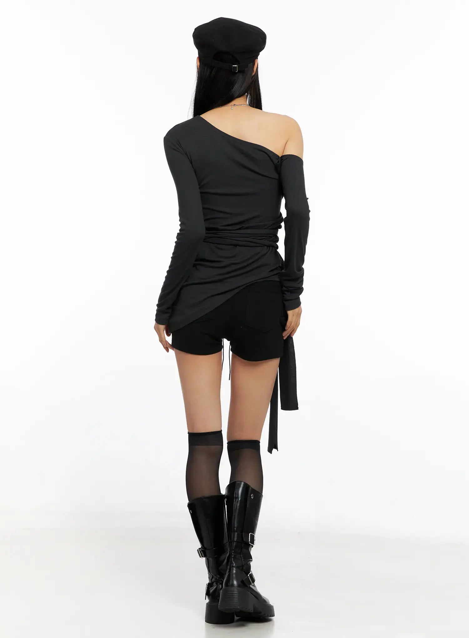 Model is wearing size S/M and the color Black.