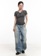 Lumira Back-Detail Washed Wide Leg Jeans CA530