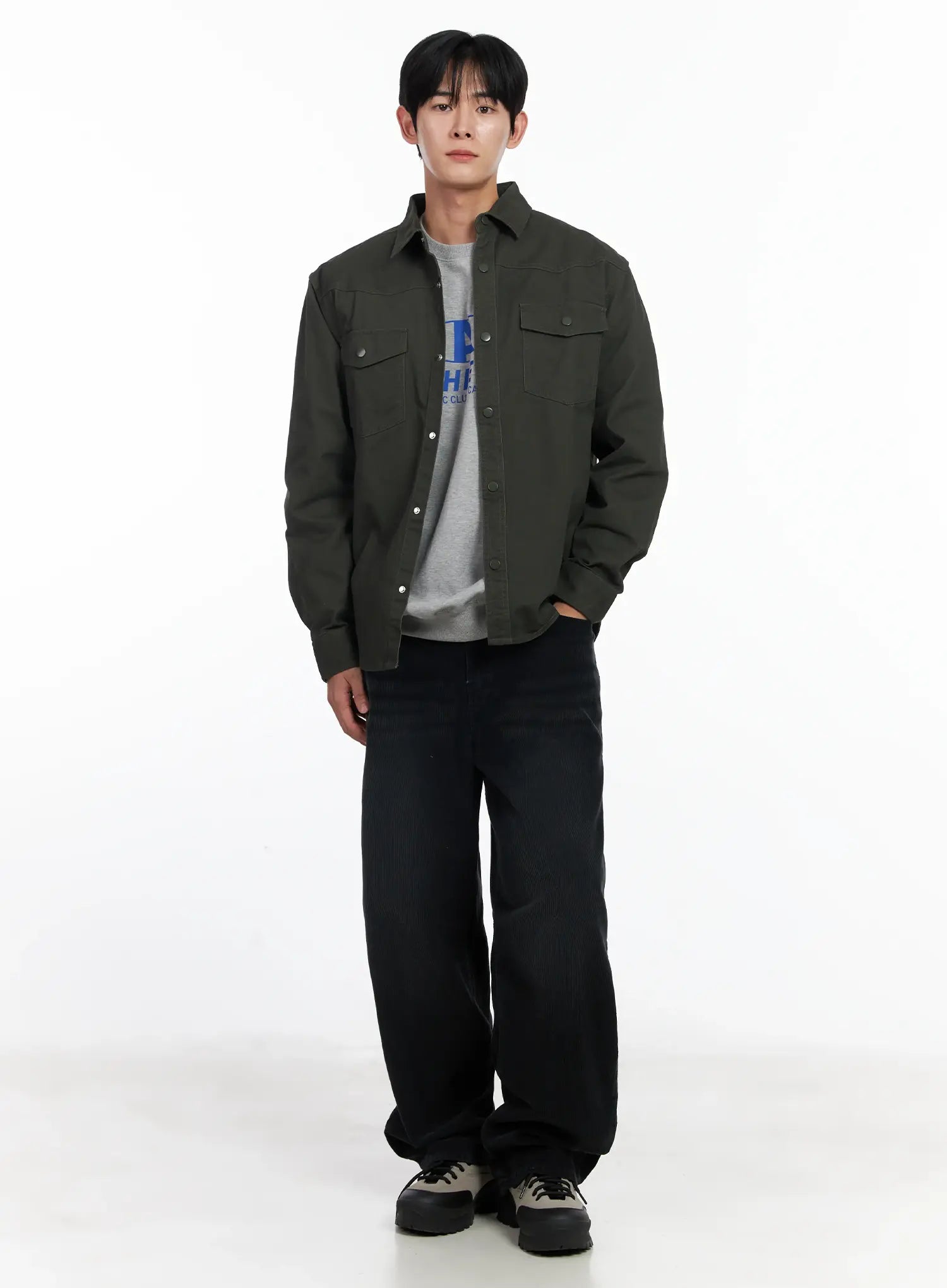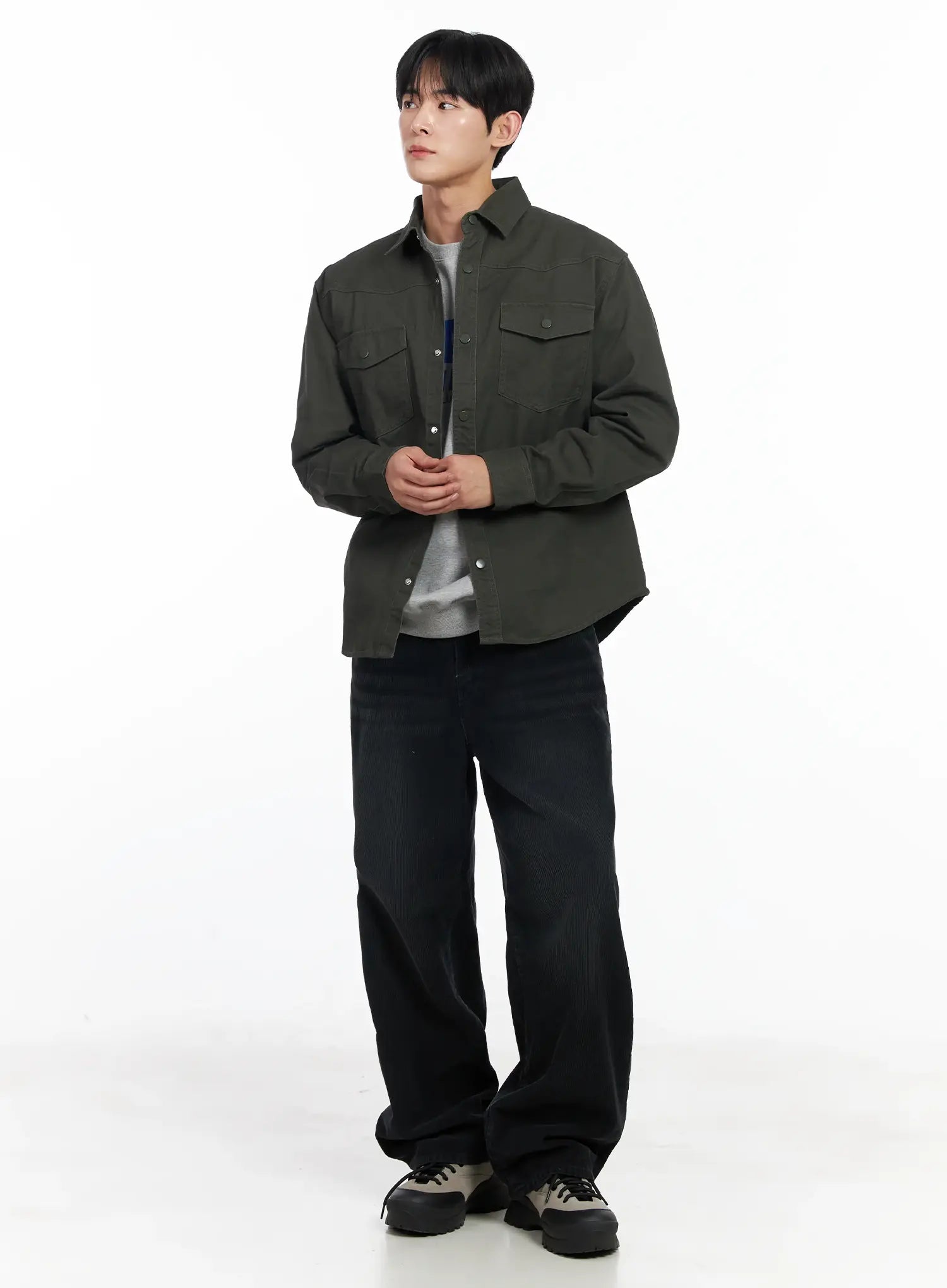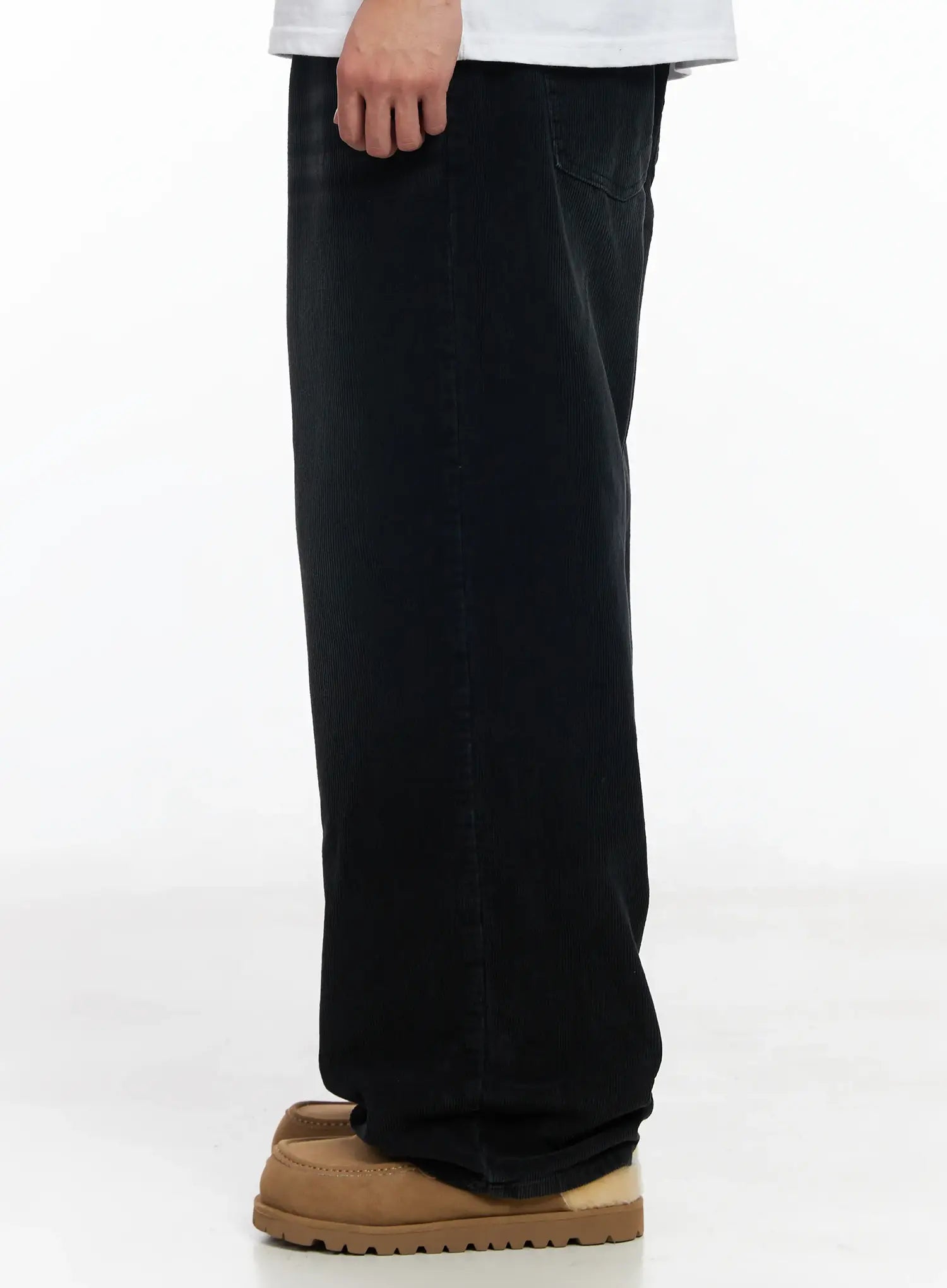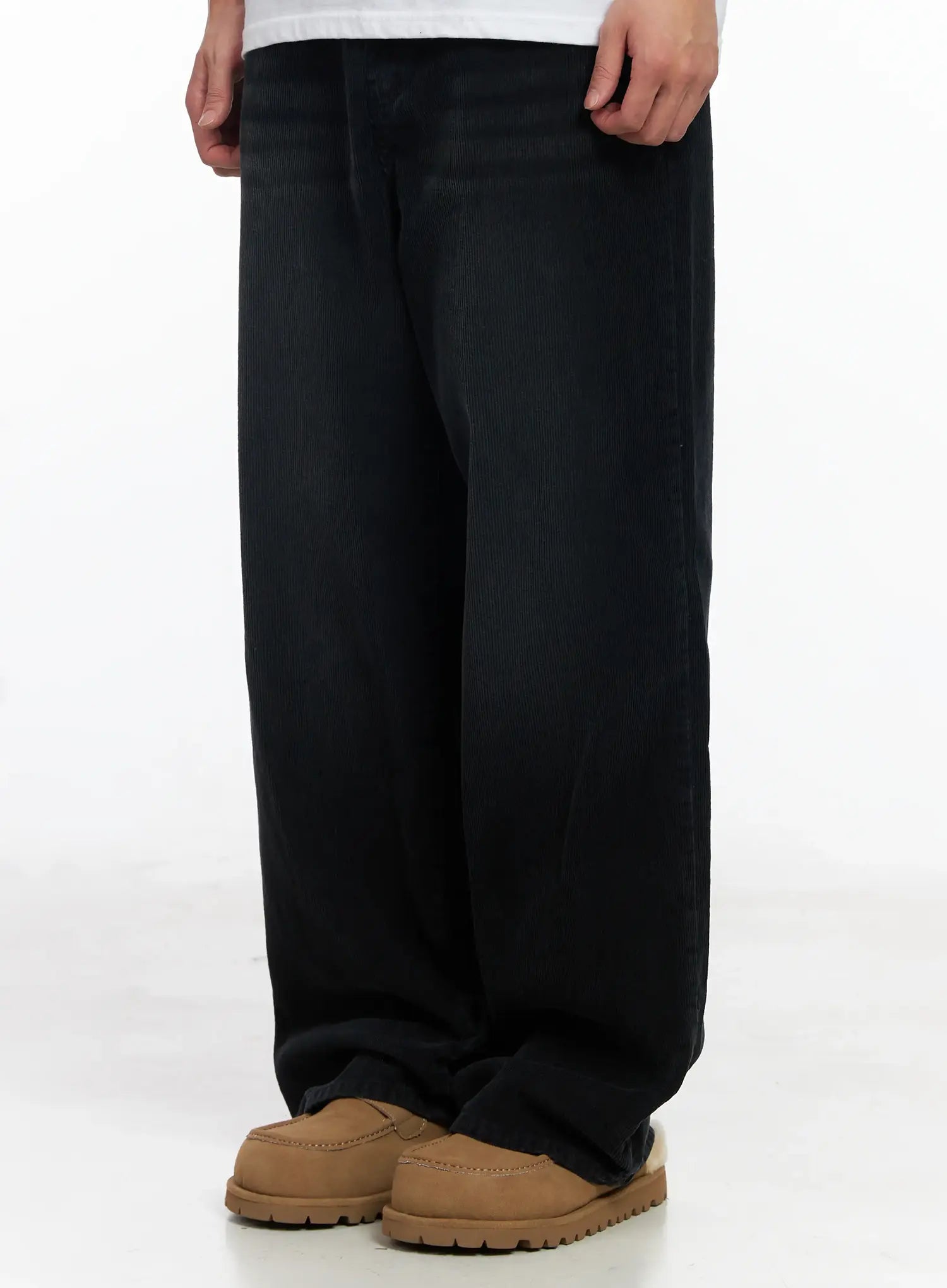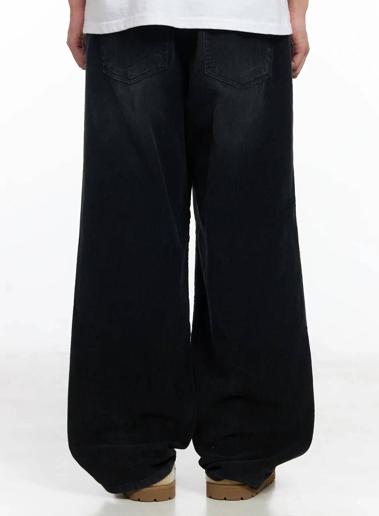 Men's Black Washed Wide Corduroy Pants IJ521