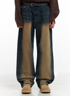 Men's Brown Washed Wide Denim Jeans IO402