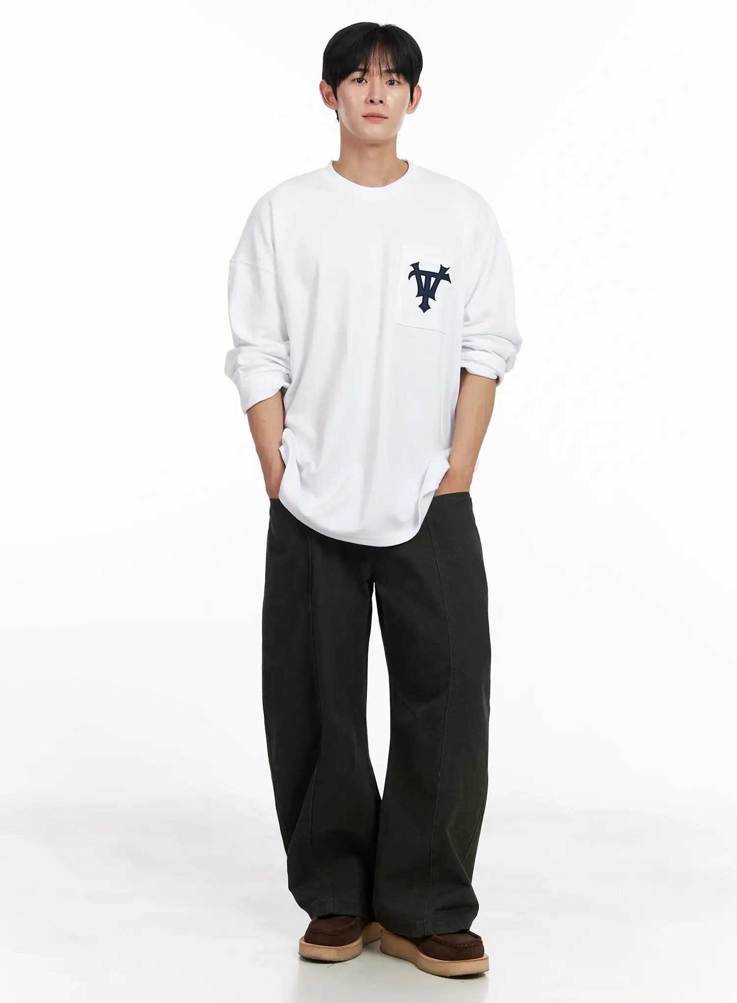 Men's Casual Embroidered Pocket Long Sleeve IJ521