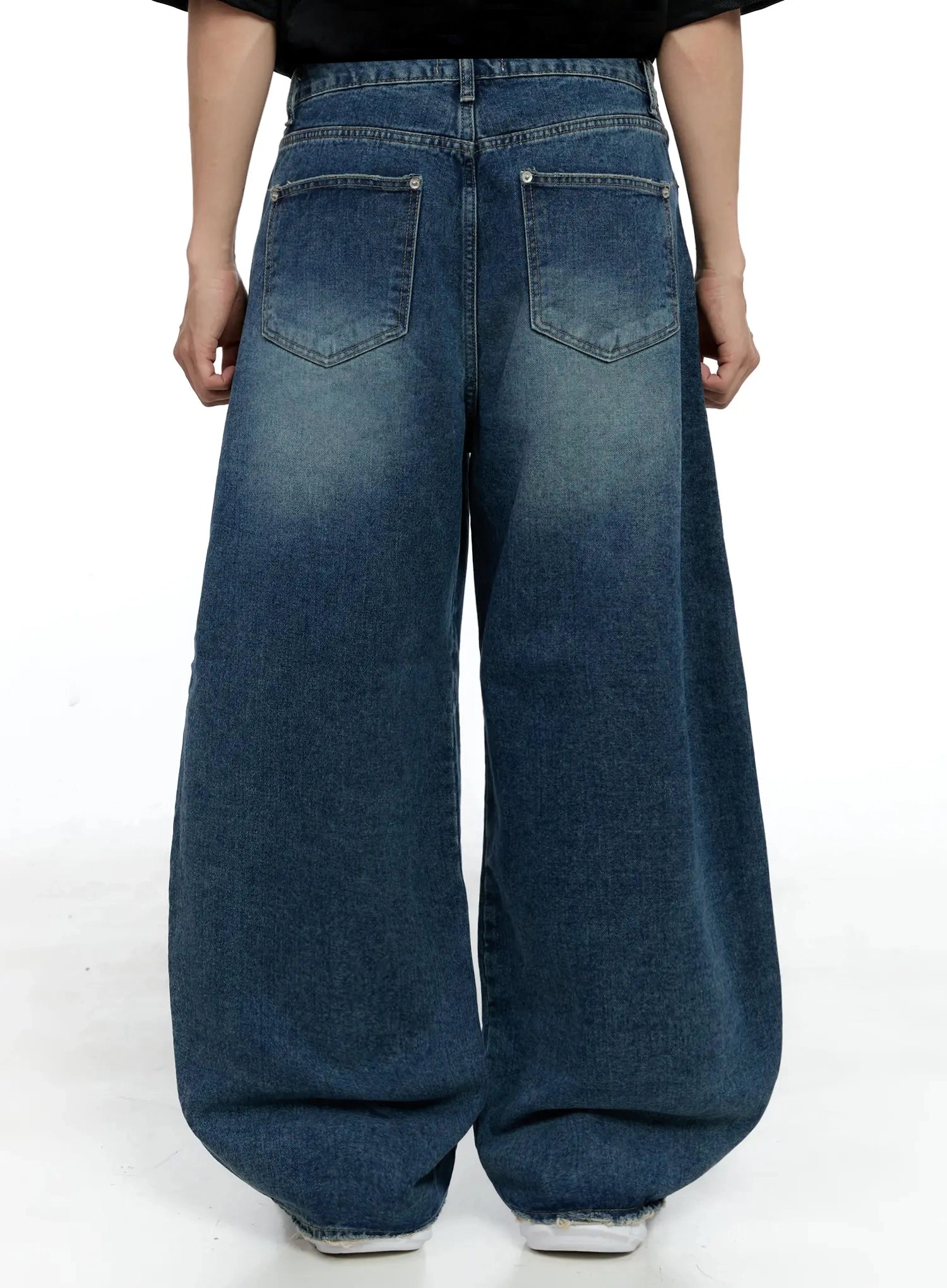 Men's Frayed Hem Baggy Jeans IG520