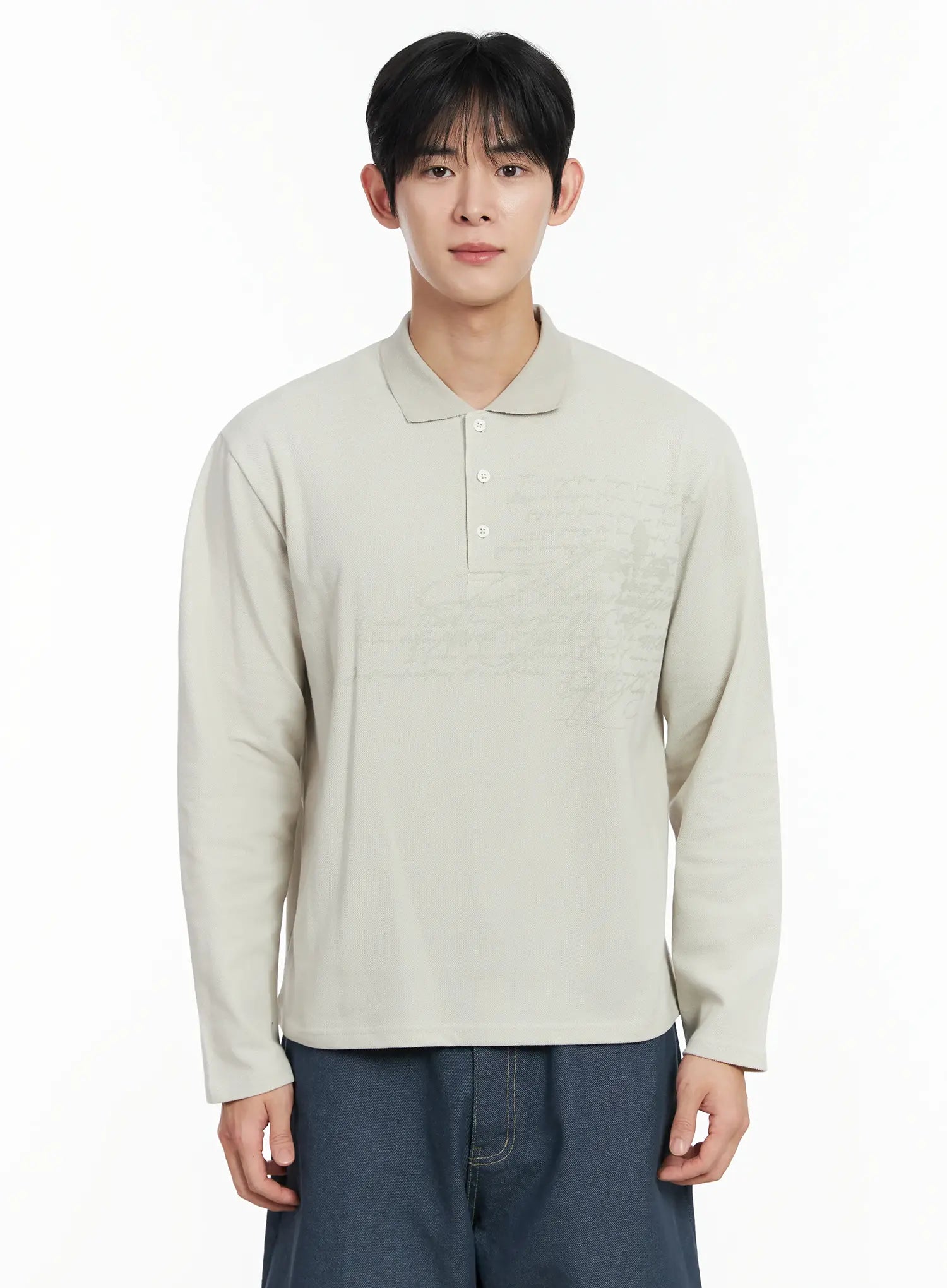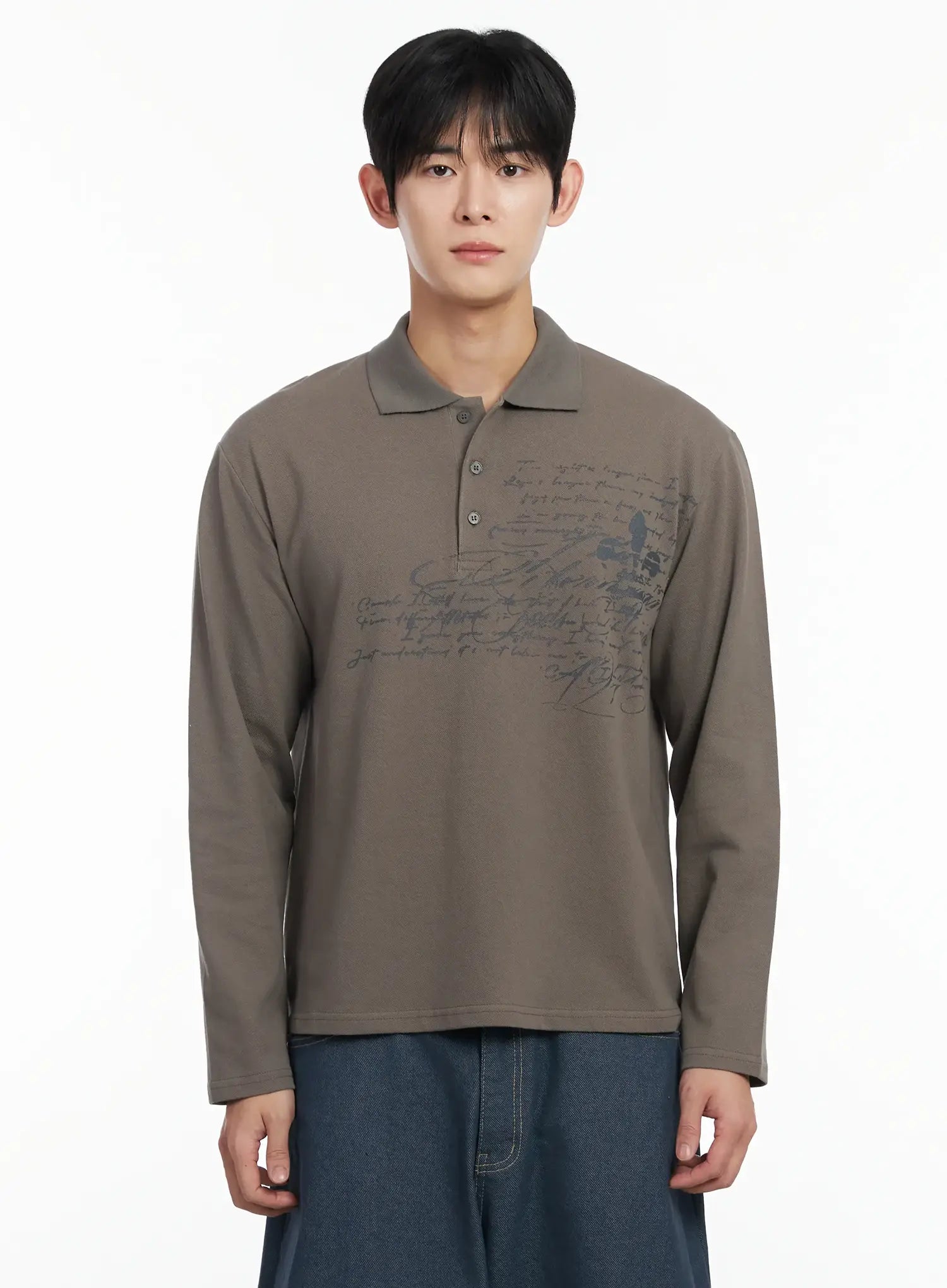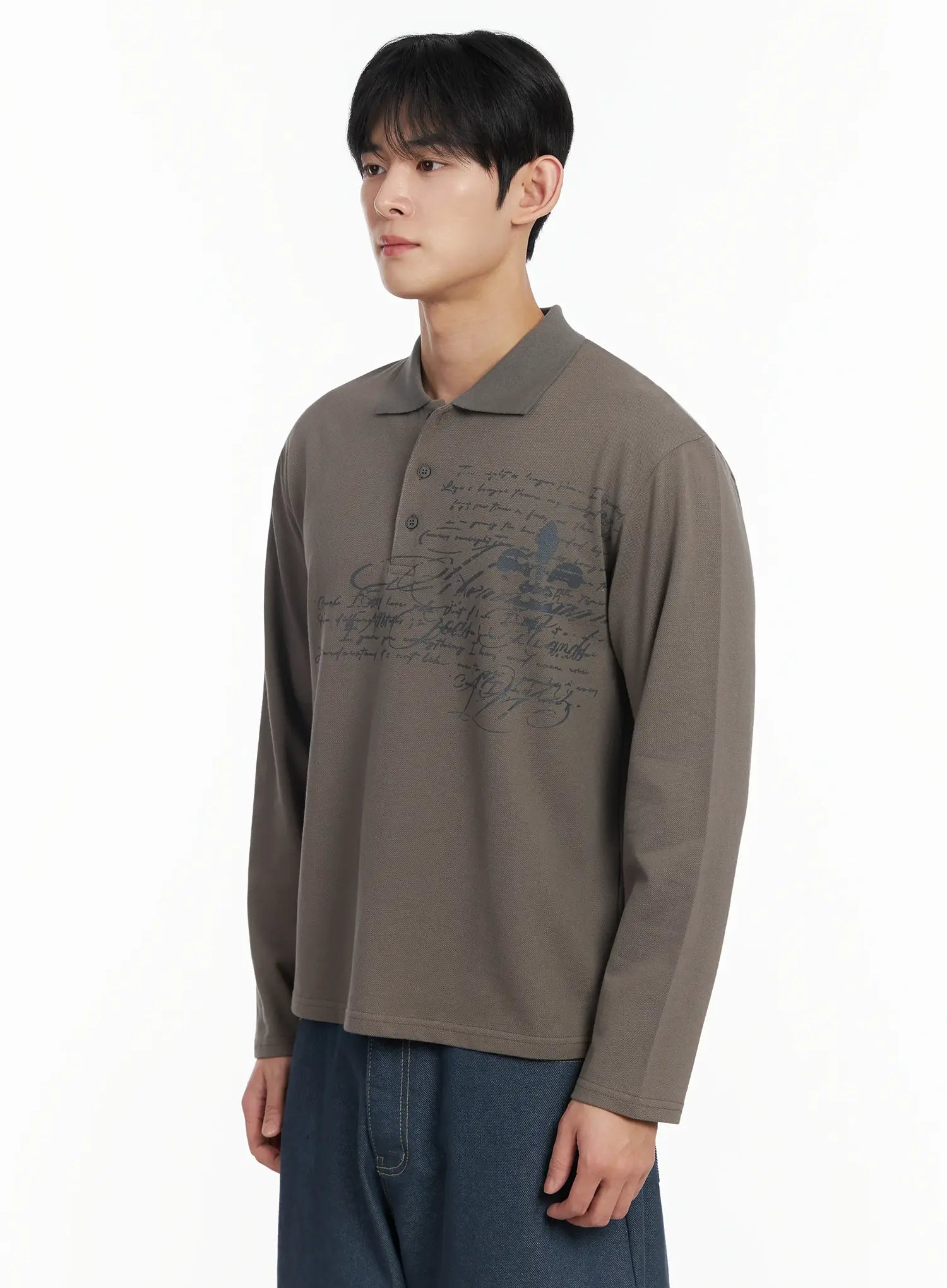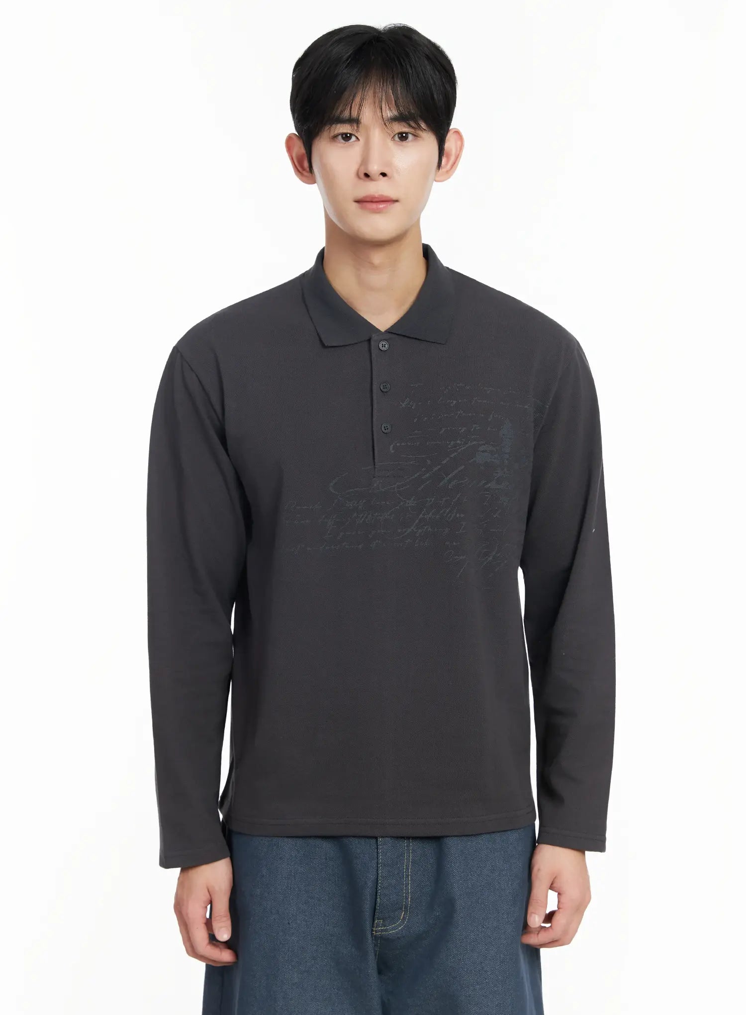 Men's Graphic Long Sleeve Polo Shirt IF516