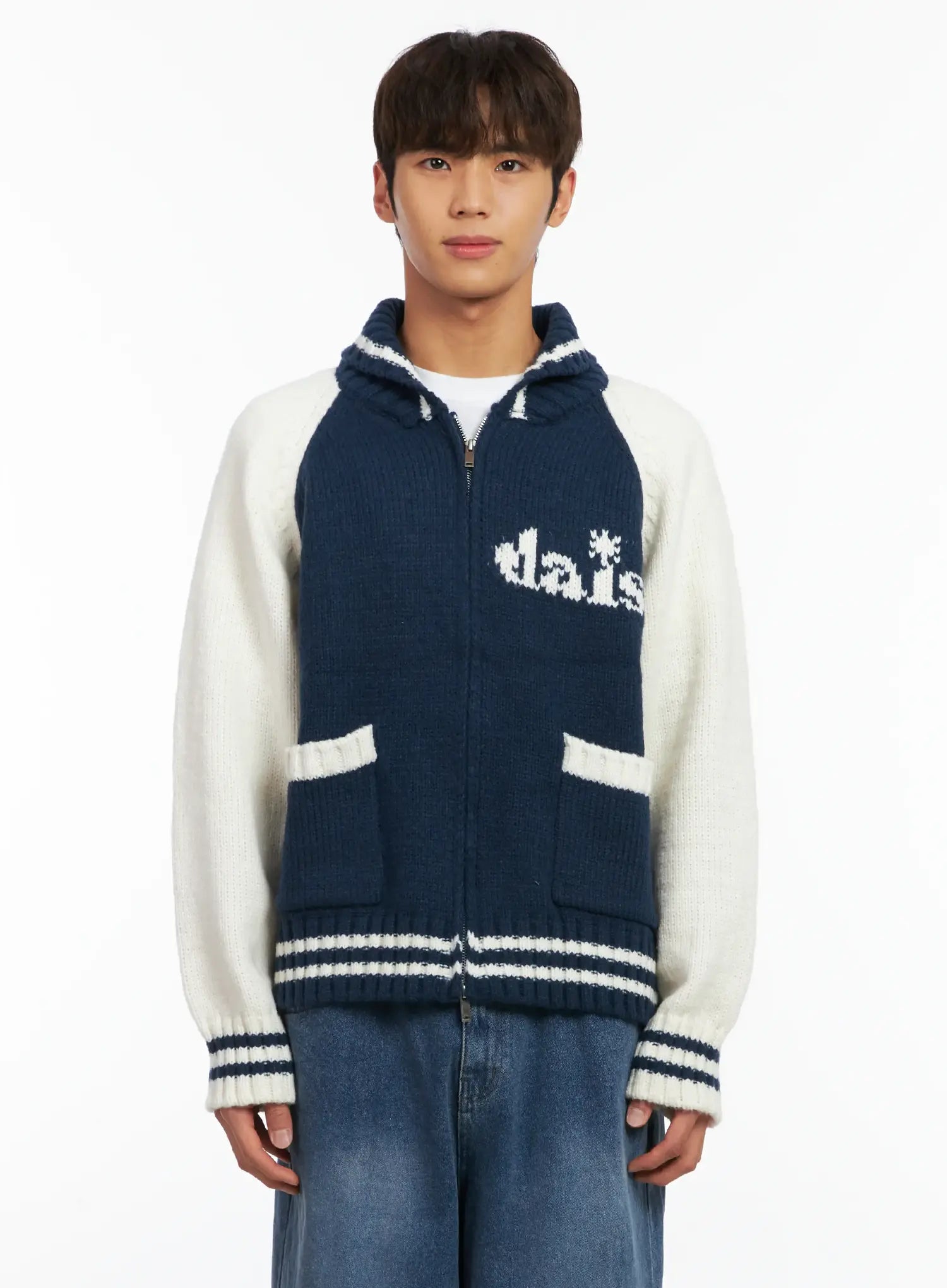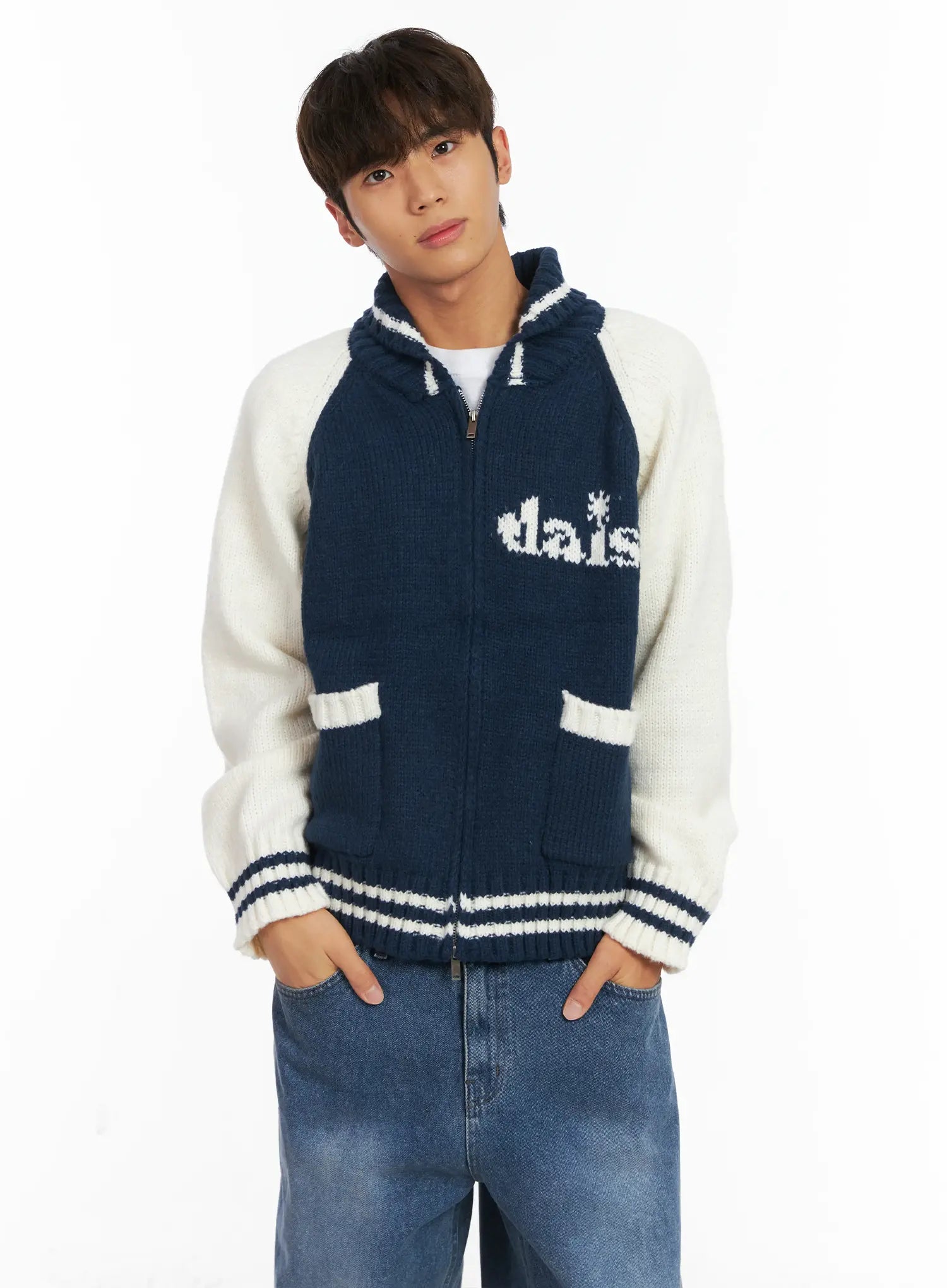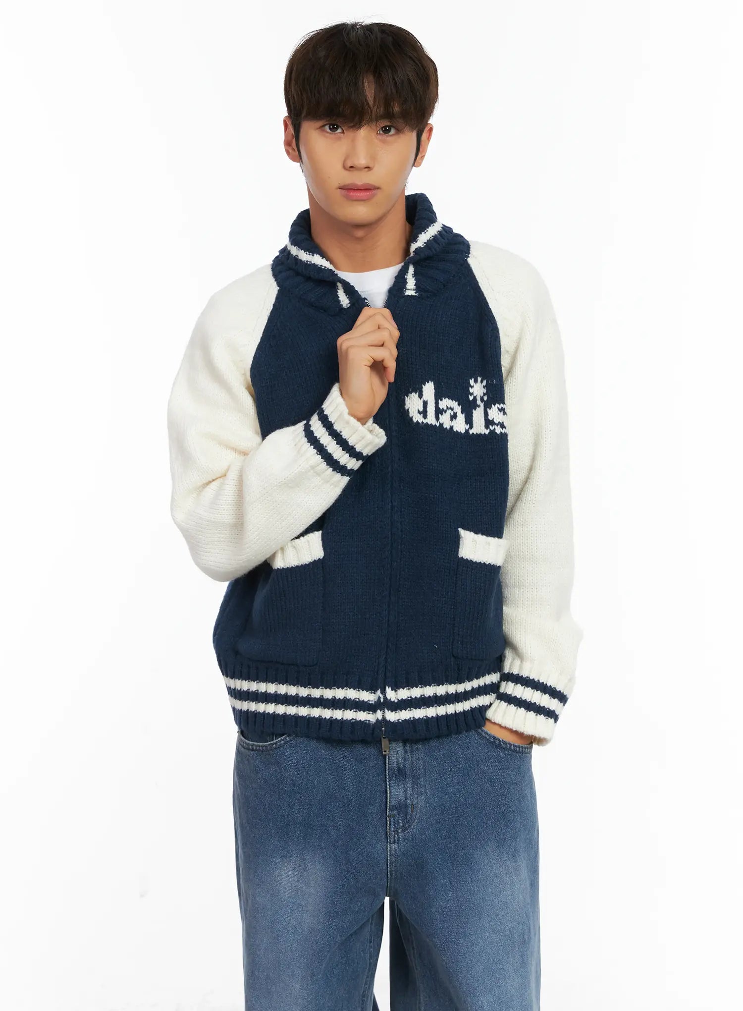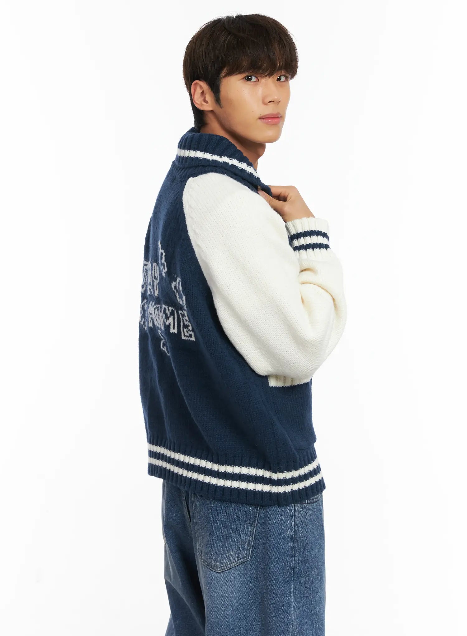 Men's Graphic Varsity Style Knit Jacket ID511