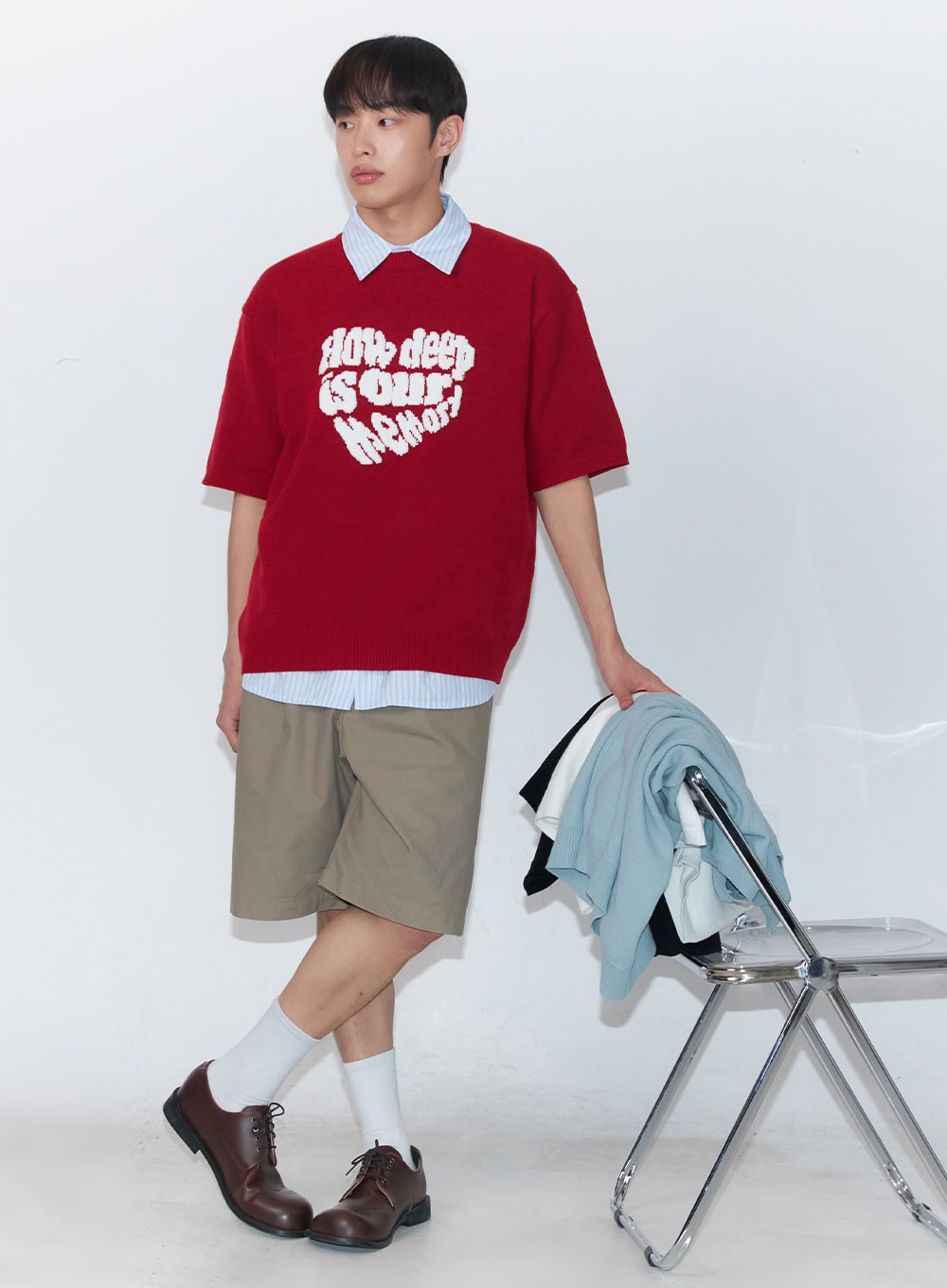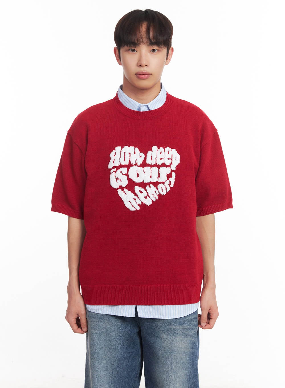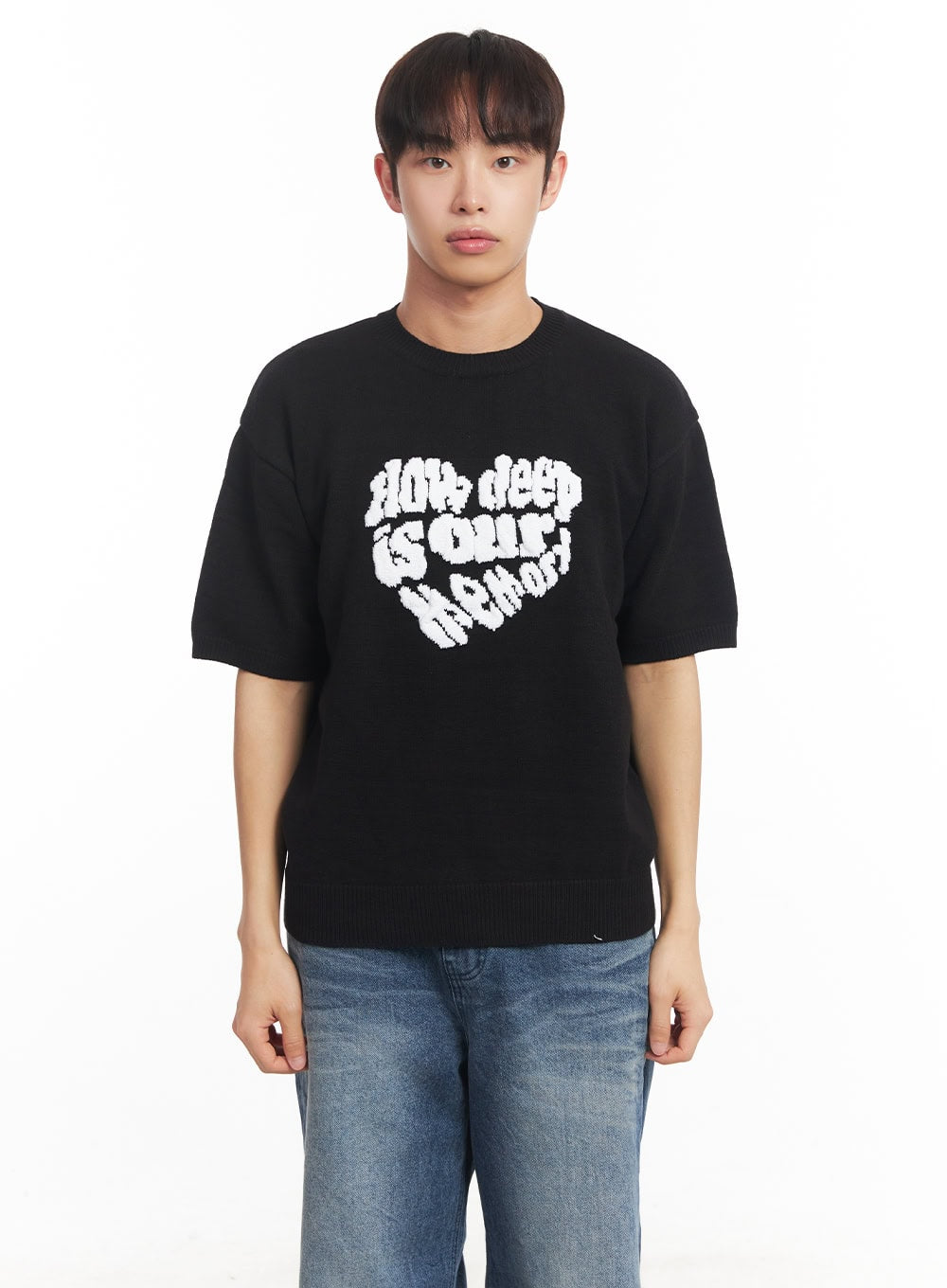 Men's Heart Graphic Short Sleeve Sweater IA521