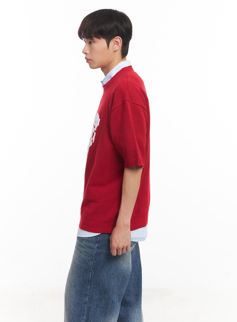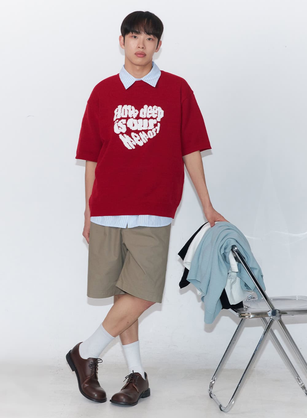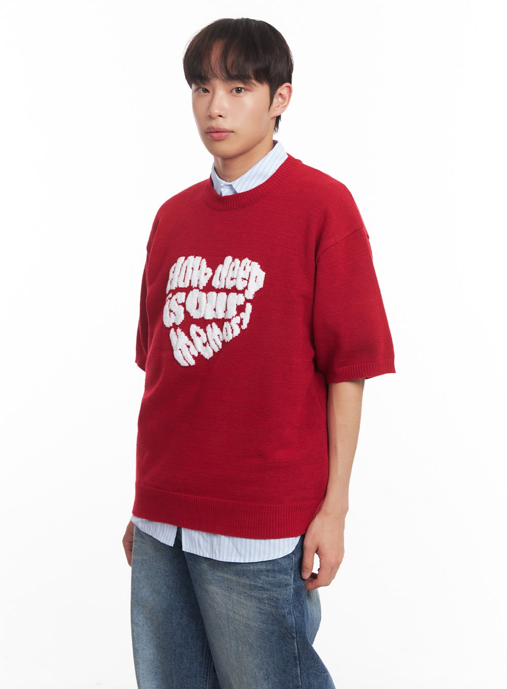 Men's Heart Graphic Short Sleeve Sweater IA521