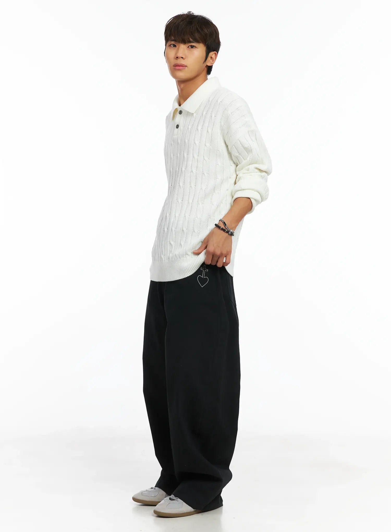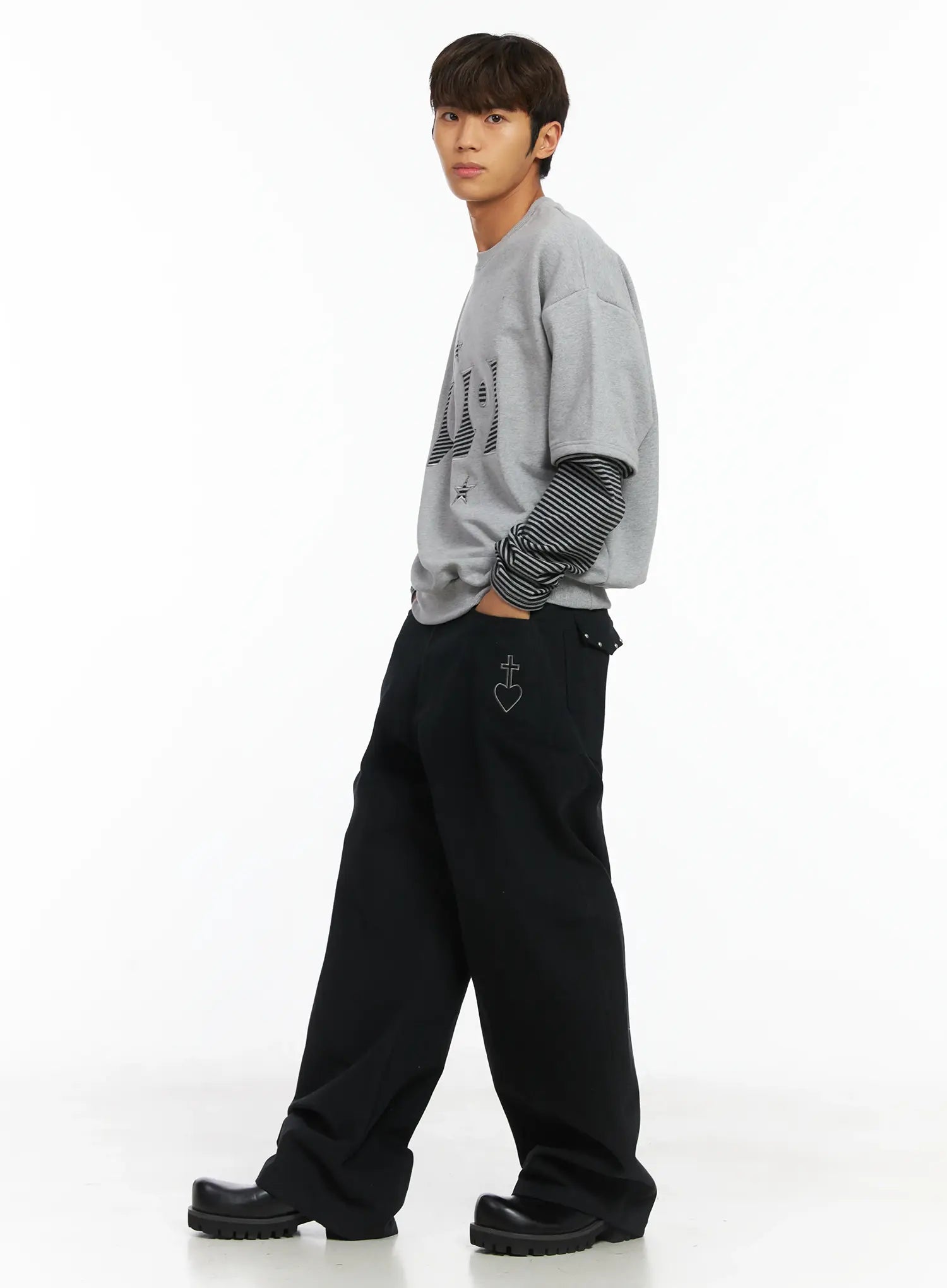 Men's Heart Stud Wide Leg Jeans IJ514