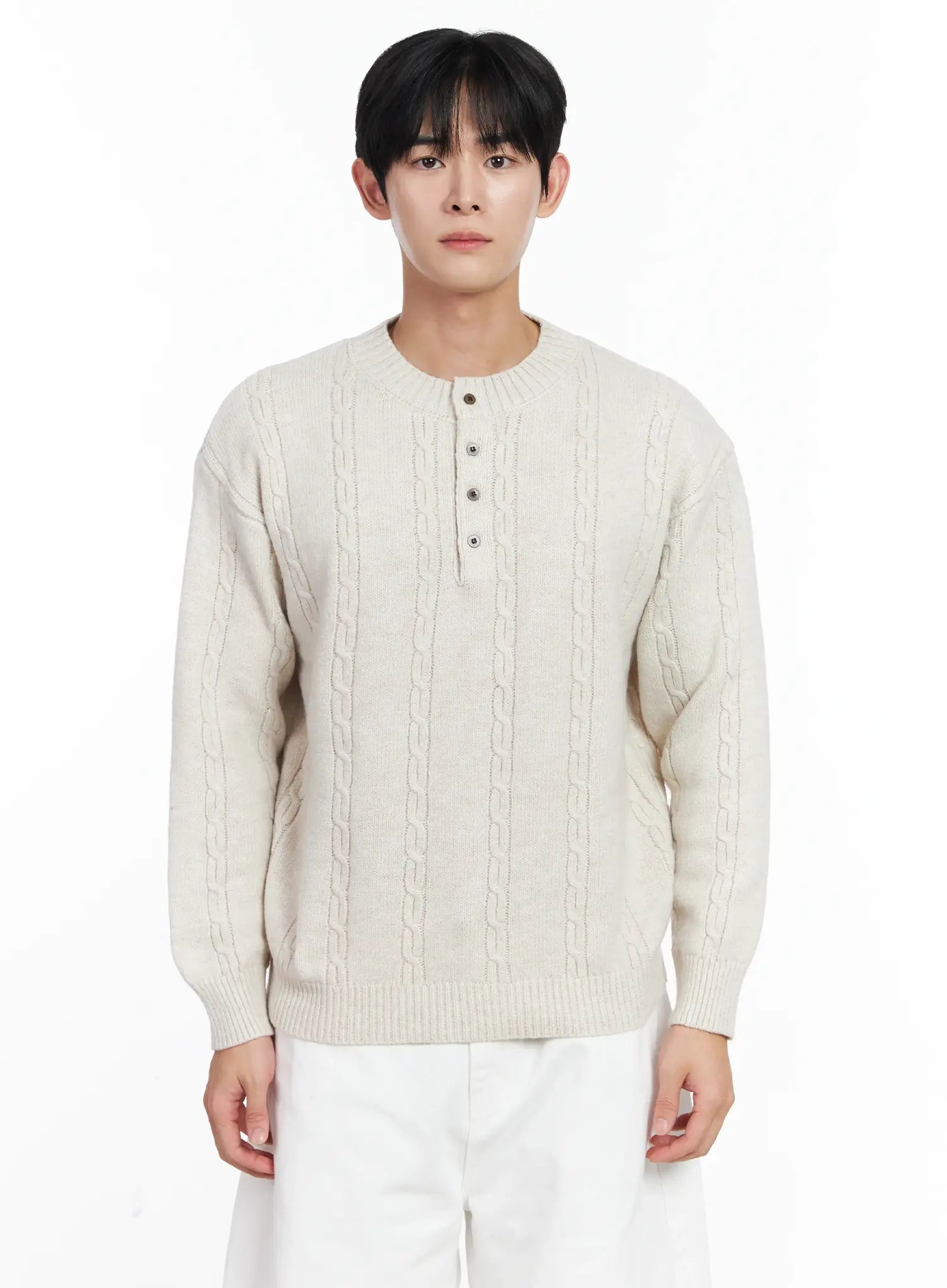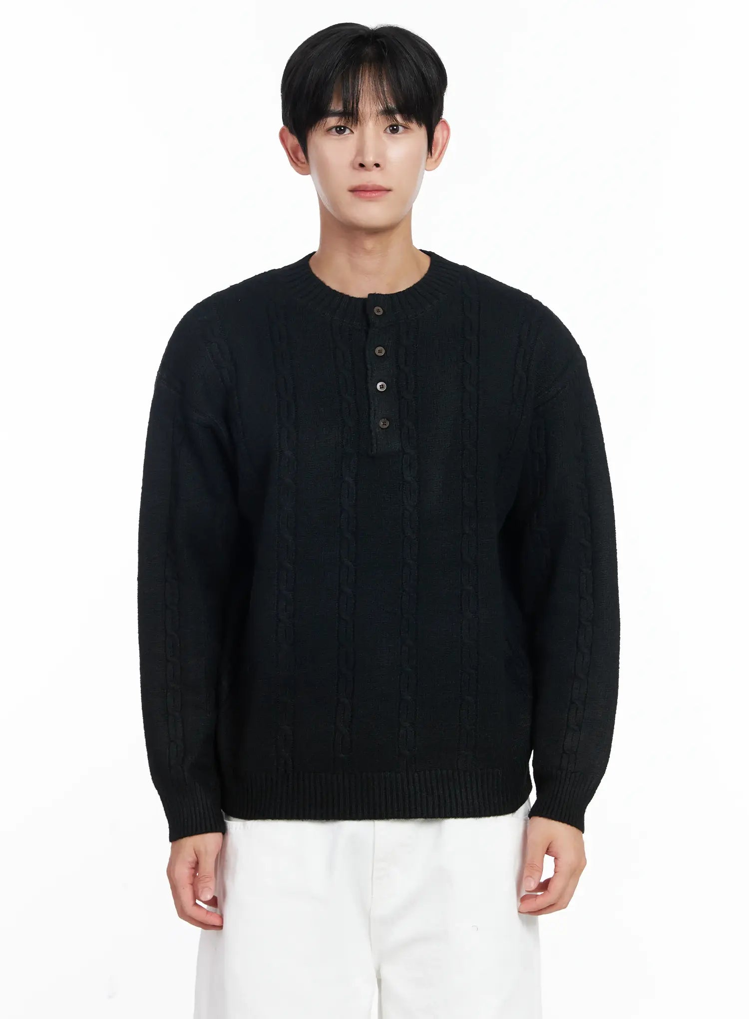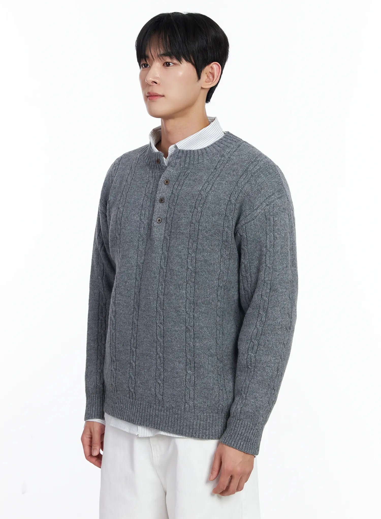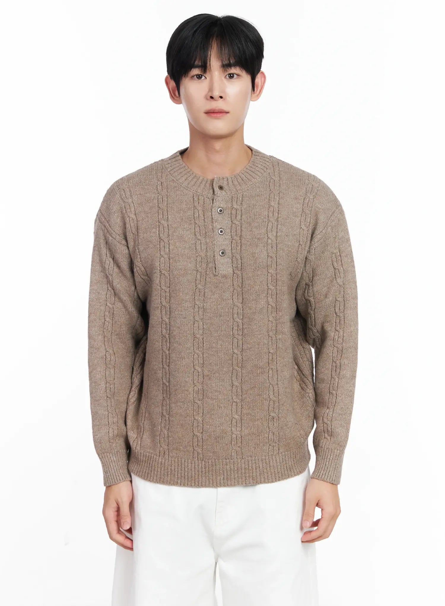 Men's Henley Neck Knit Sweater IJ521
