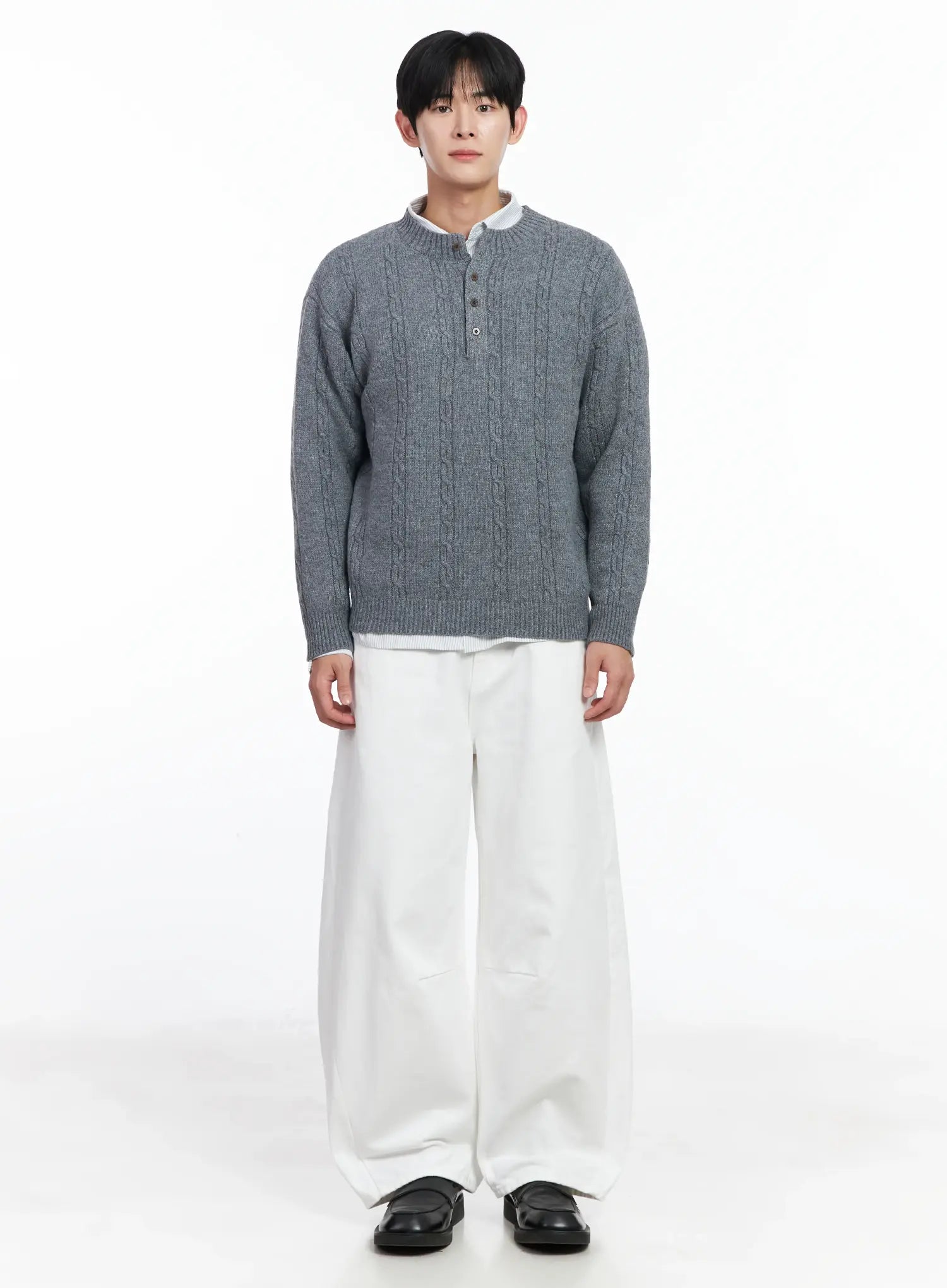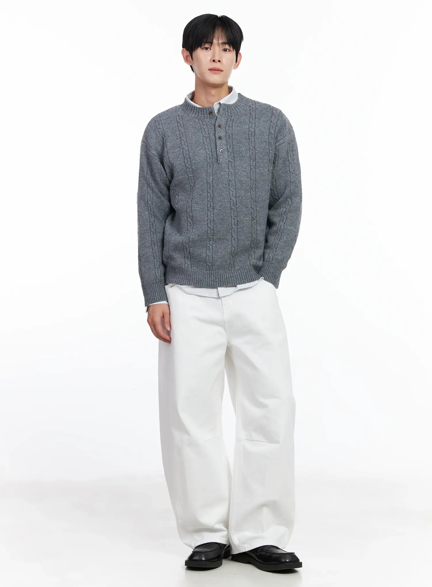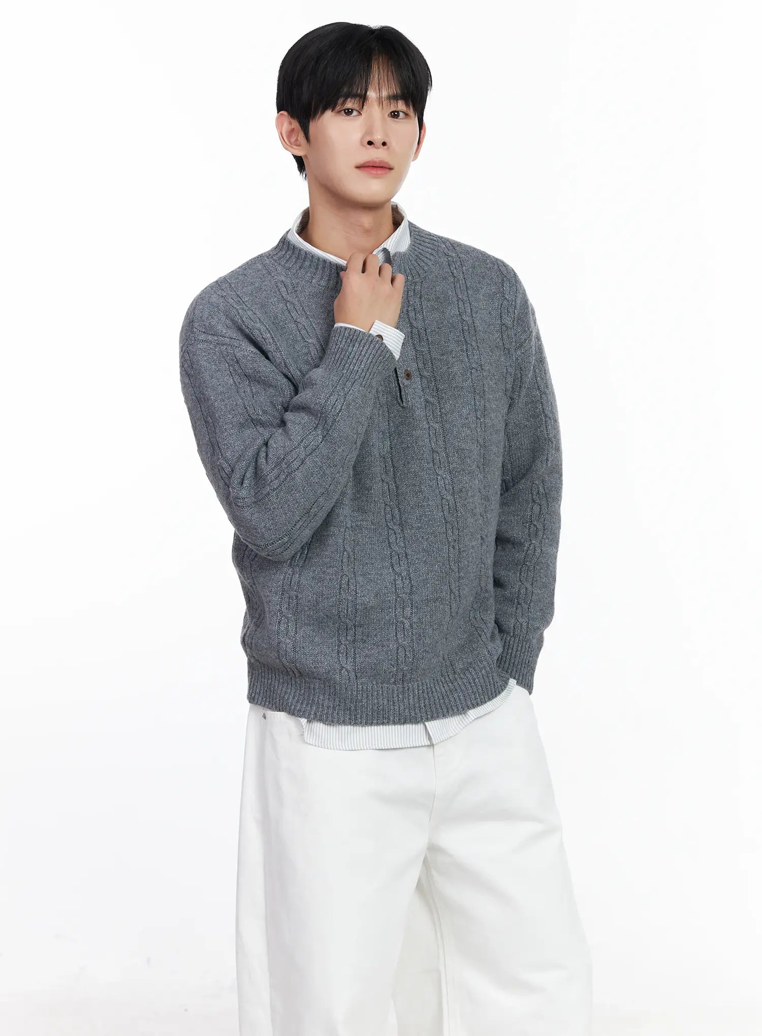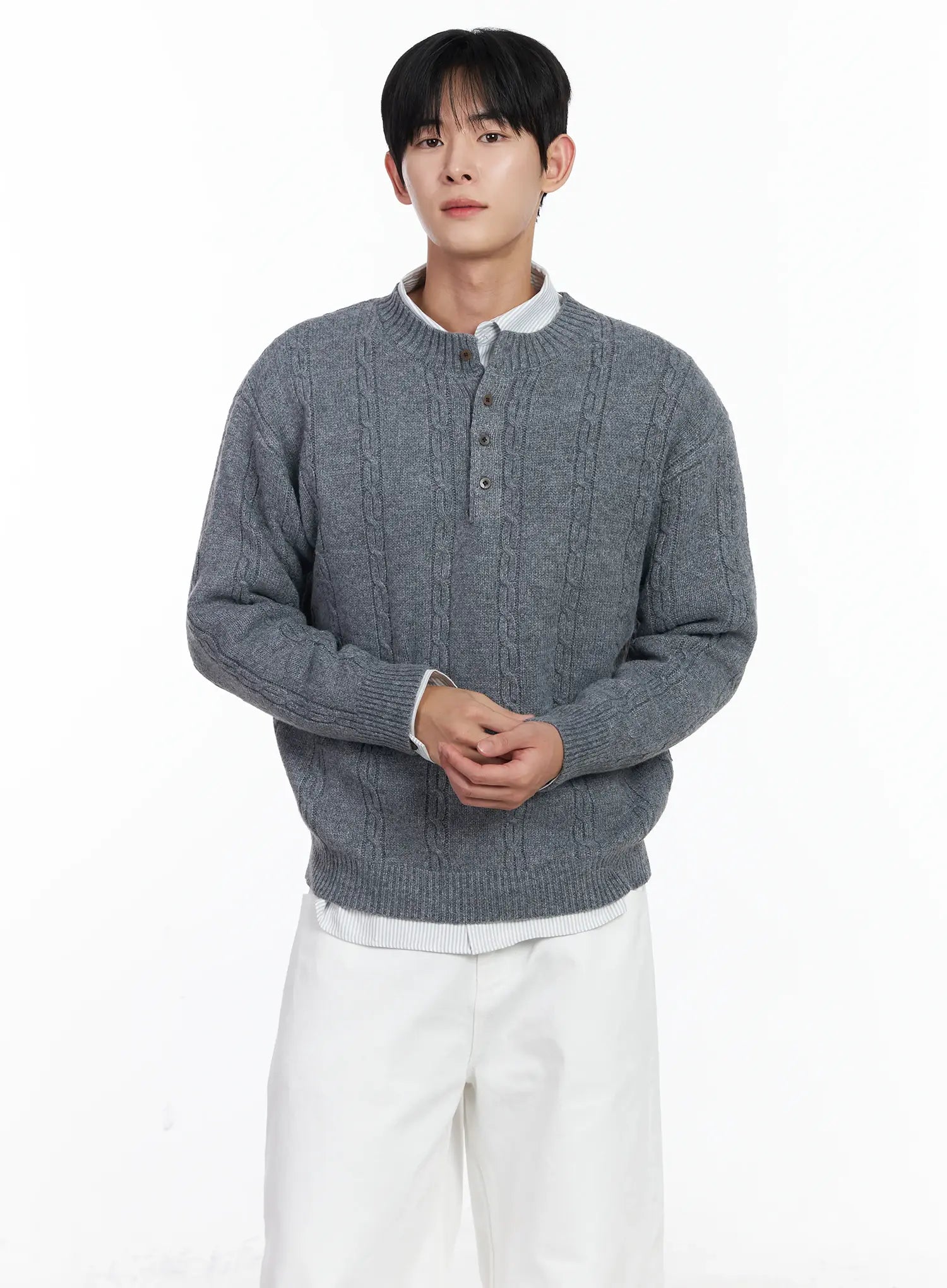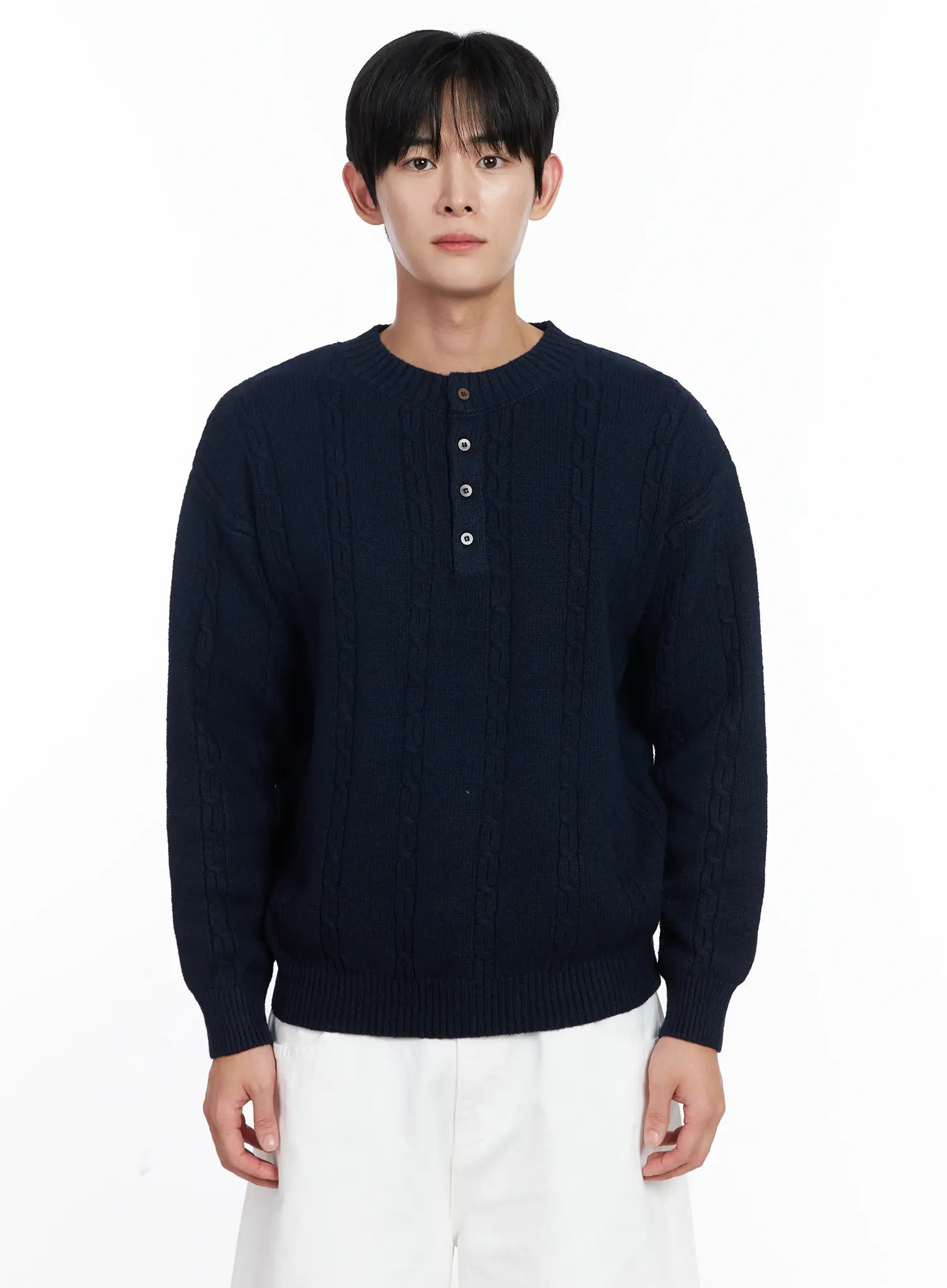 Men's Henley Neck Knit Sweater IJ521