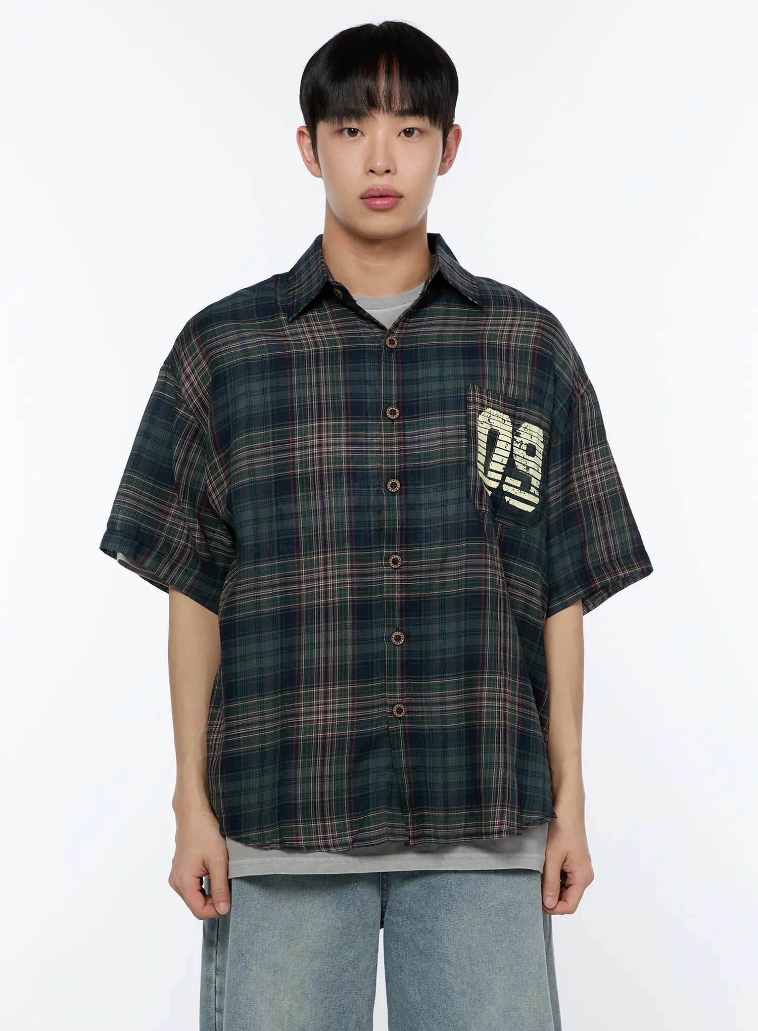 Men's Plaid Graphic Short Sleeve Shirt IA520