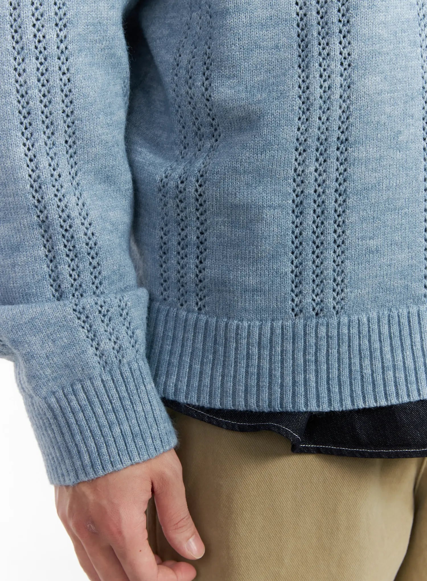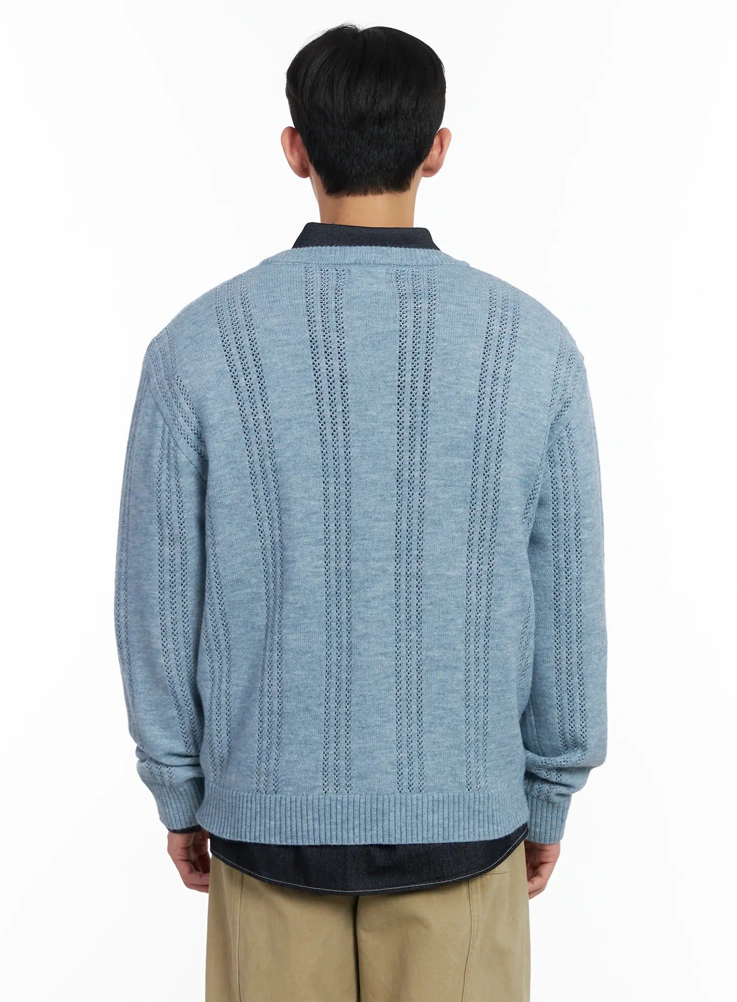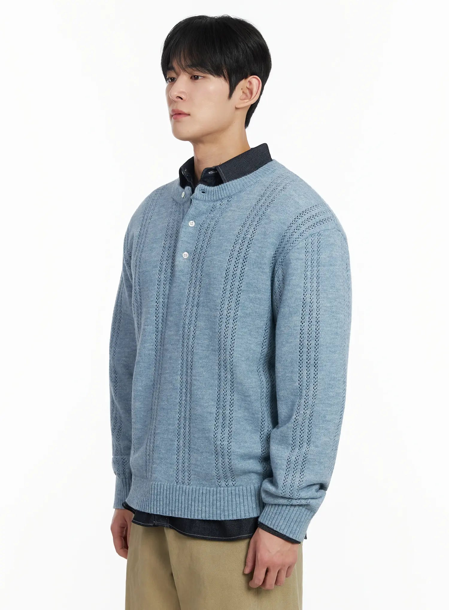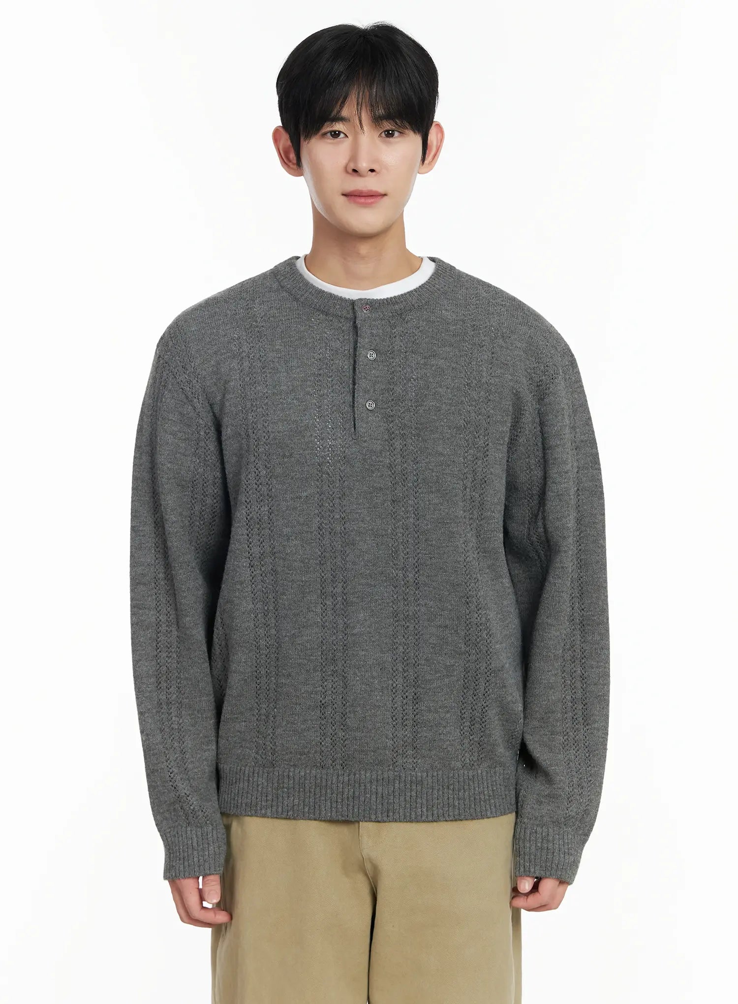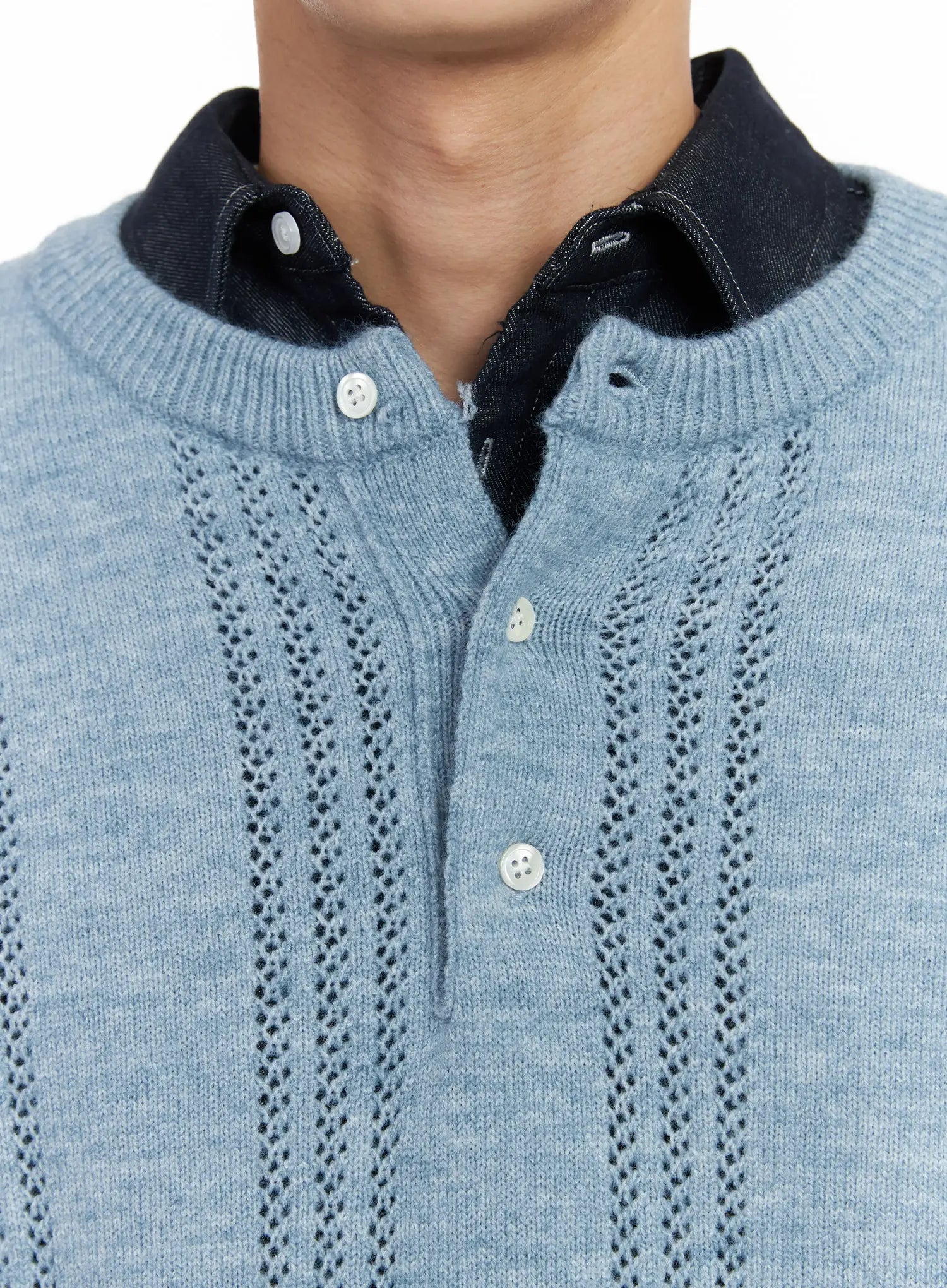 Men's Pointelle Henley Knit Sweater IF517