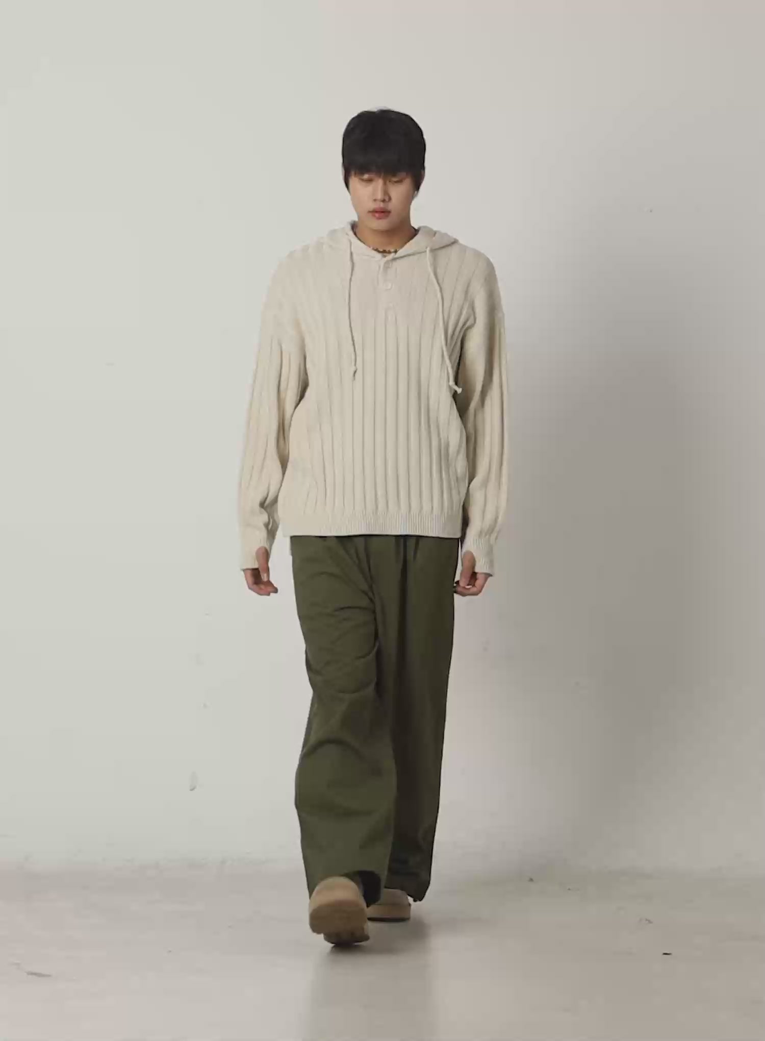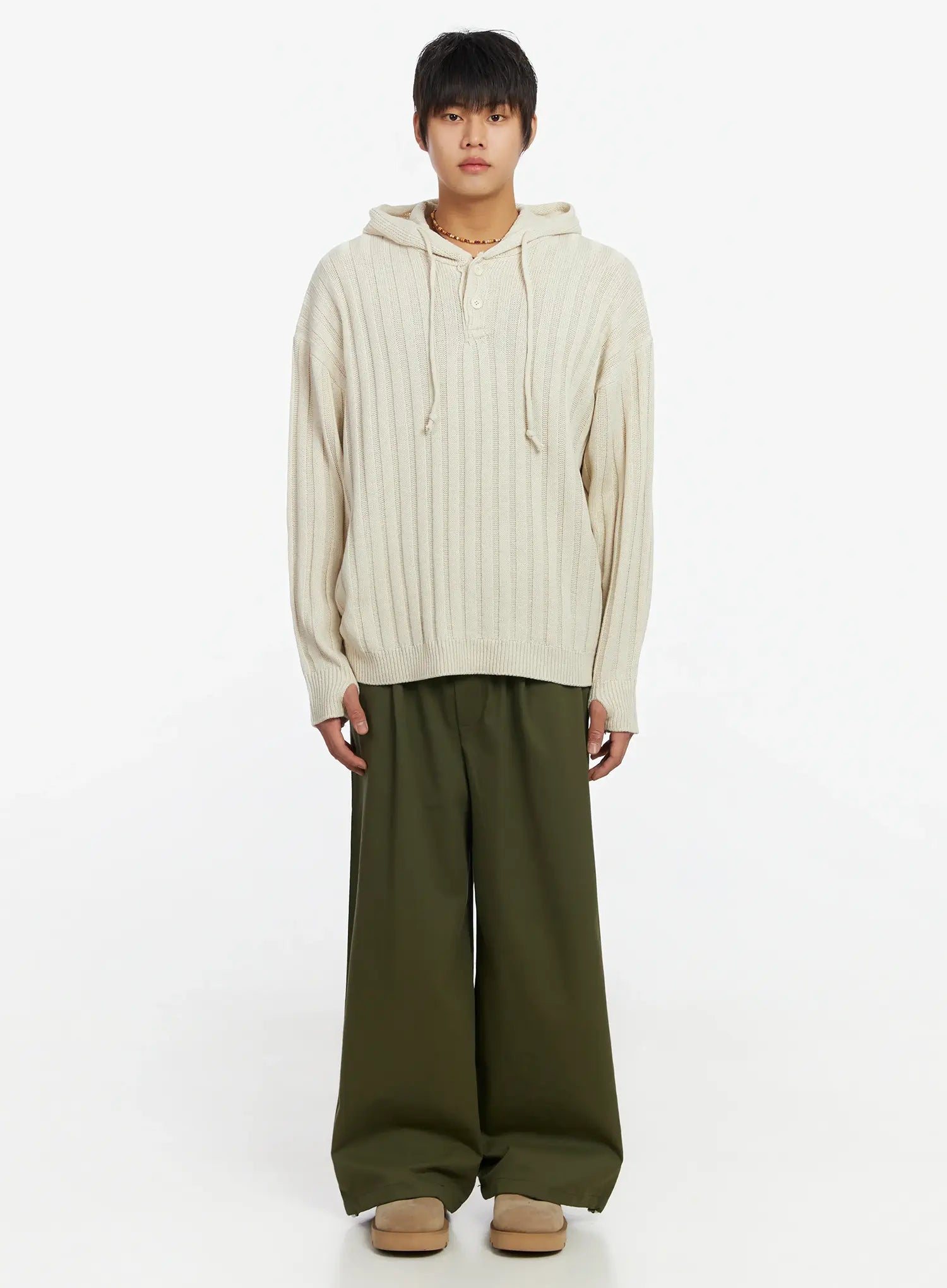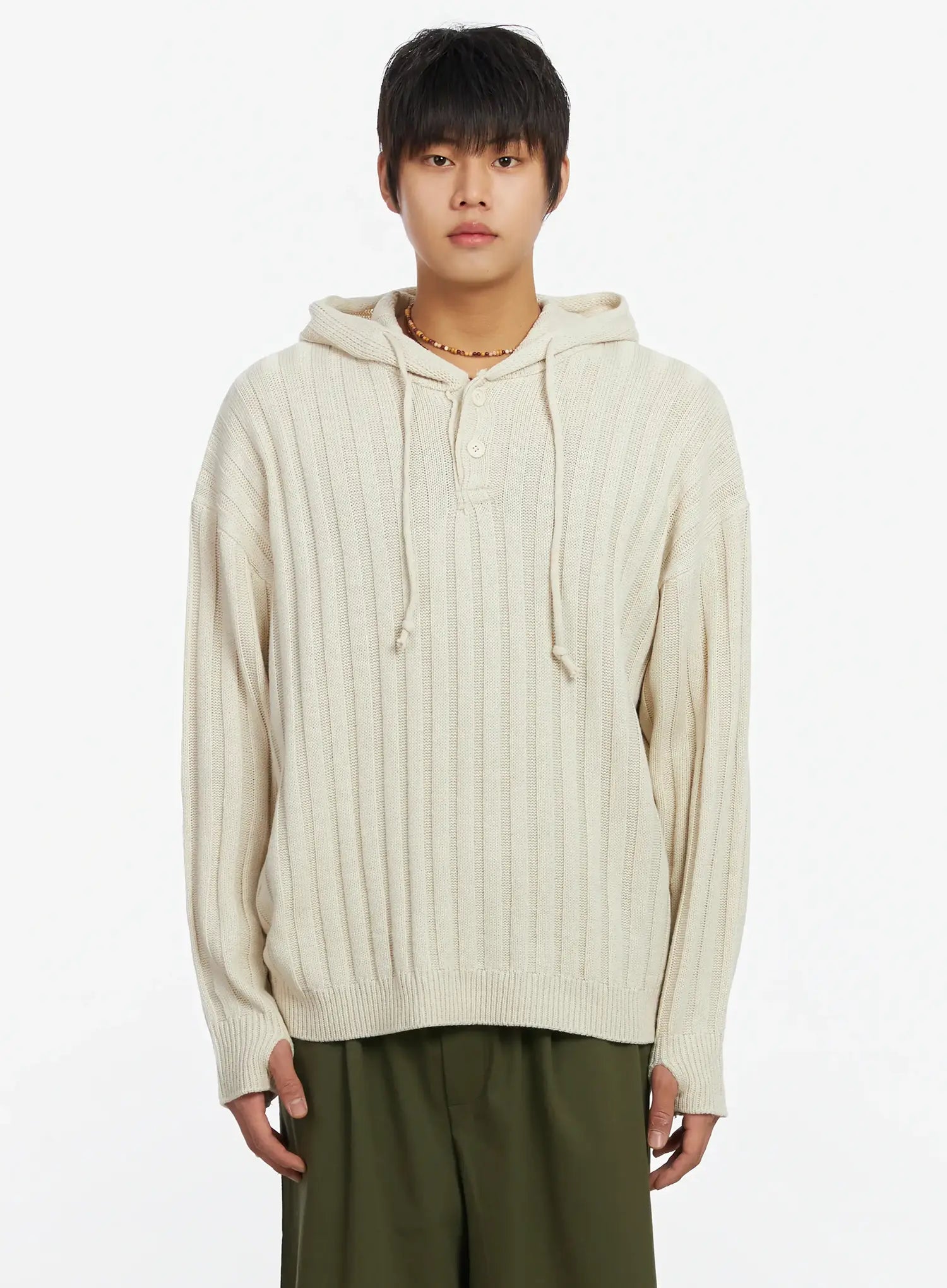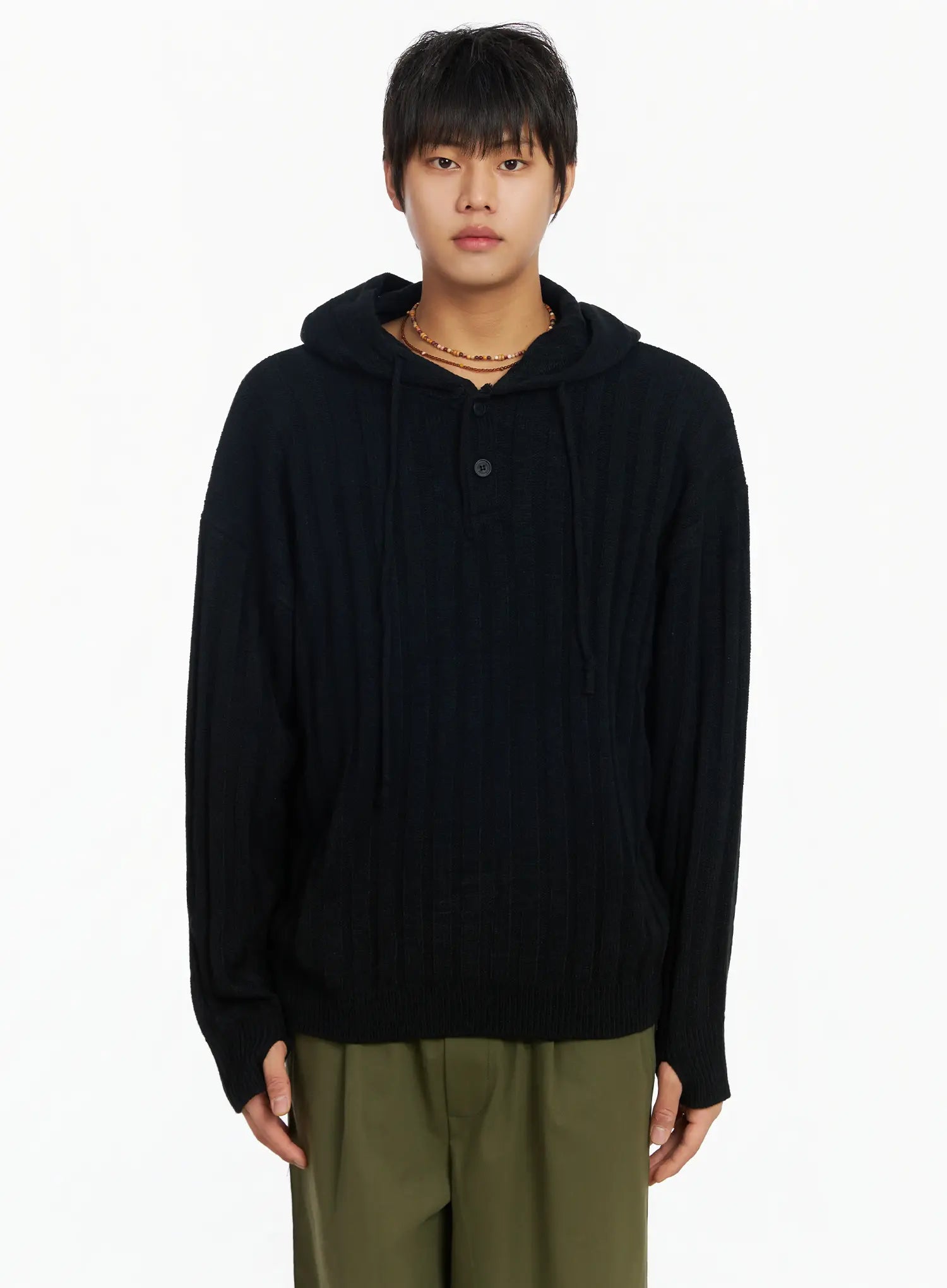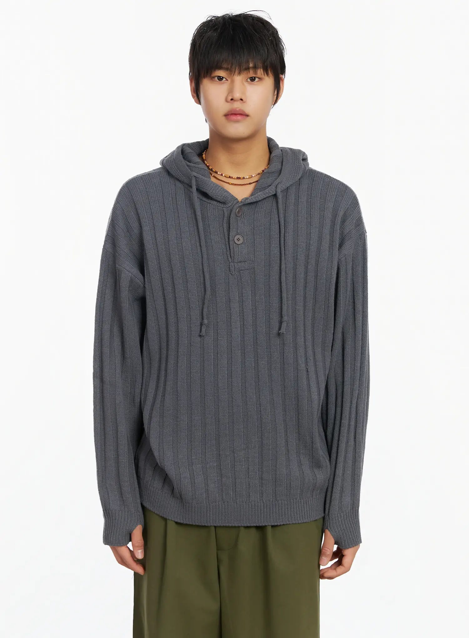 Men's Ribbed Knit Thumbhole Hoodie IJ527