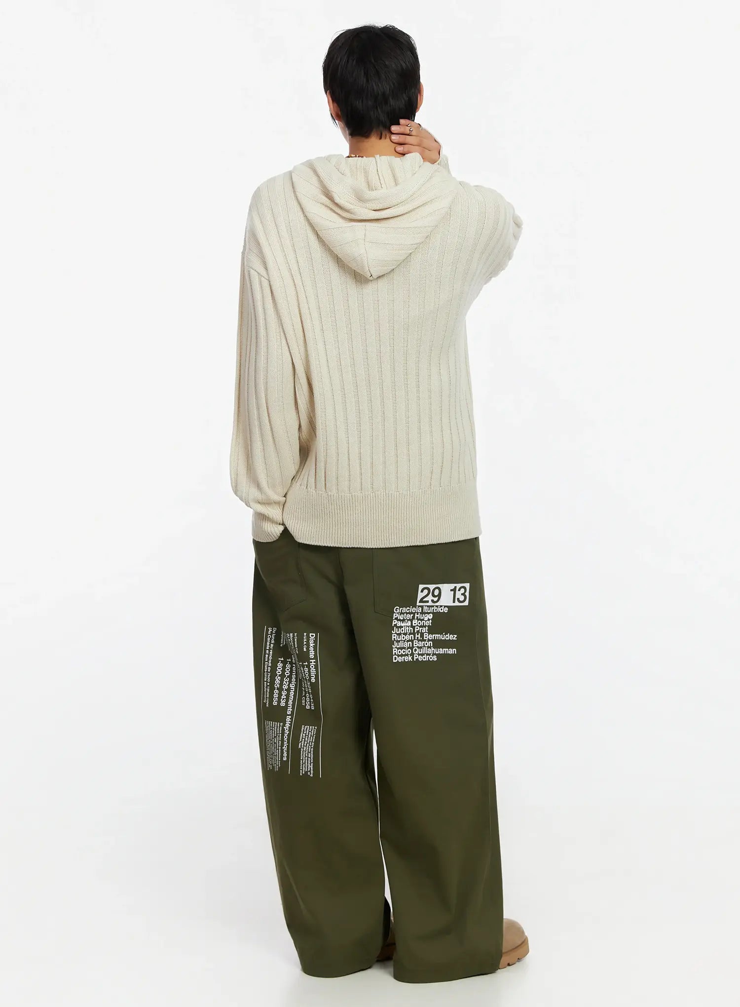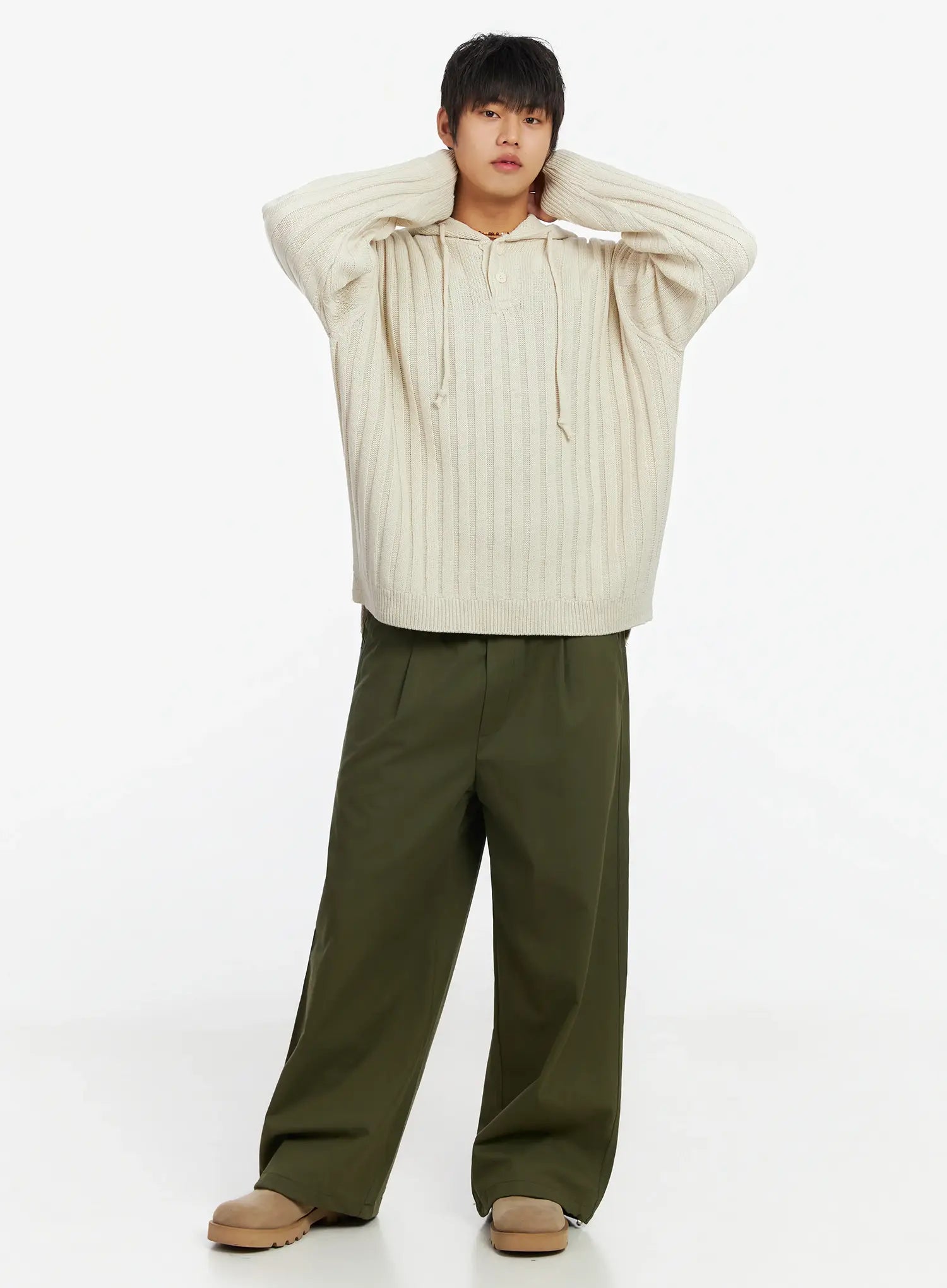 Model is wearing size M/L and the color Light beige.