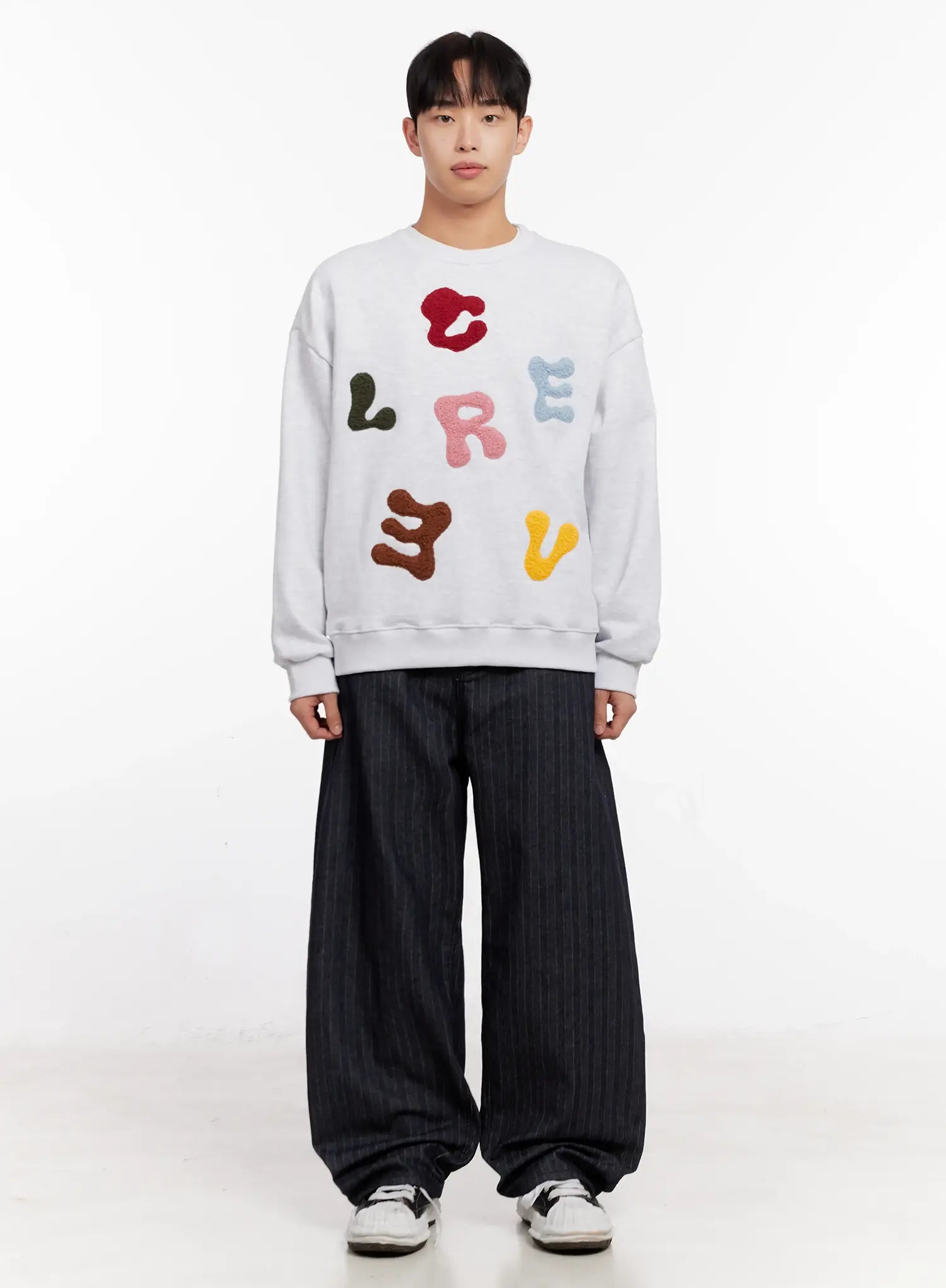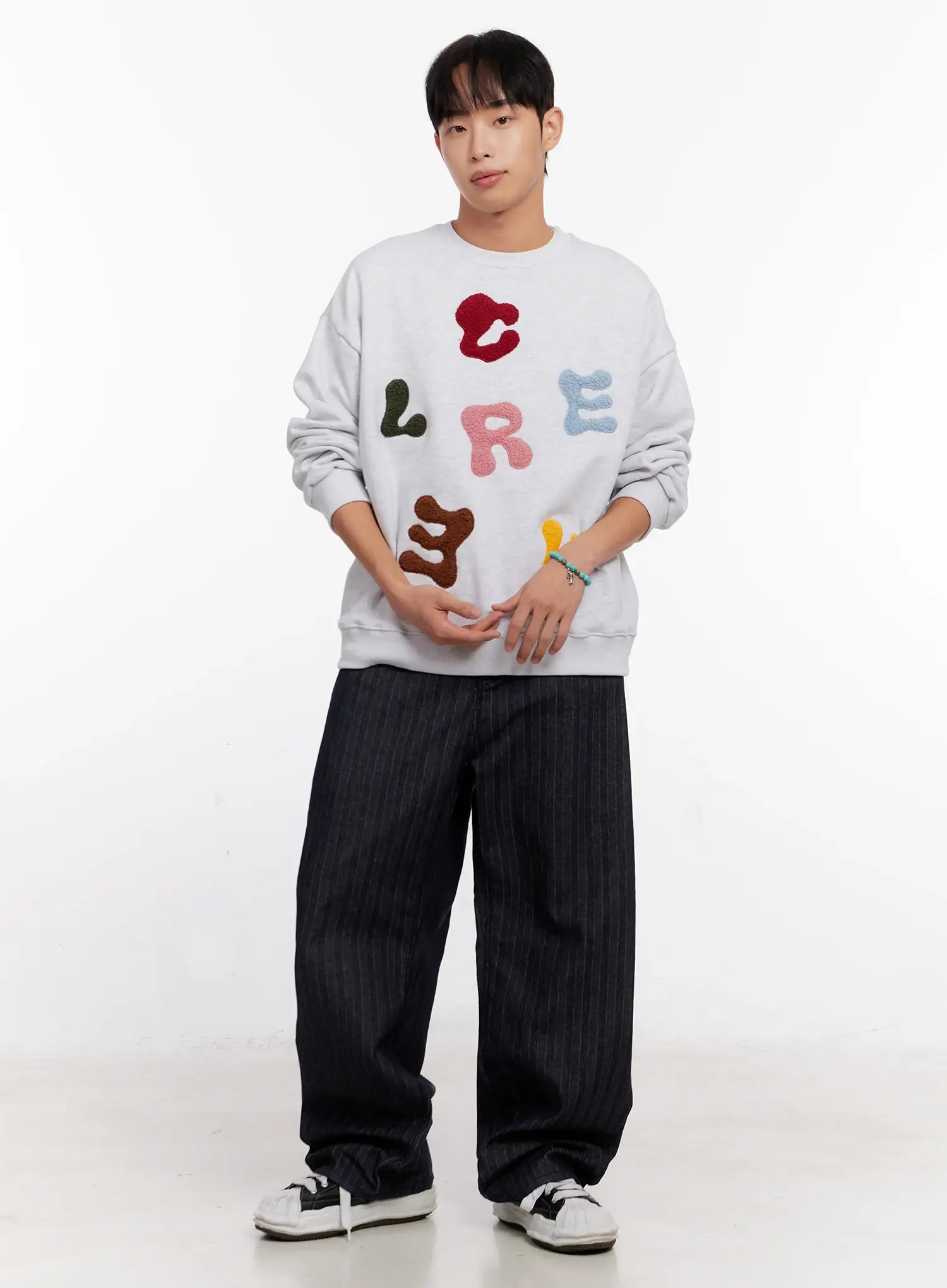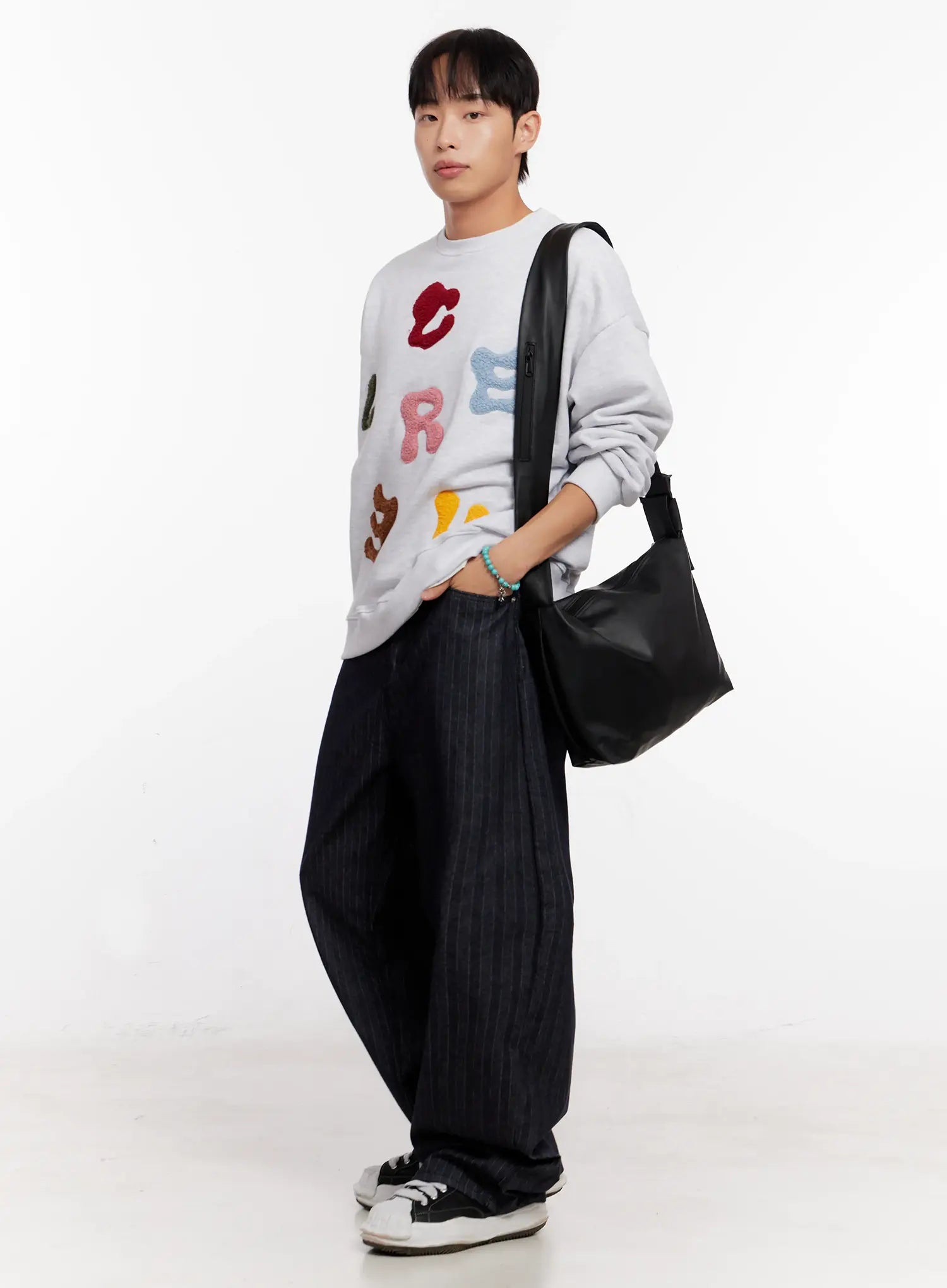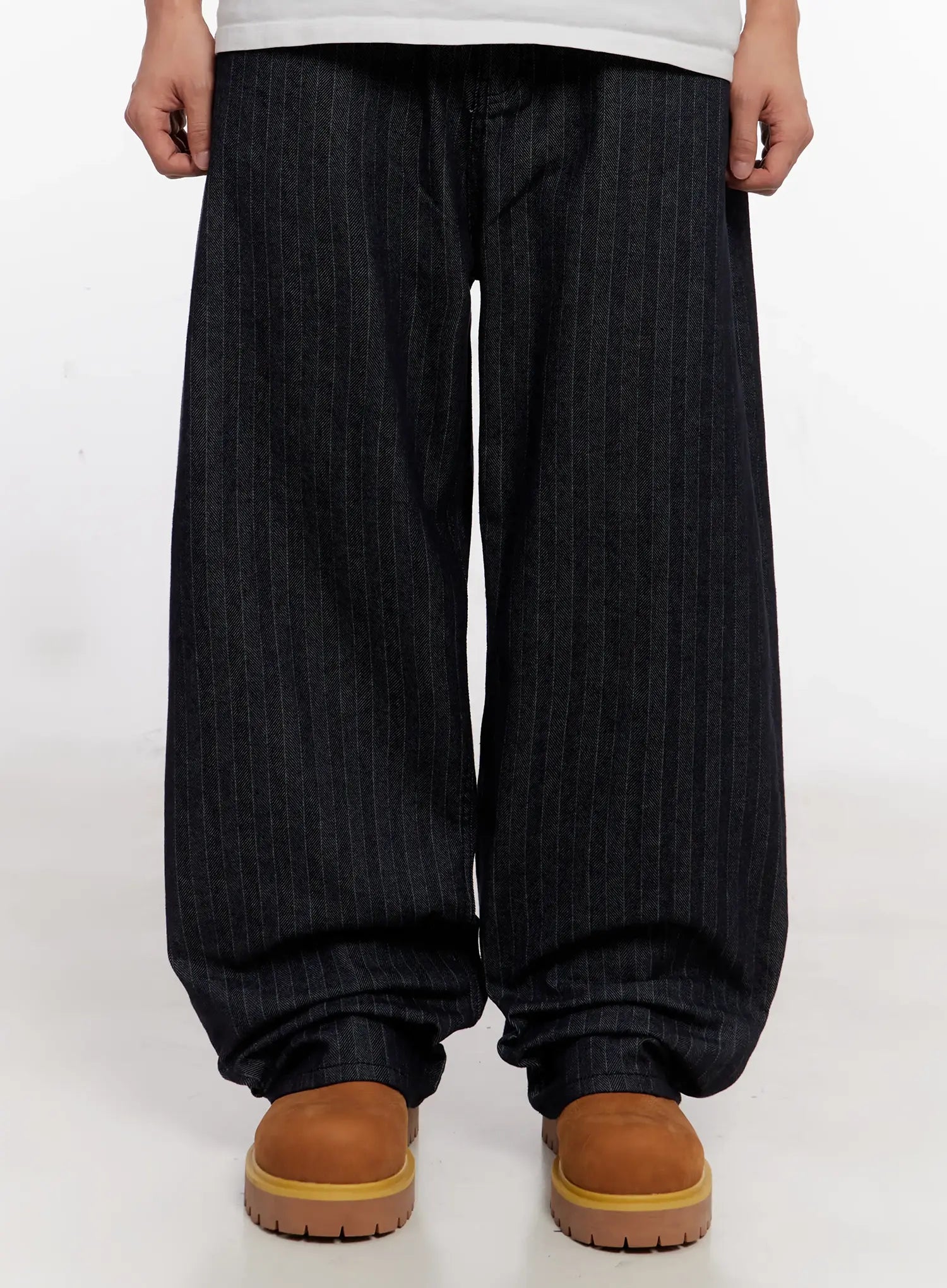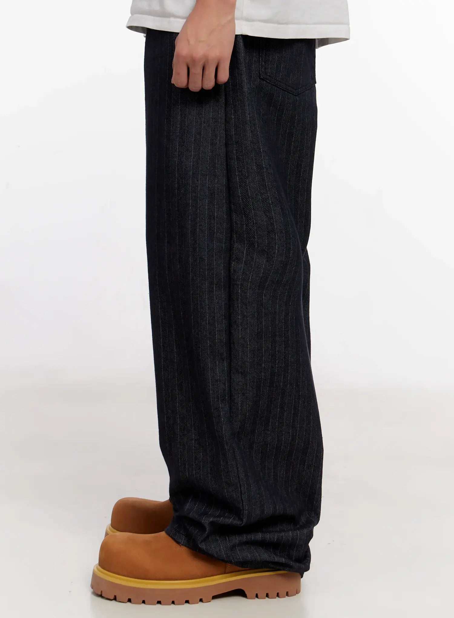 Men's Stripe Wide-Leg Jeans with Patch Detail IO523