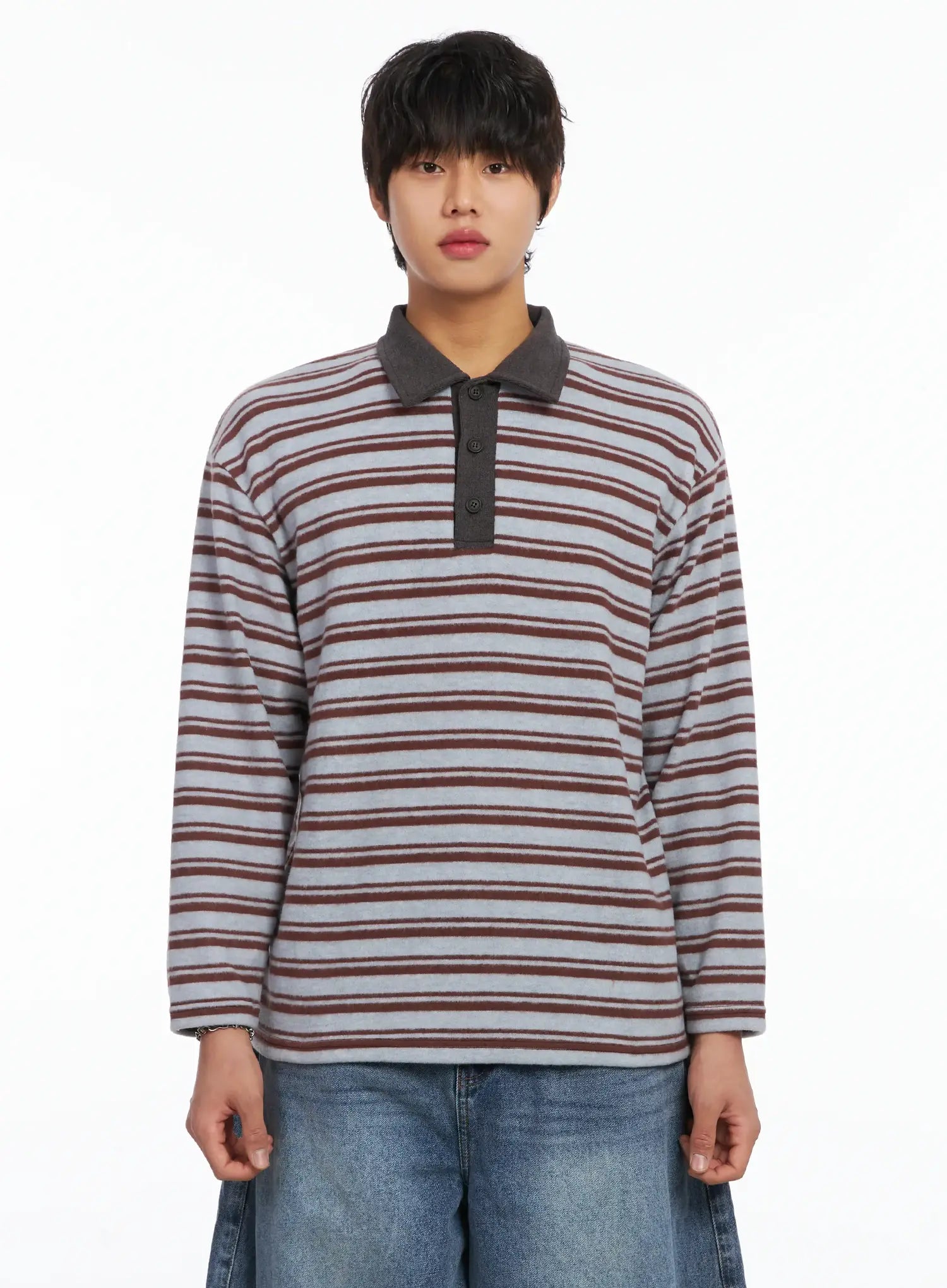 Men's Striped Collar Fleece Sweater IJ512