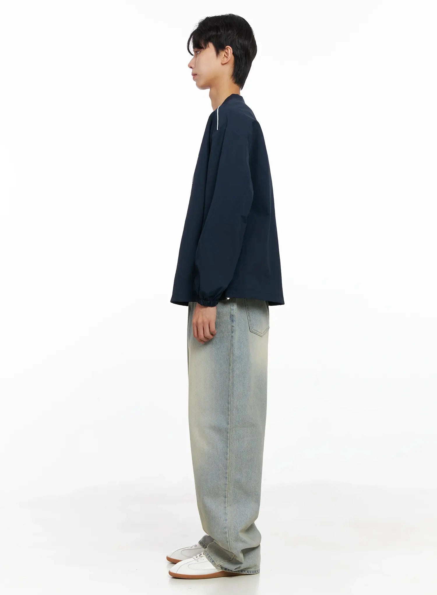 Men's V-Neck Lettering Windbreak Pullover IO517