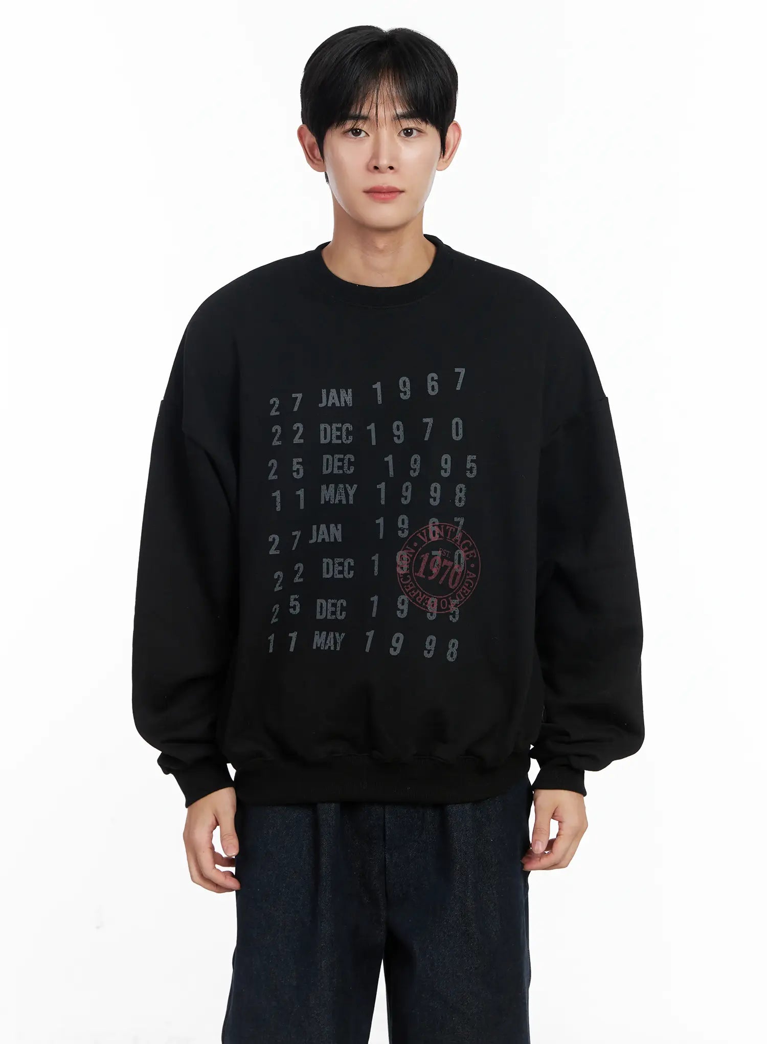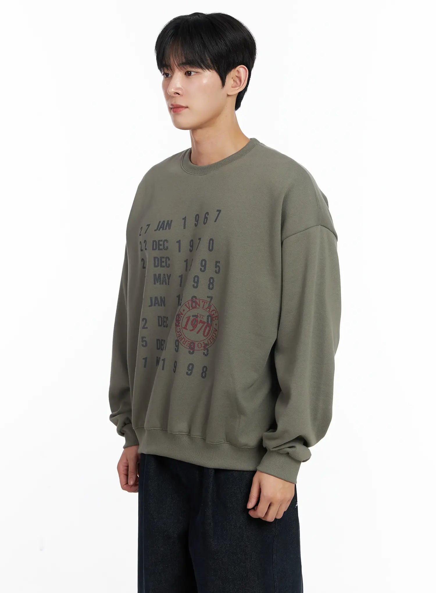 Men's Vintage Date Print Sweatshirt IJ521