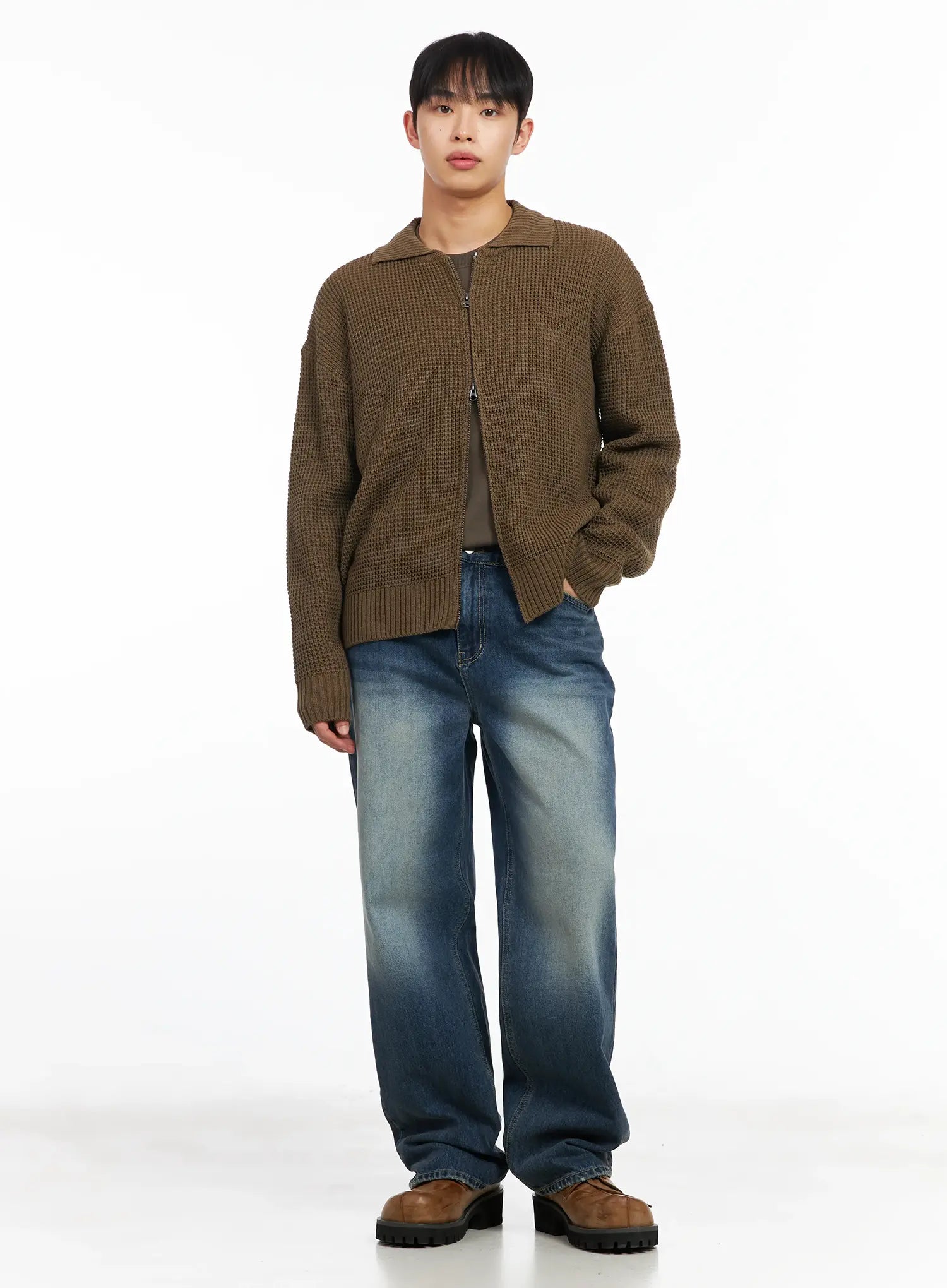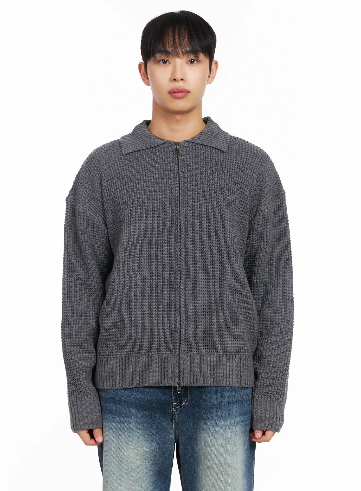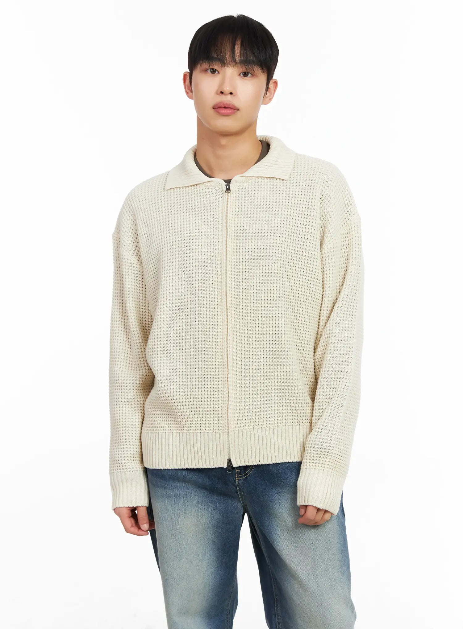 Men's Waffle Knit Zip-Up Cardigan IM511