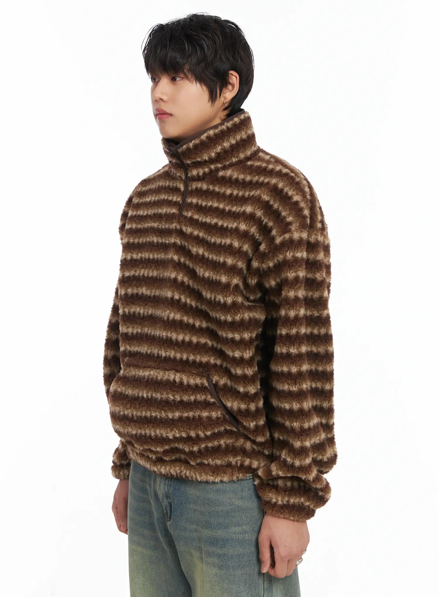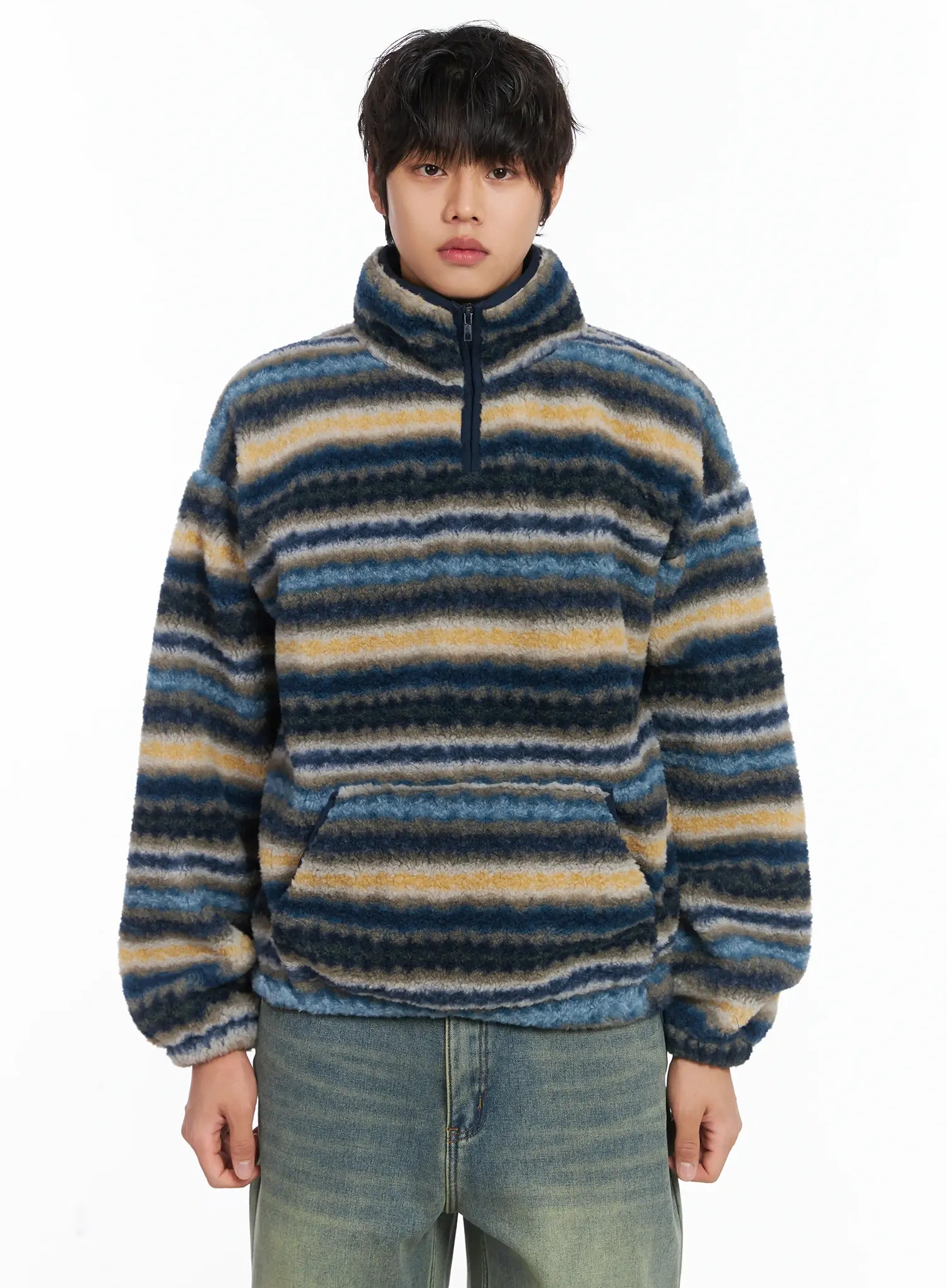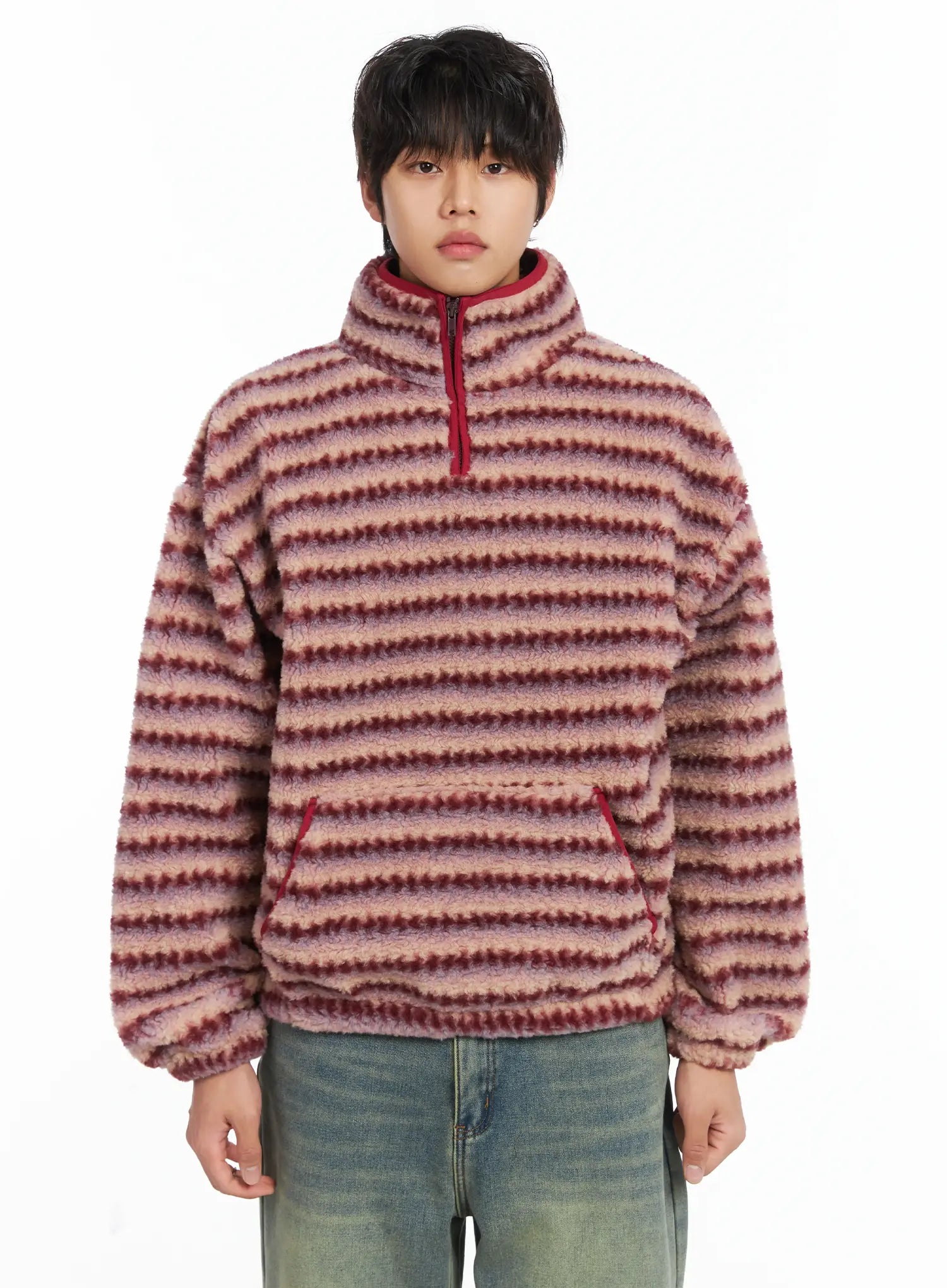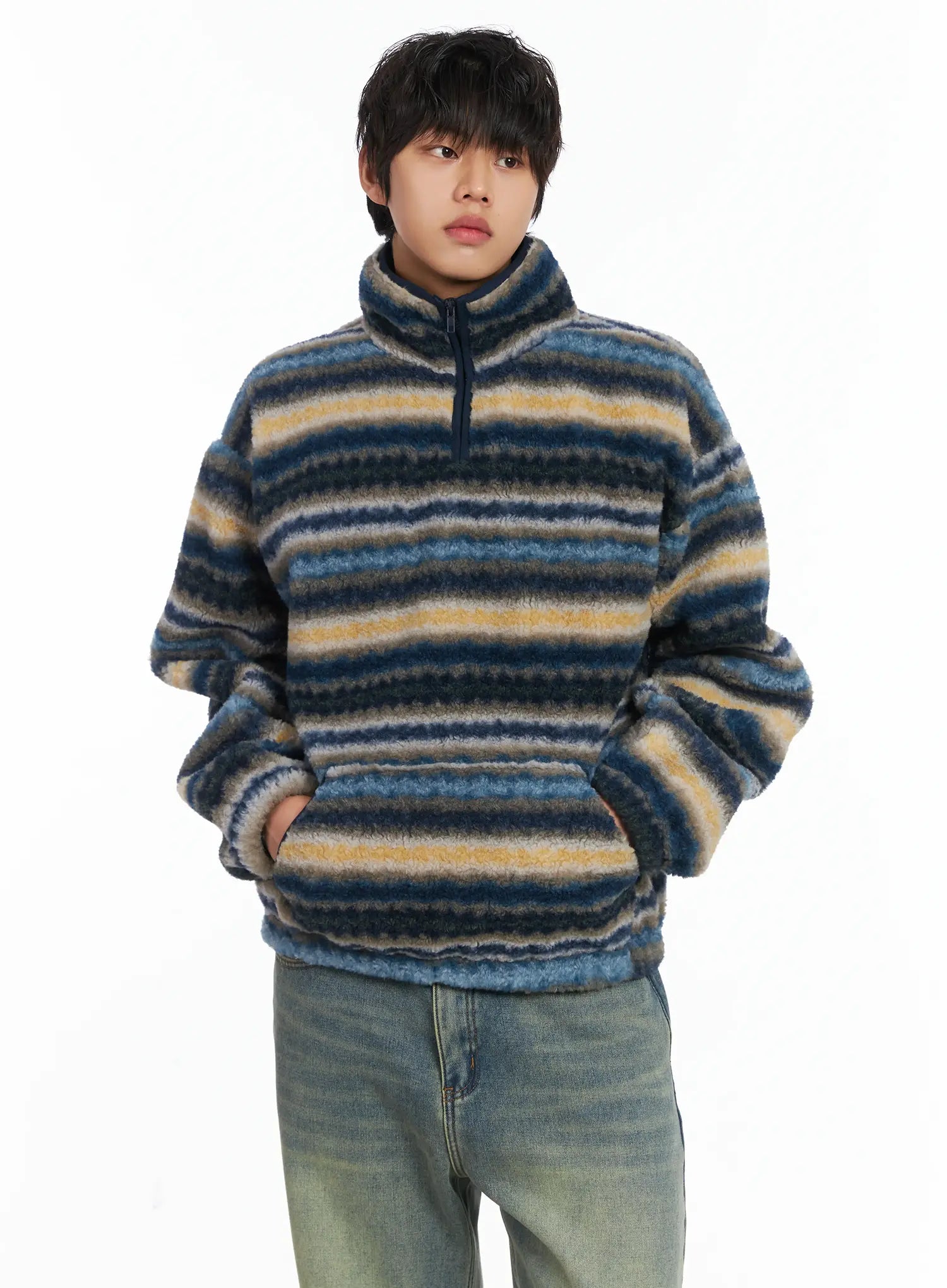 Men's Warm Fleece Striped Quarter Zip-Up IJ512