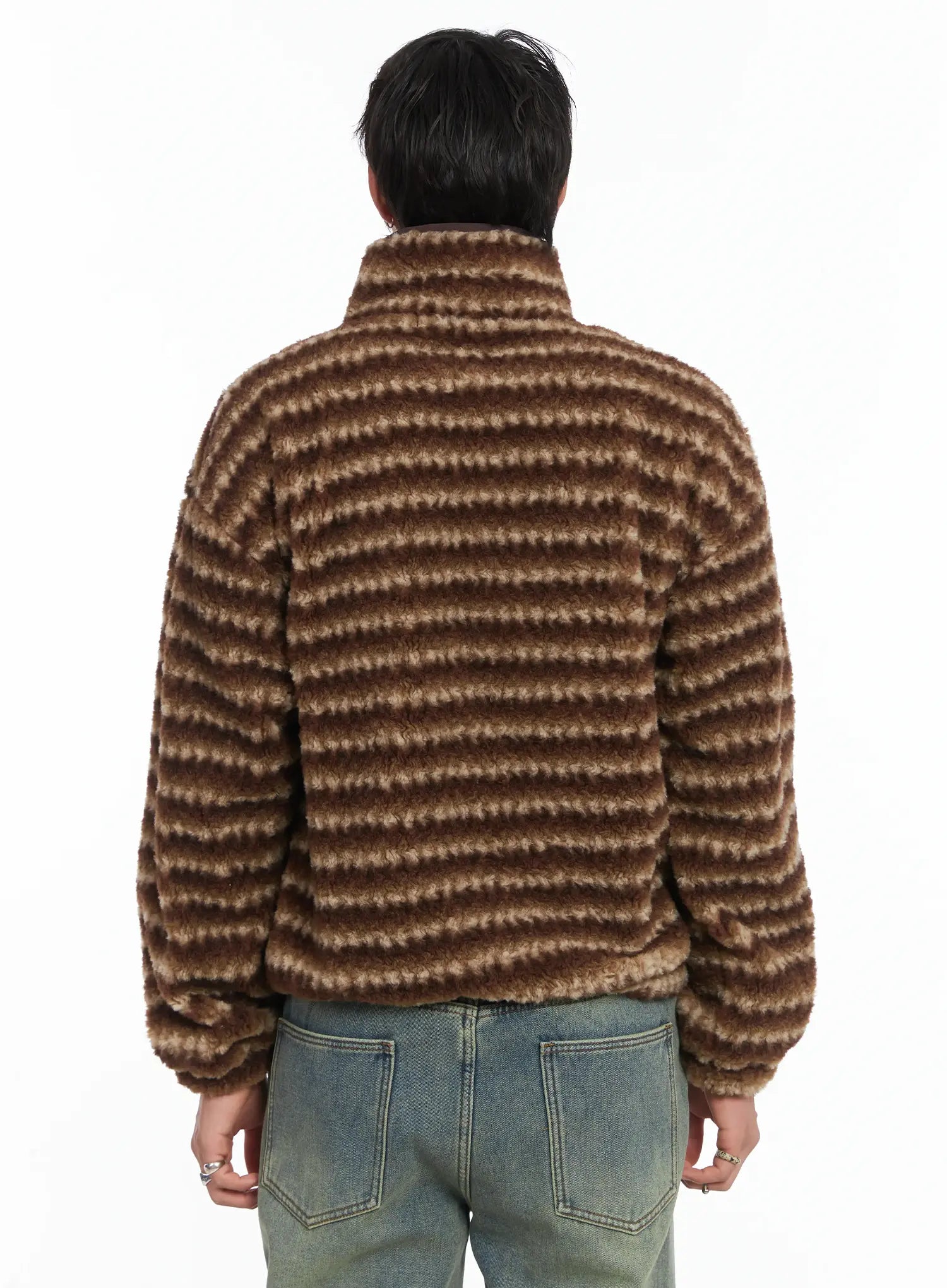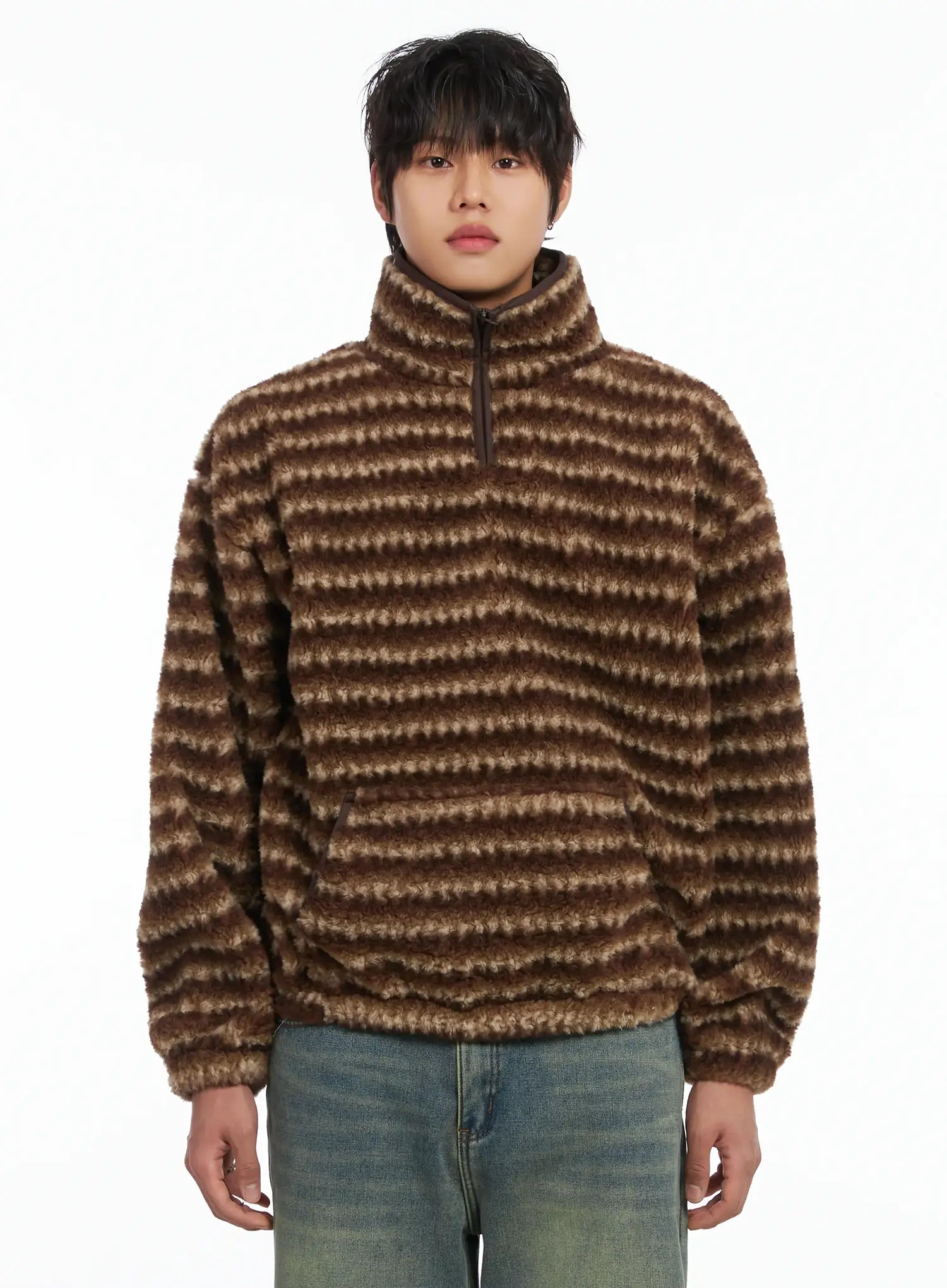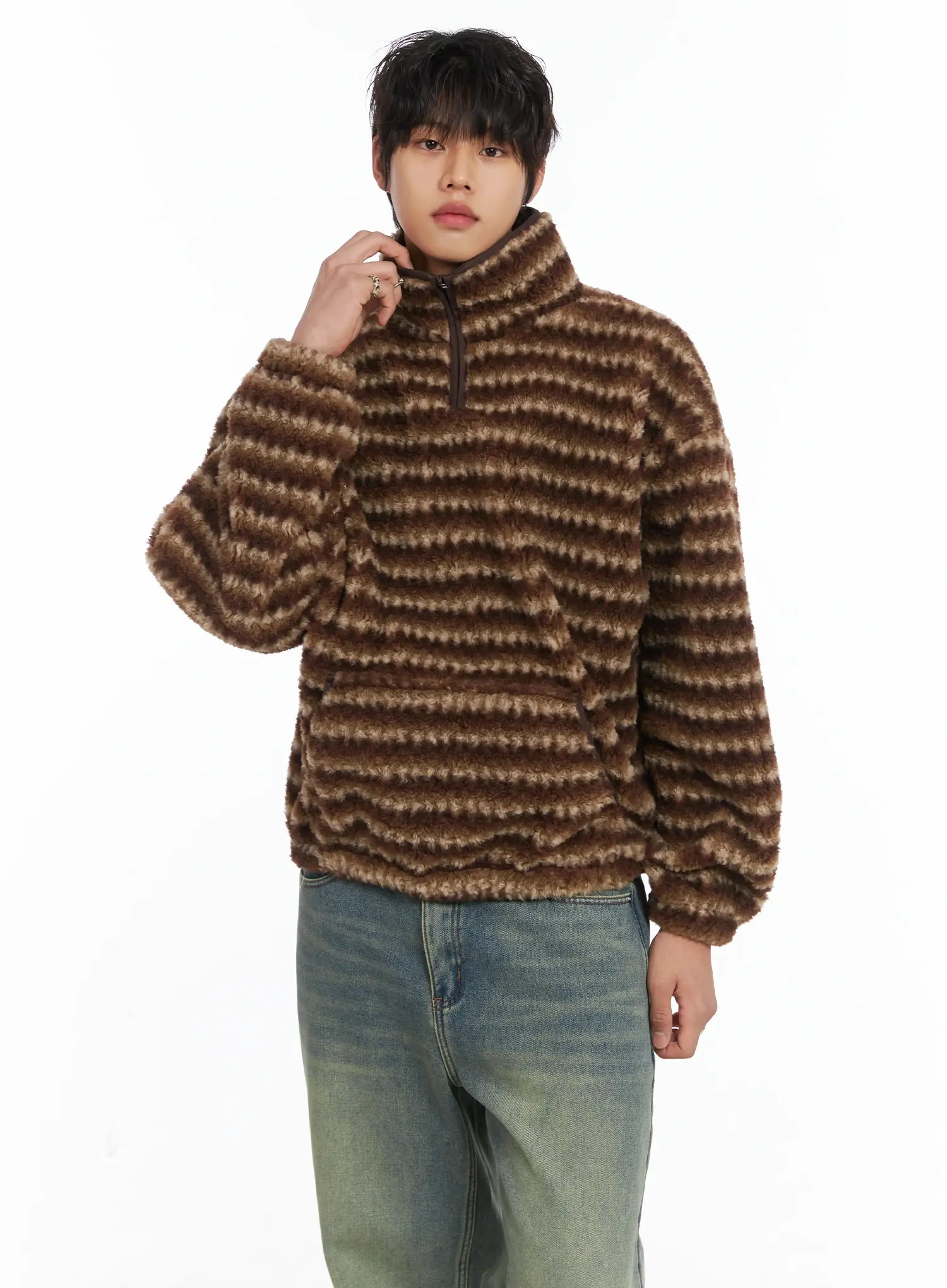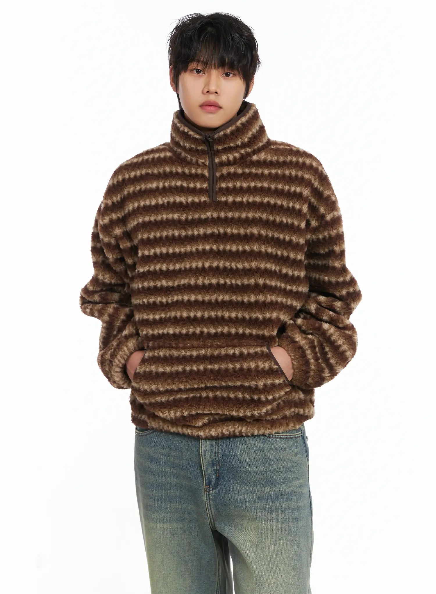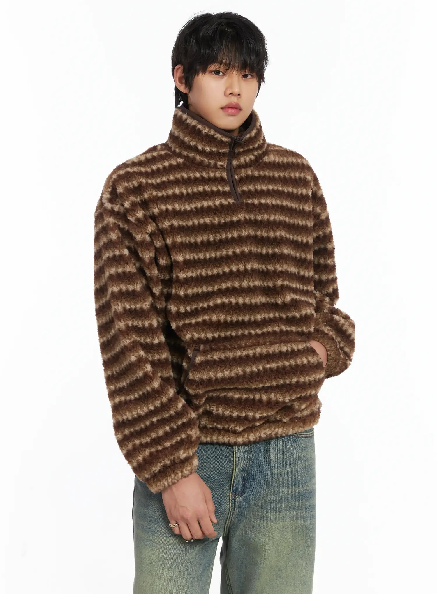 Men's Warm Fleece Striped Quarter Zip-Up IJ512