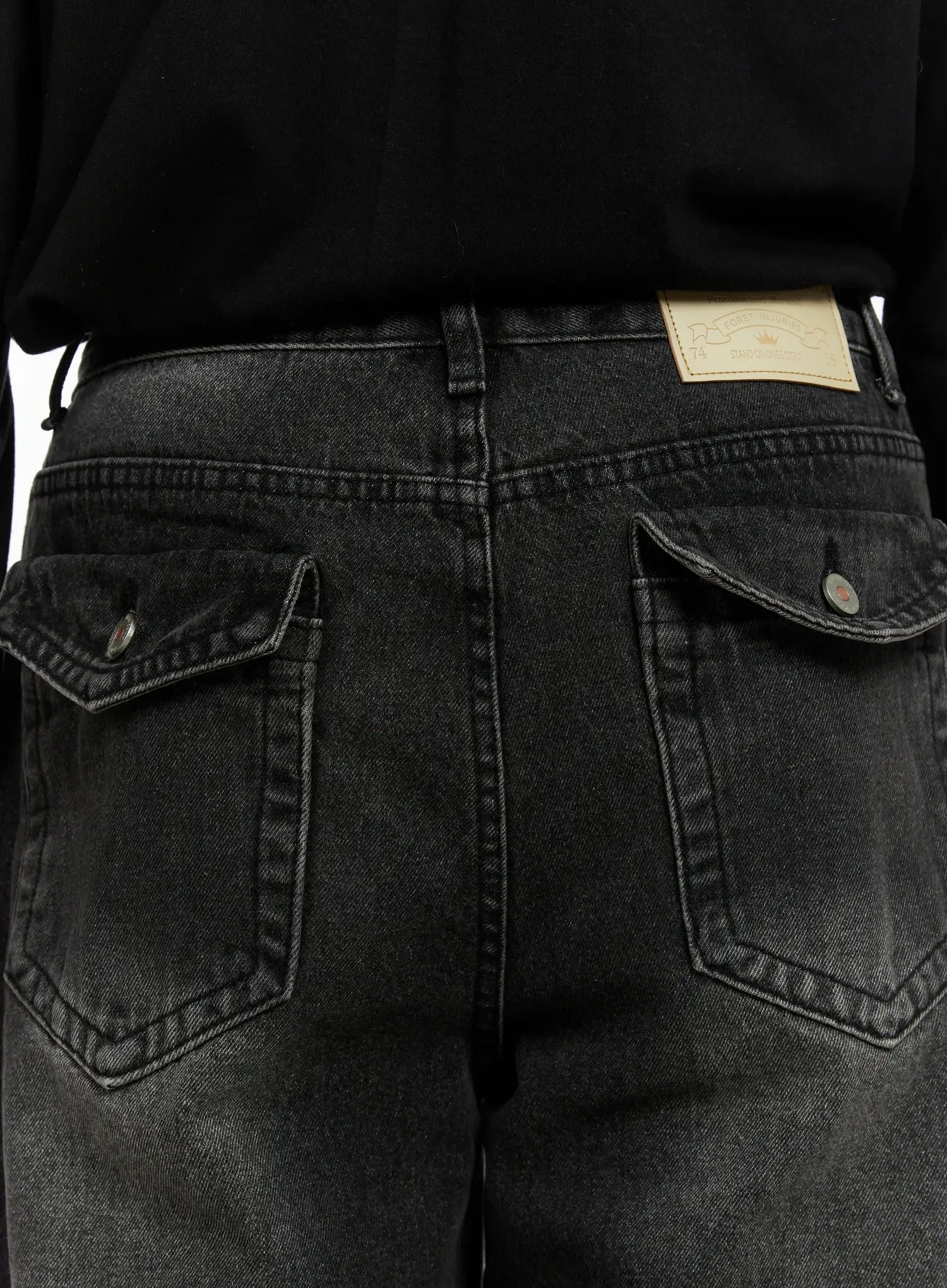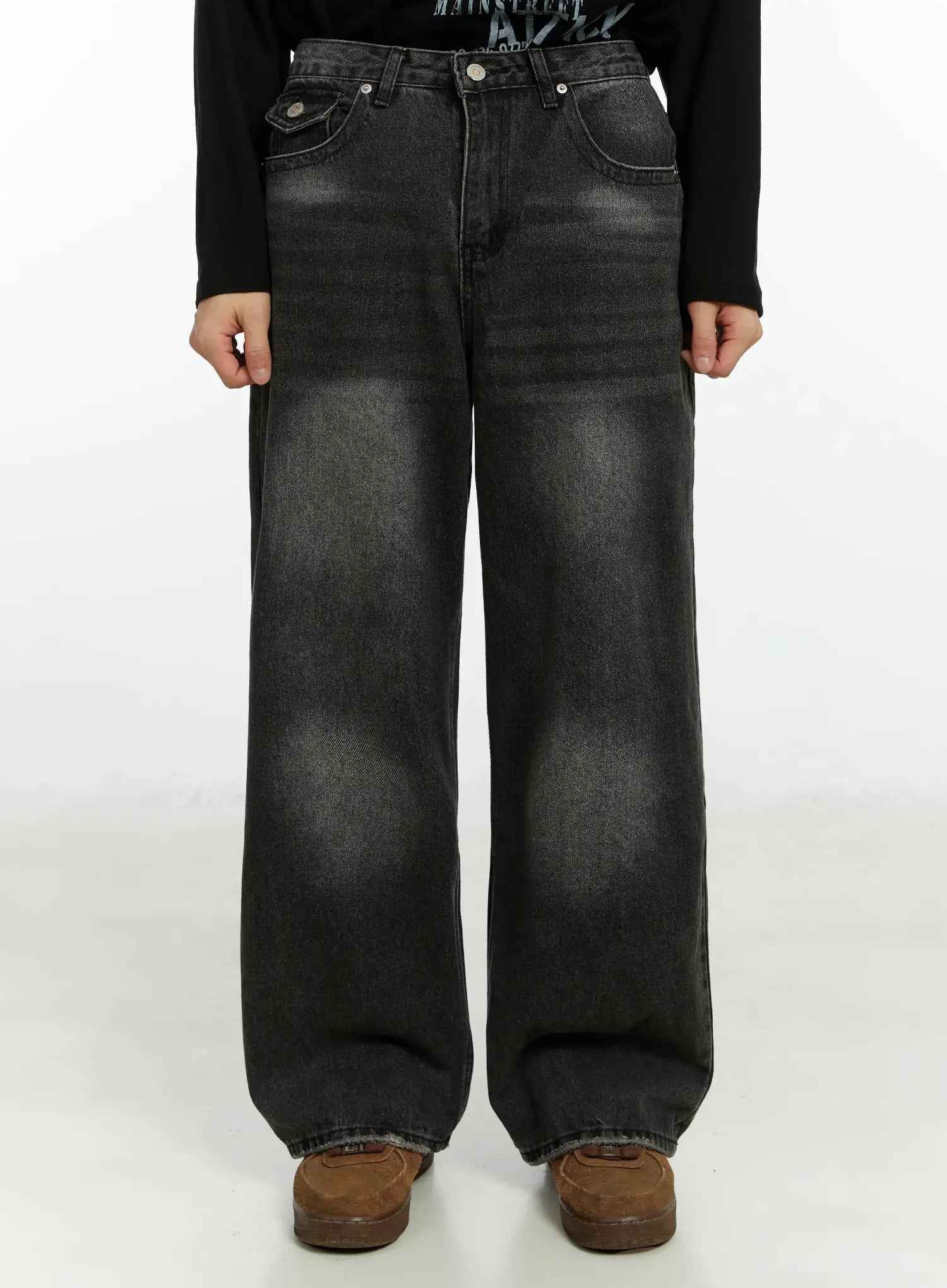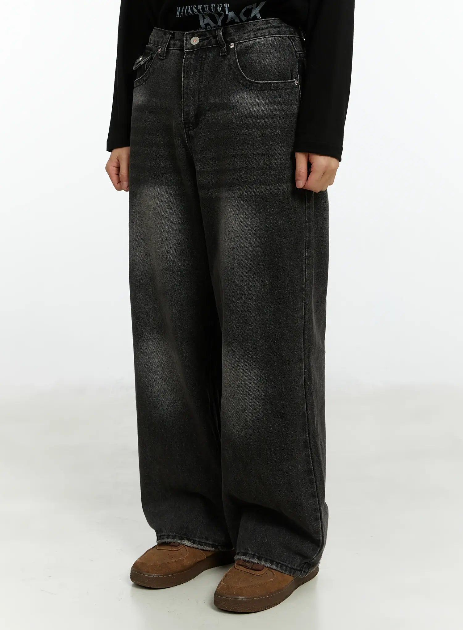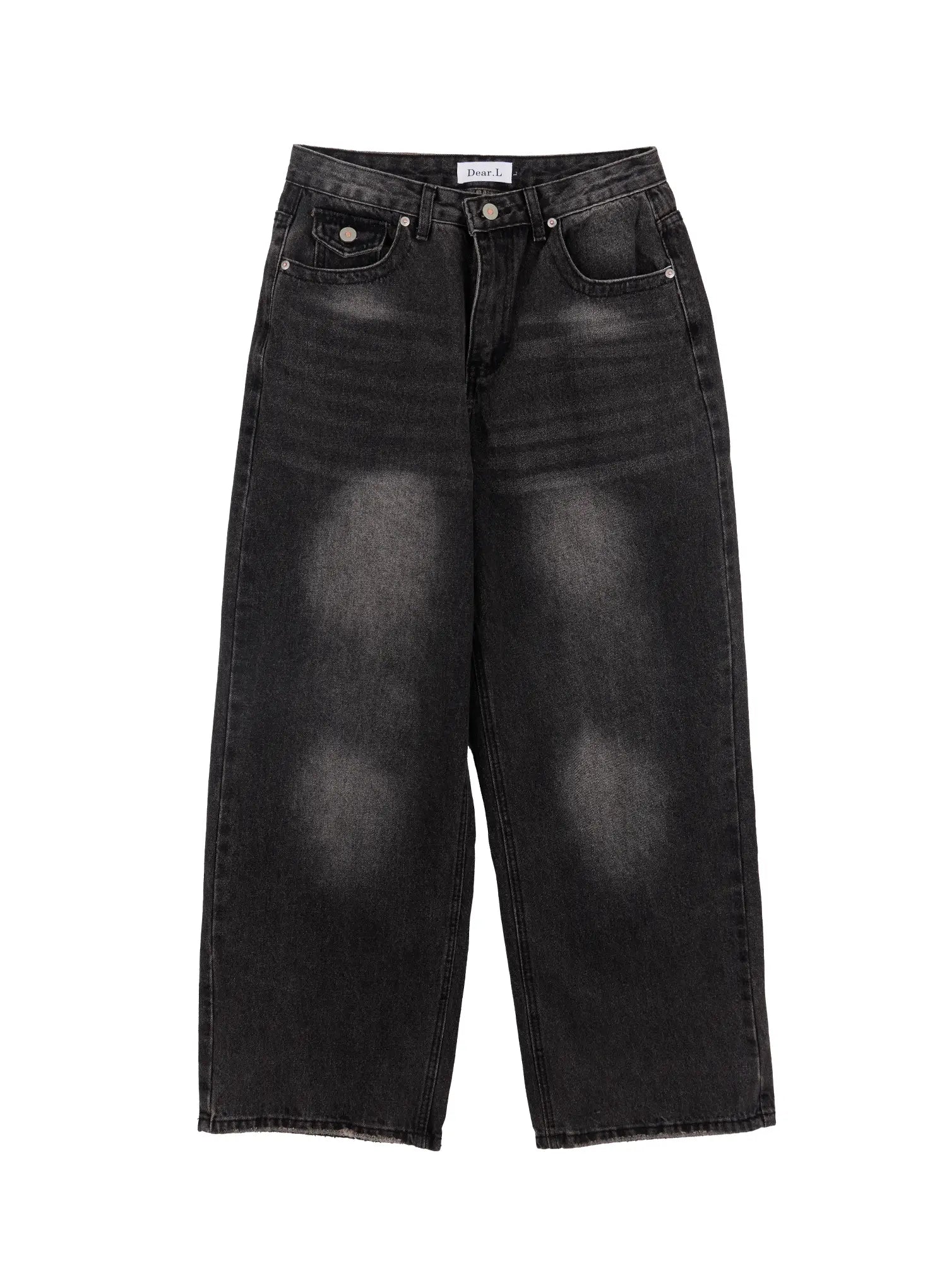 Men's Washed Black Wide Leg Jeans IF511
