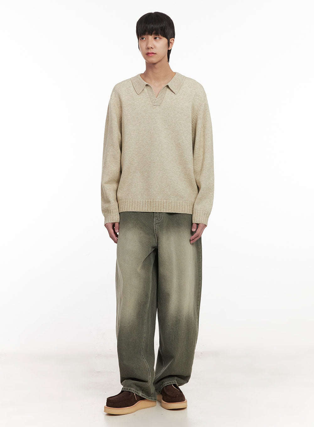 Men's Wide-Fit Washed Jeans (Dark Green) IM519