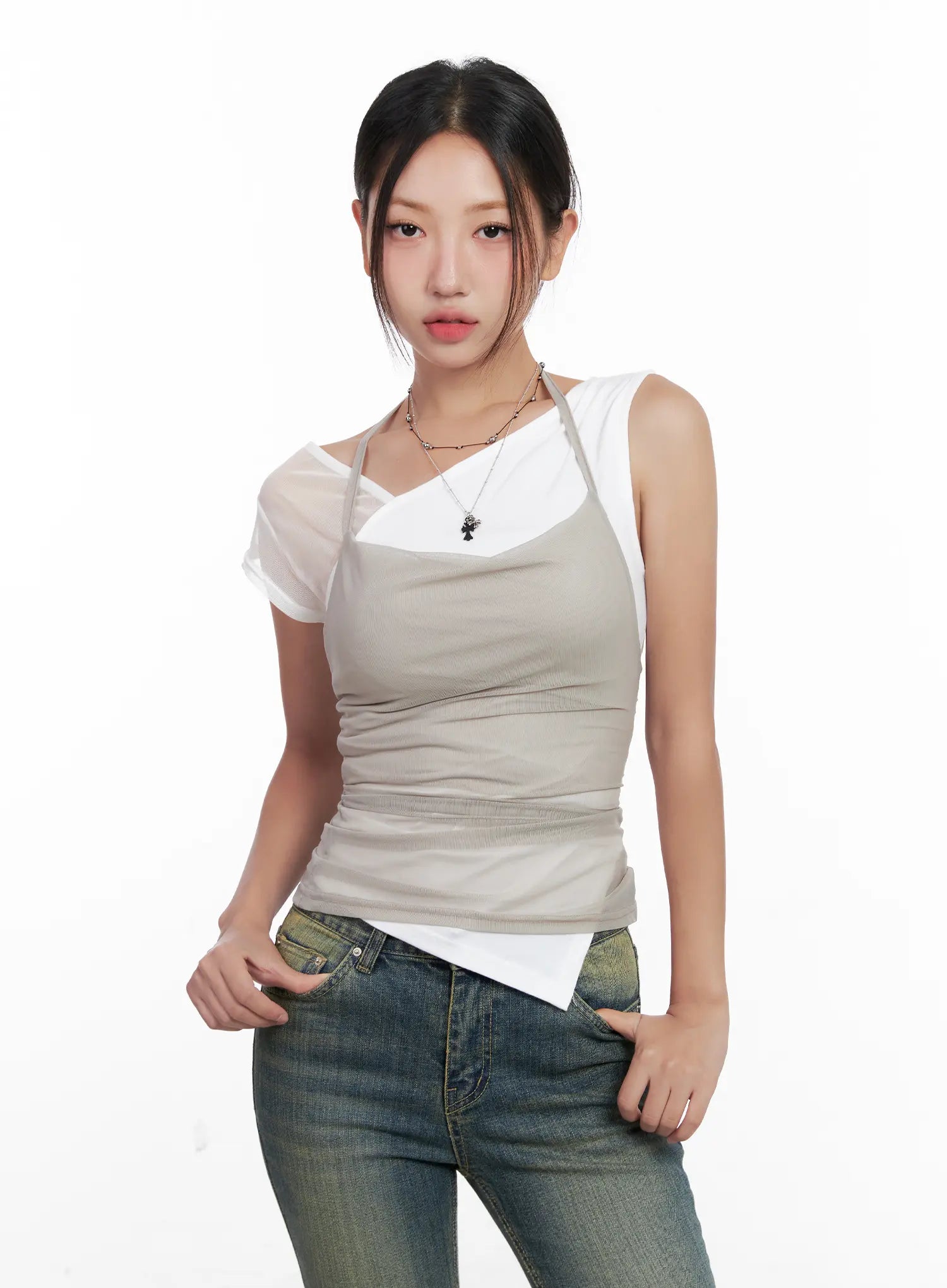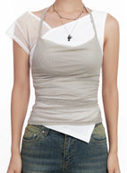 Mesh Draped Halter Tank CL518