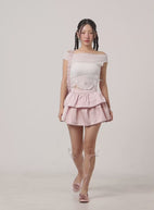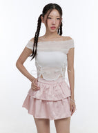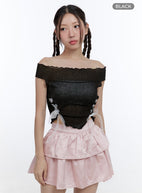 Mesh Ribbon Off-Shoulder Crop Top CG414