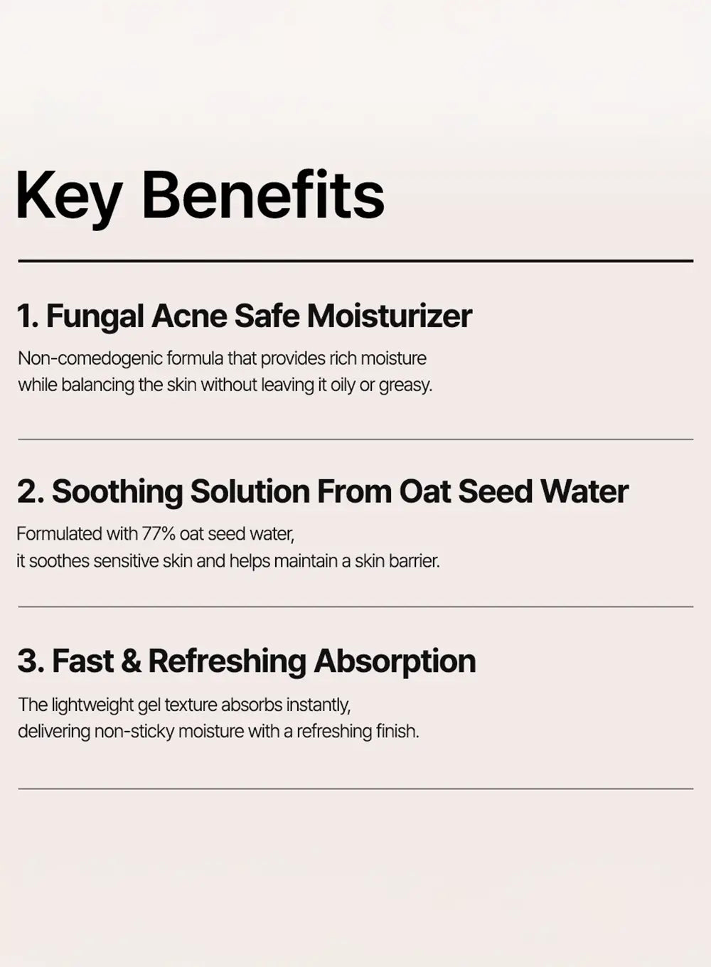 Gel cream enriched with Oat Seed Water to instantly calm dry and sensitive skin.