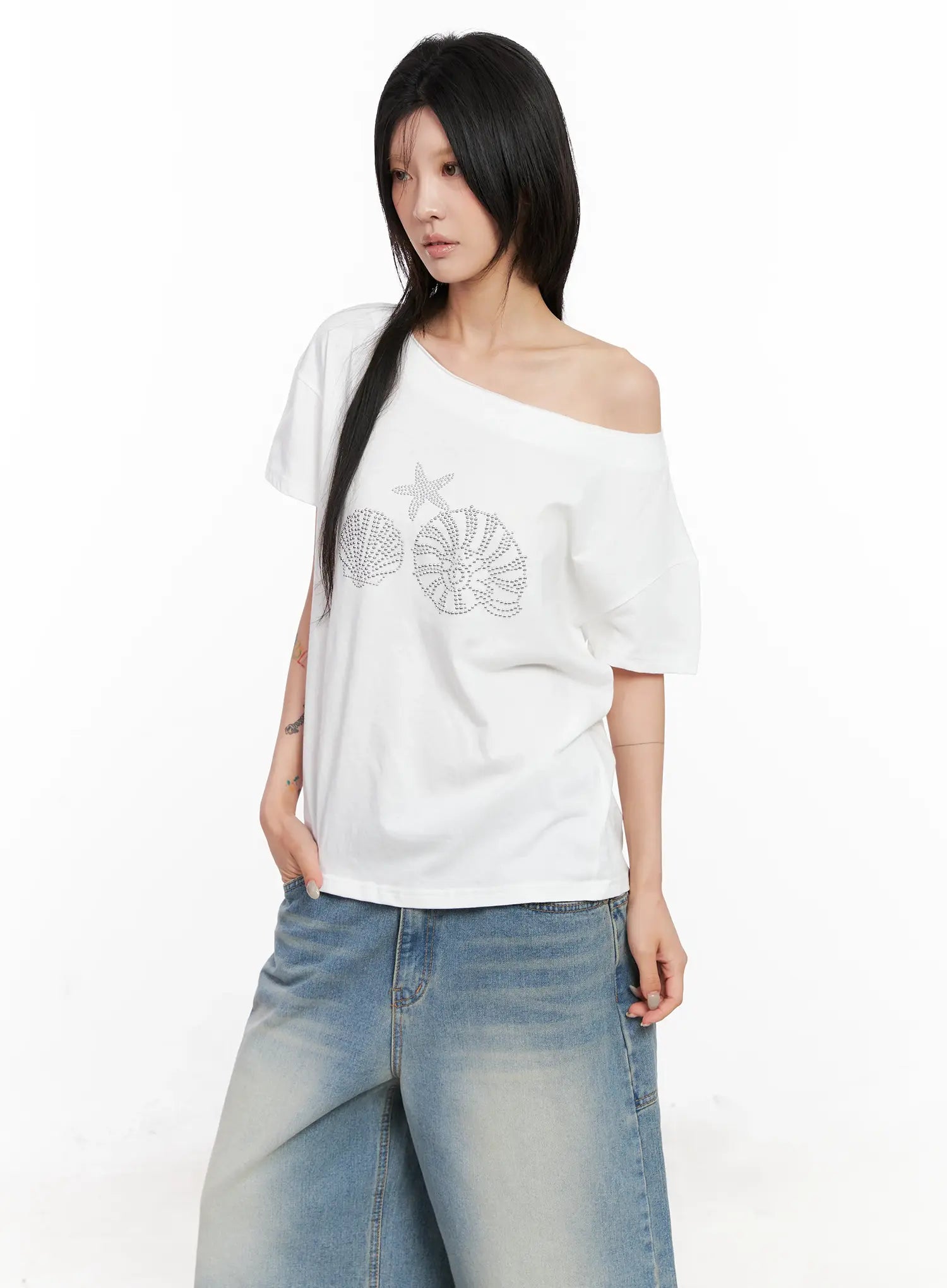 Off-Shoulder Seashell Tee CL525
