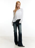 One-Shoulder Long-Sleeve Crop Top CY501