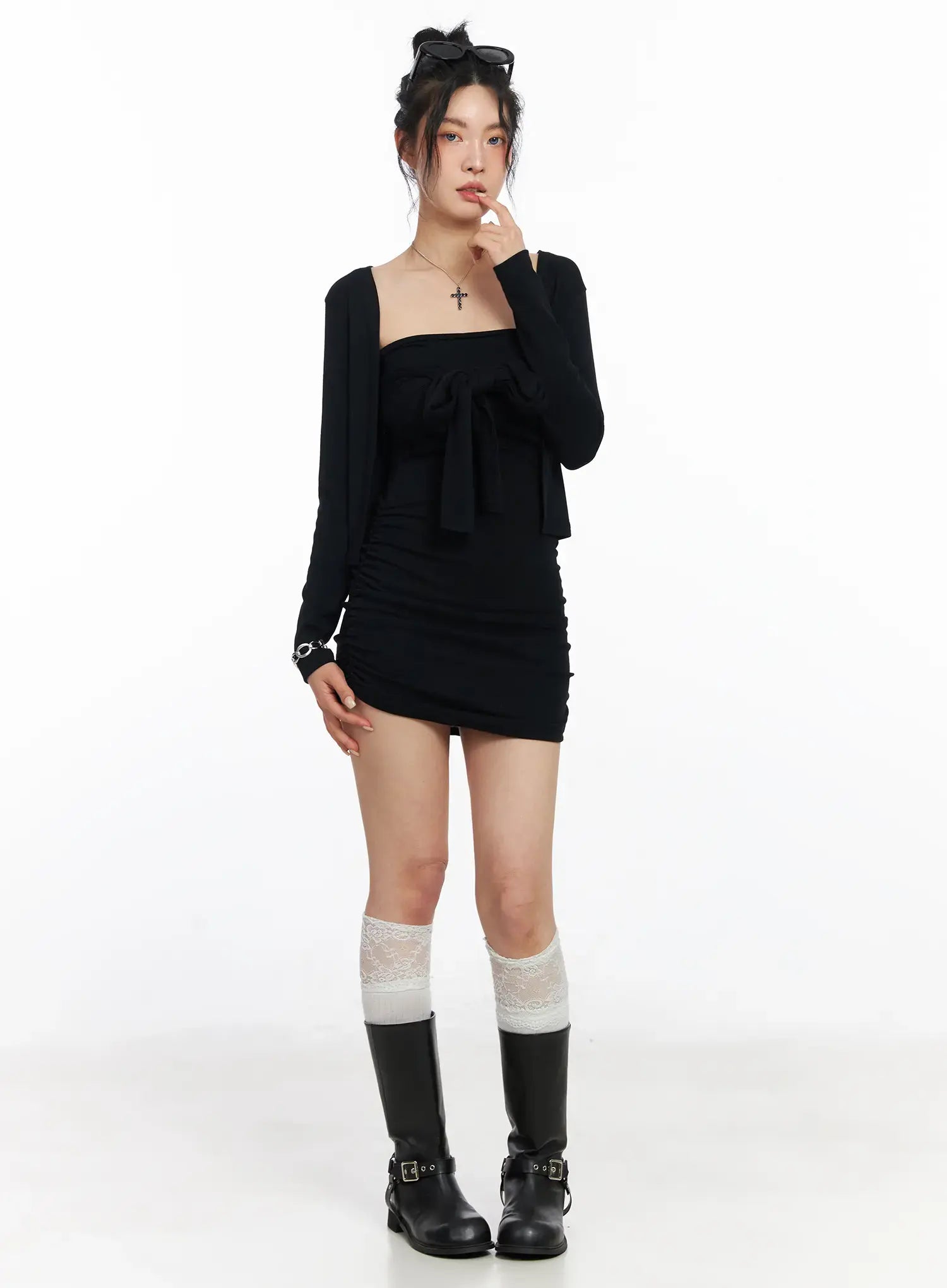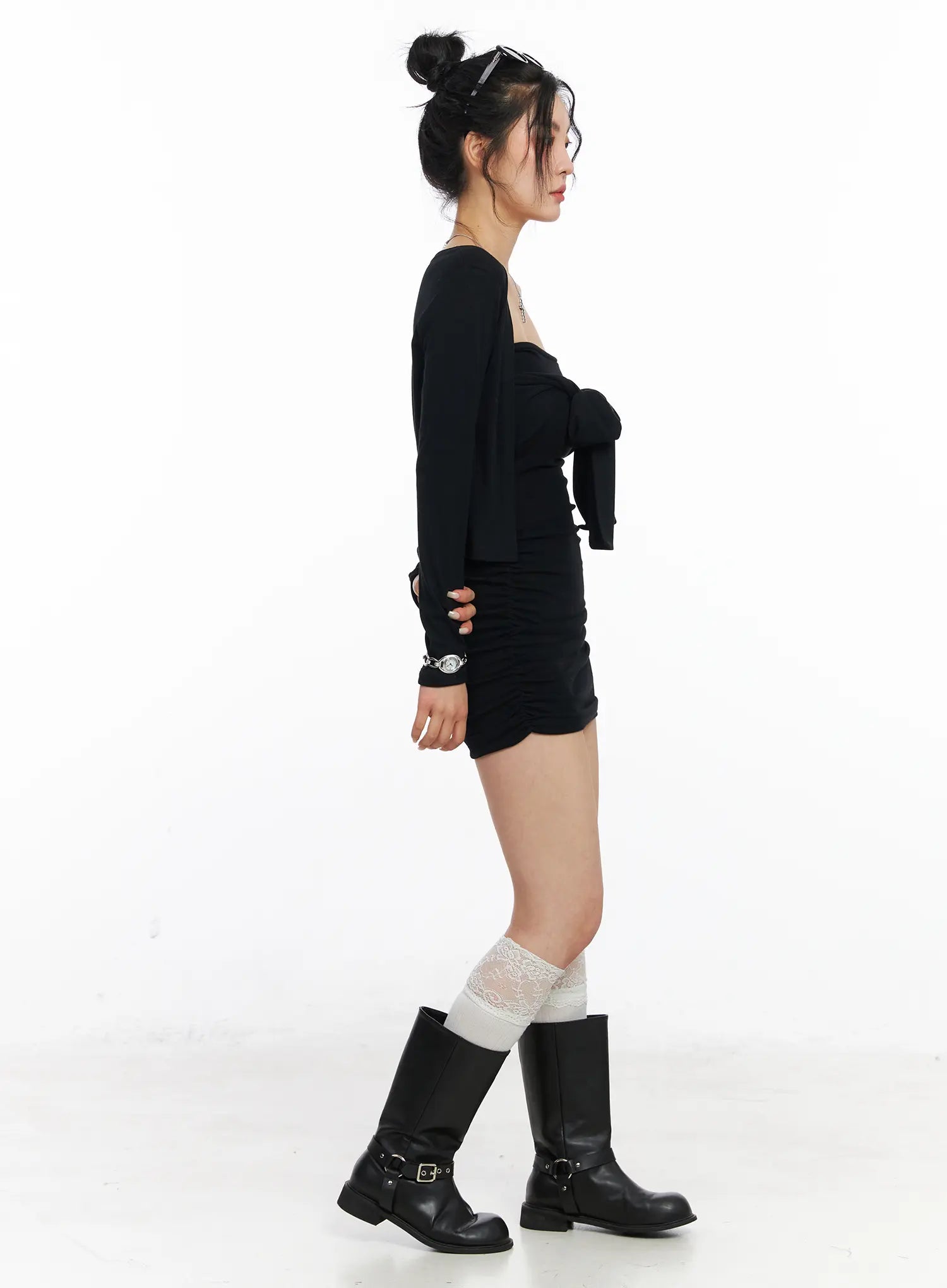 Model is wearing size S/M and the color Black.