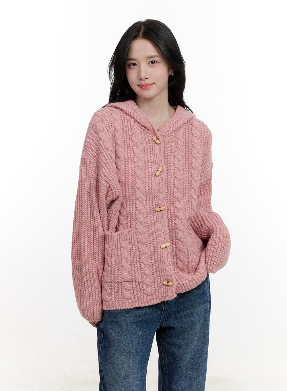 Oversized Cable Knit Hooded Cardigan CF527