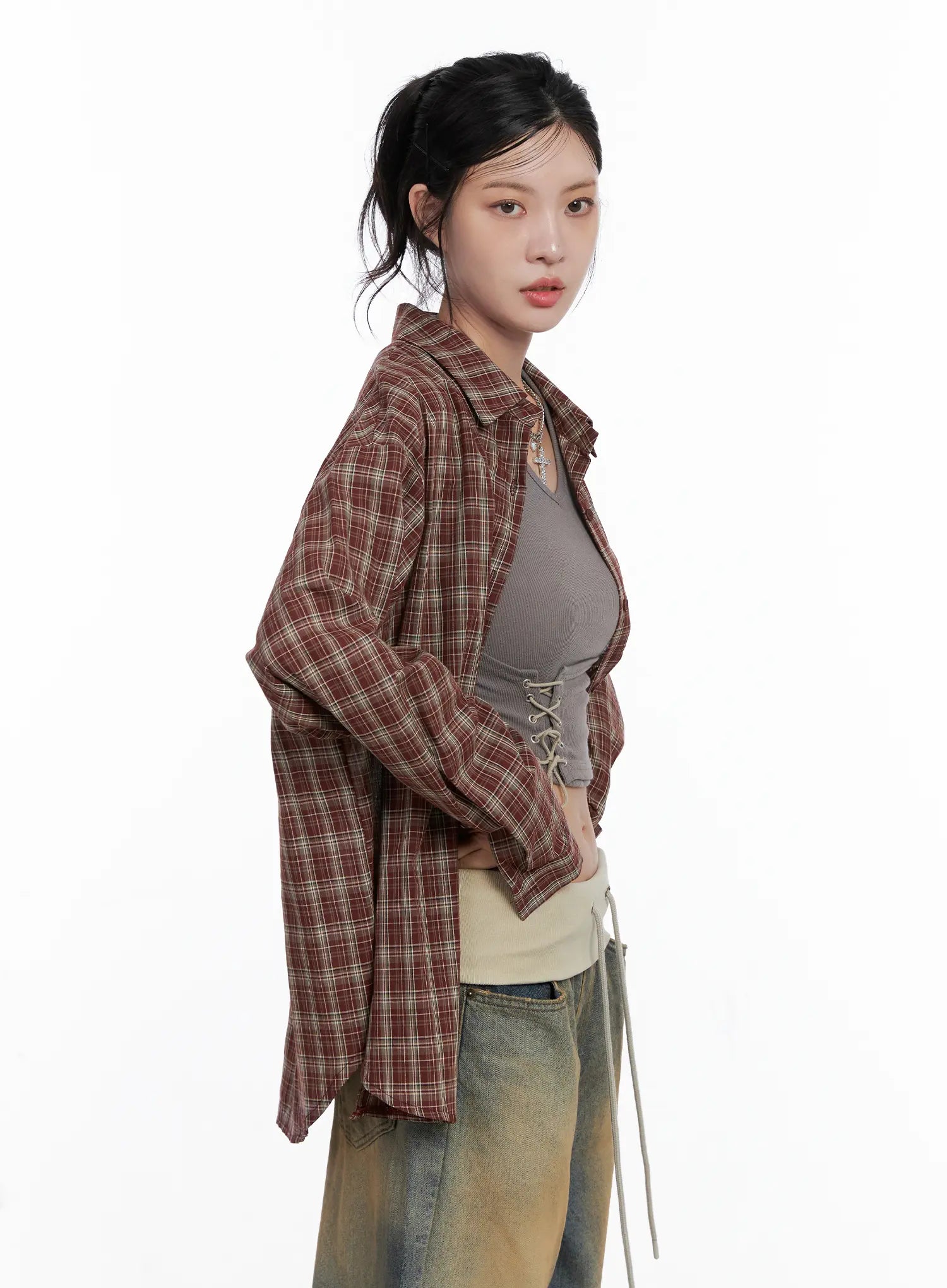 Oversized Plaid Button Up Shirt CS512
