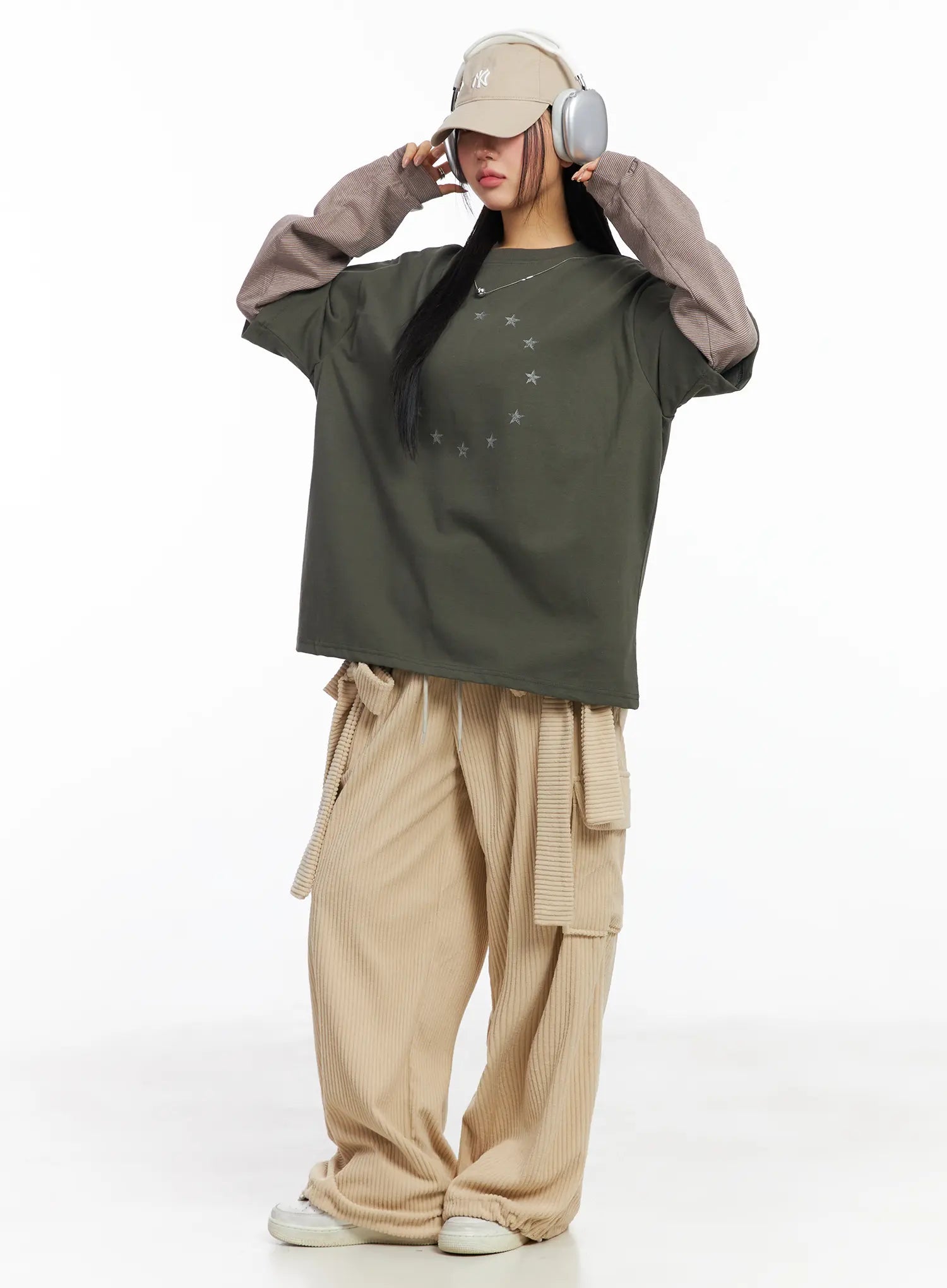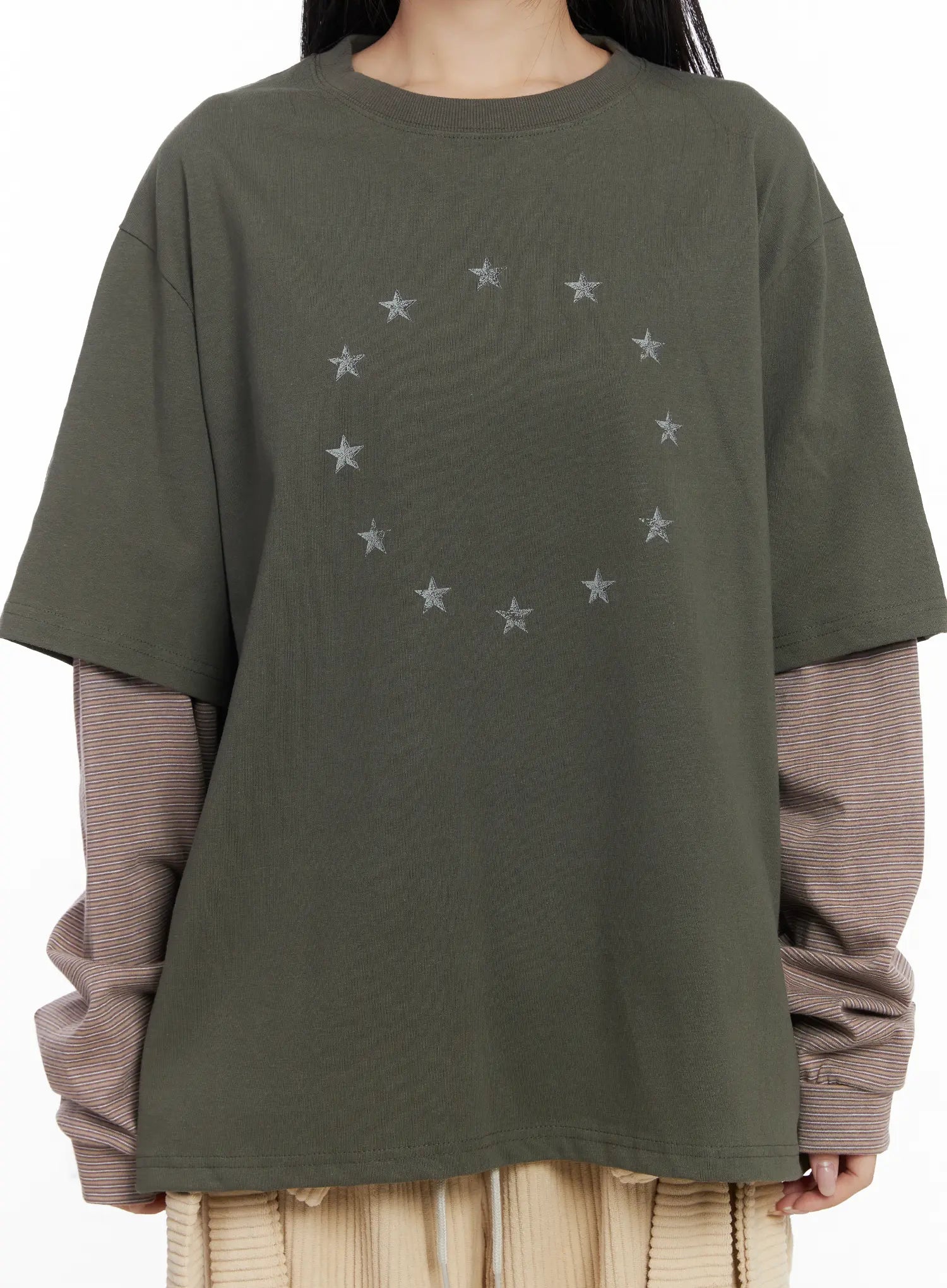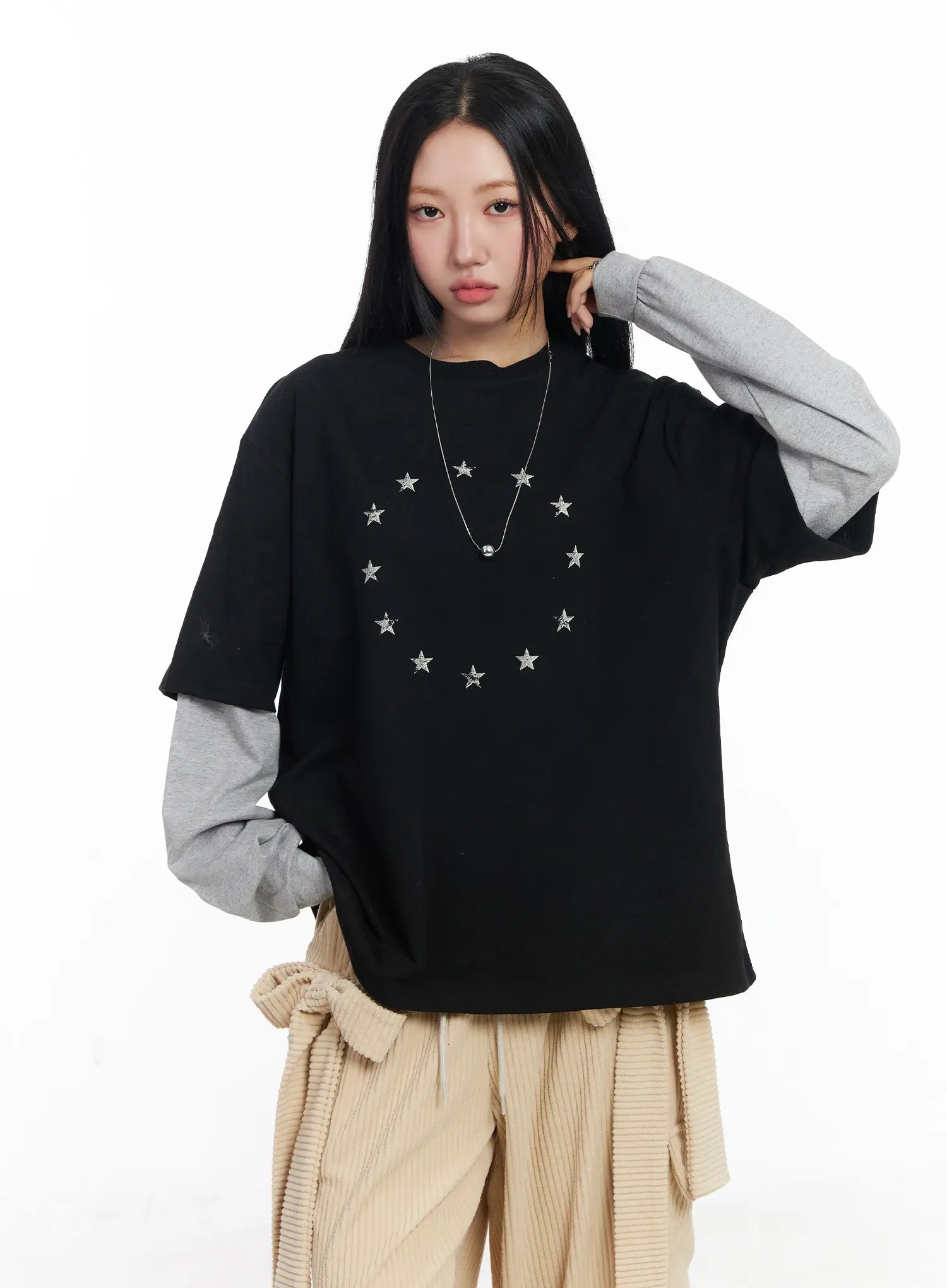 Oversized Star Print Layered Long Sleeve Tee CJ514