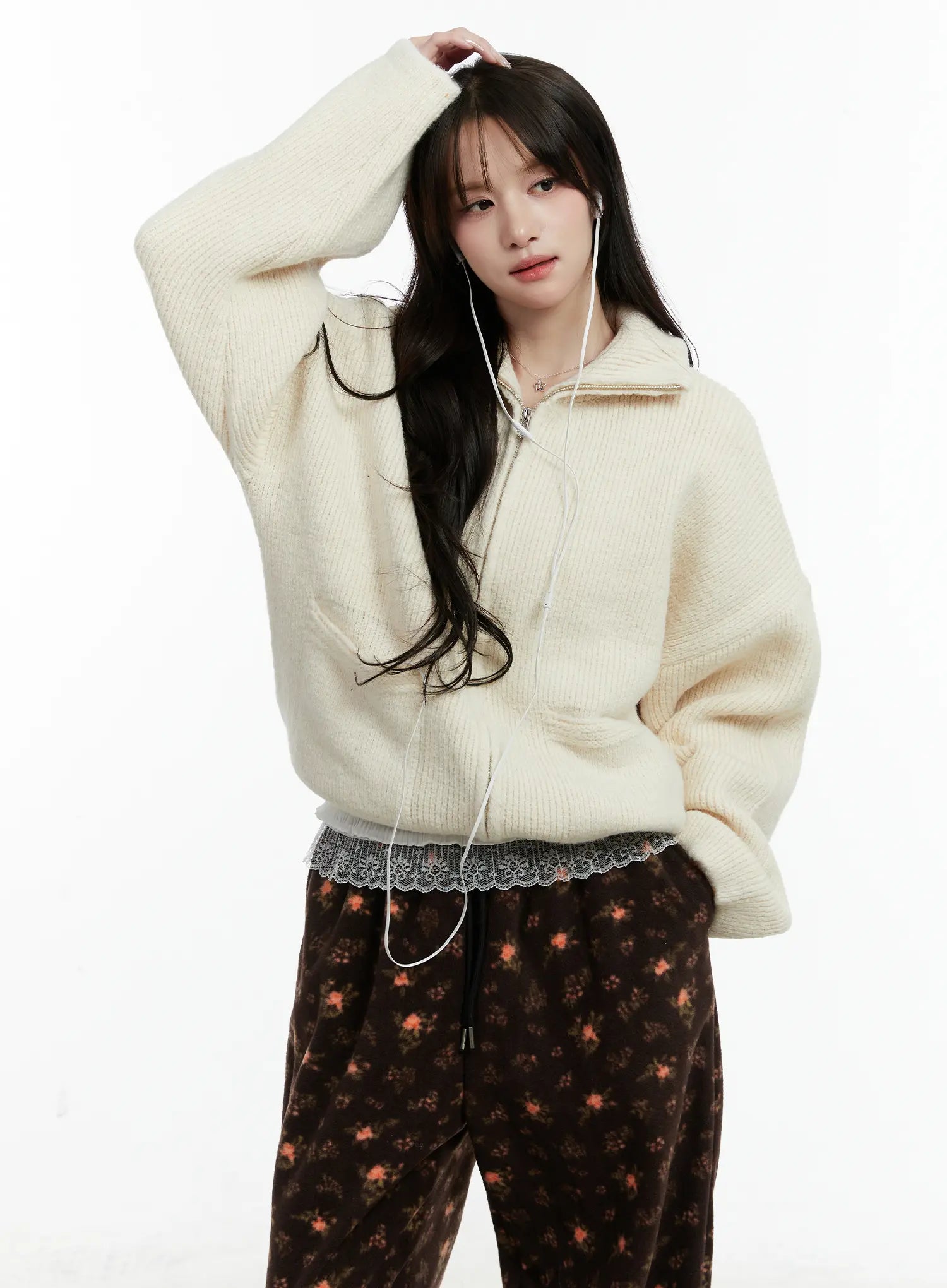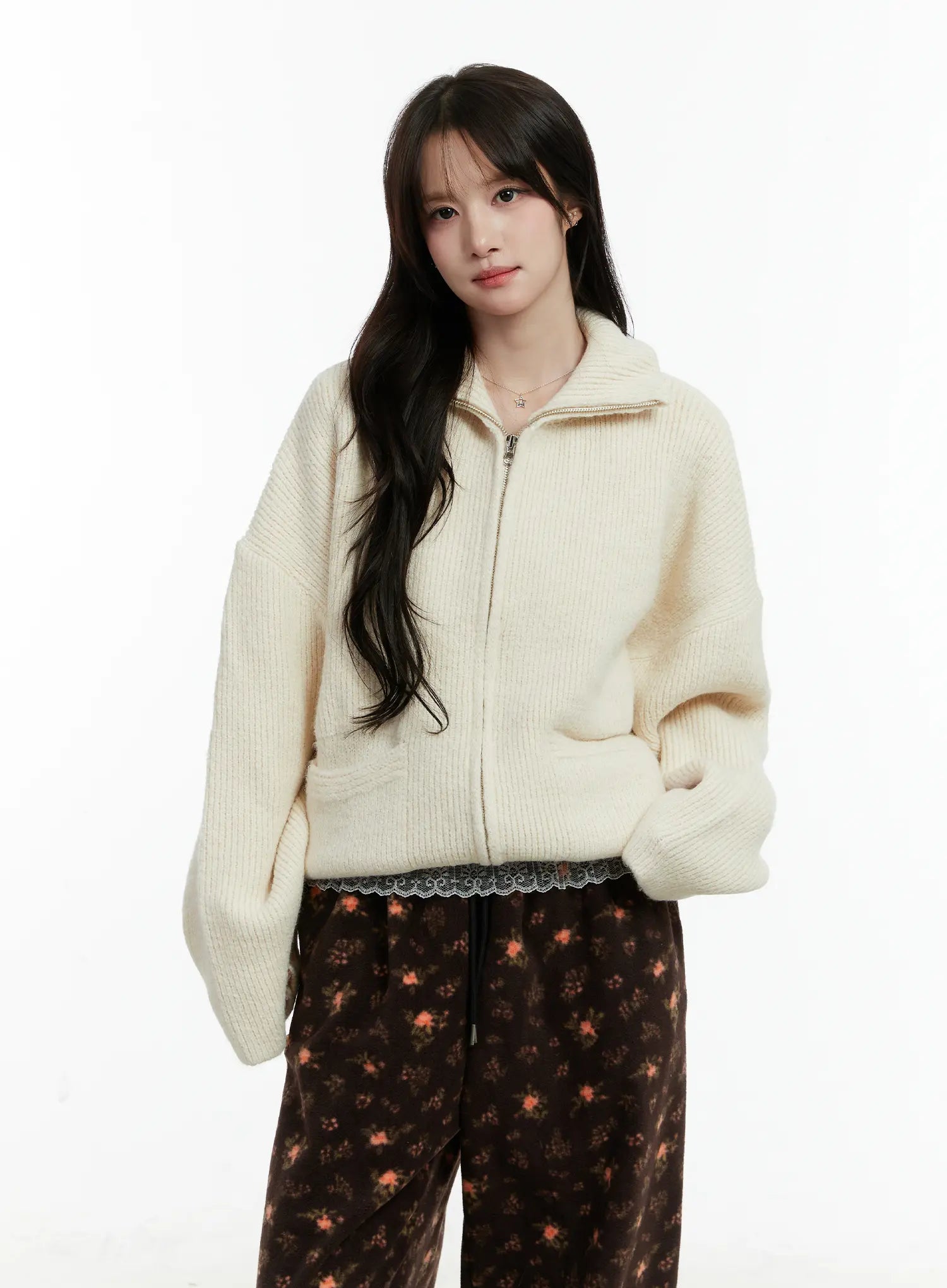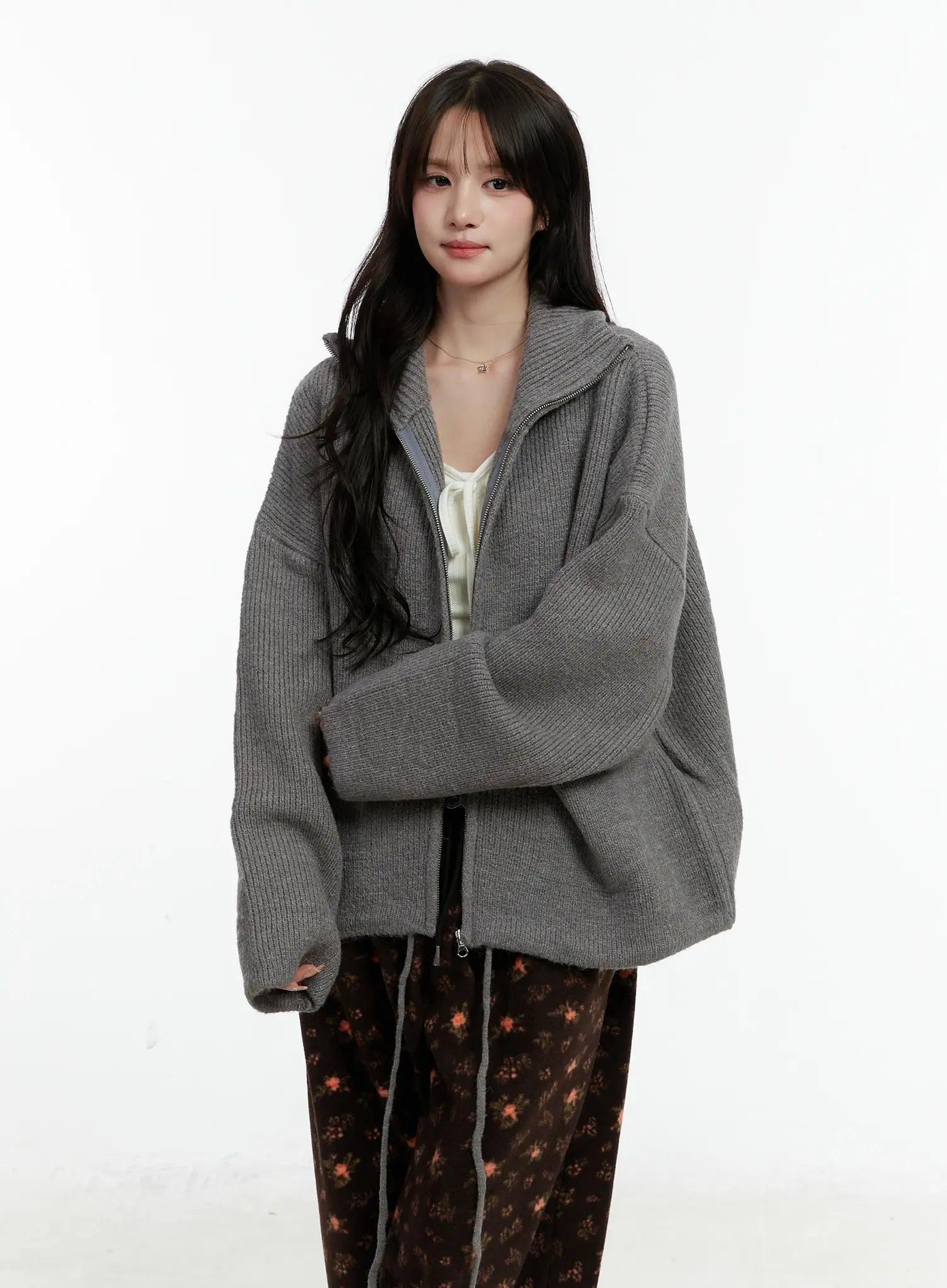 Oversized Wool-Blend Knit Zip-Up CD514